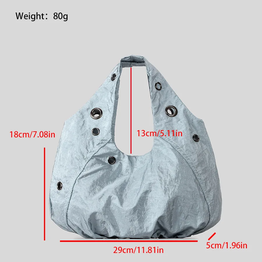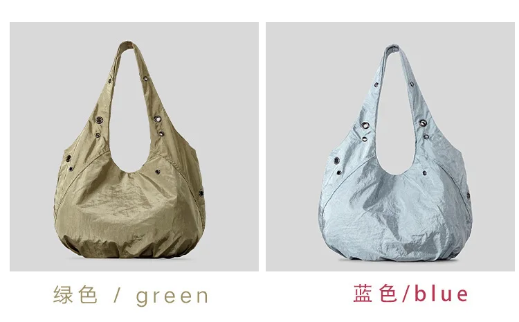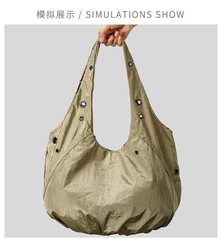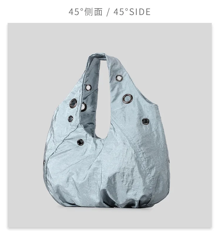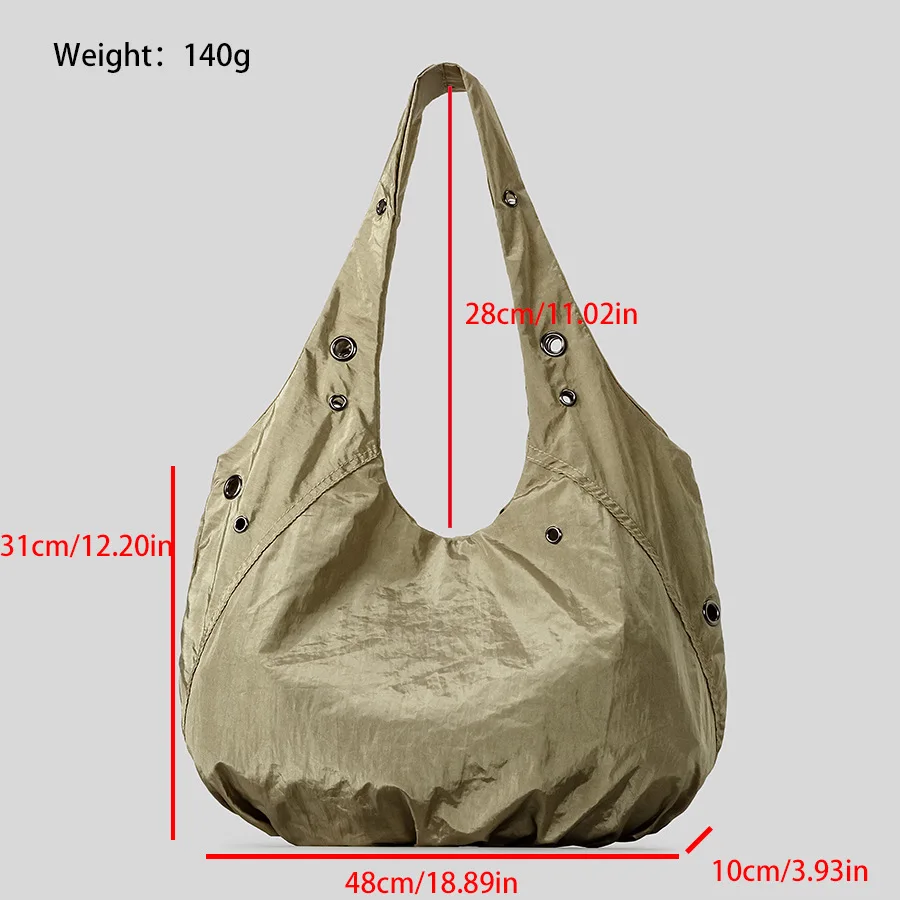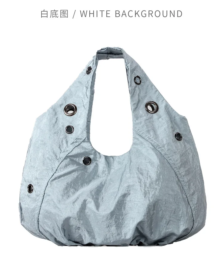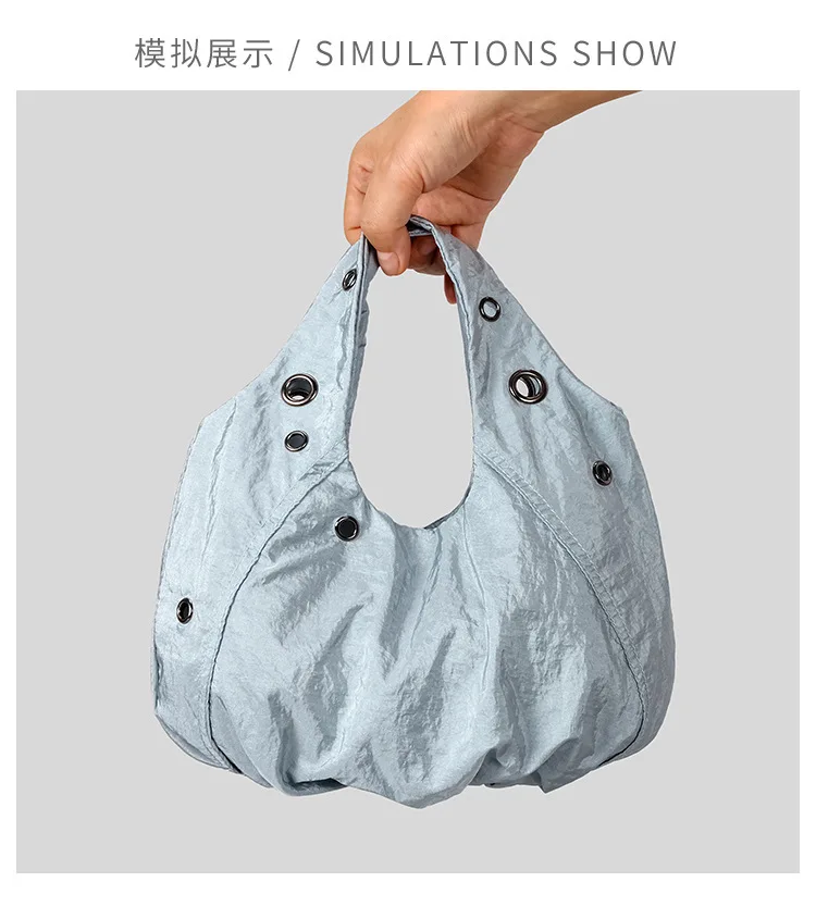 Borse a tracolla da donna in nylon con rivetti casual Borse hobo leggere increspate di design Borse shopper di grande capacità 2025