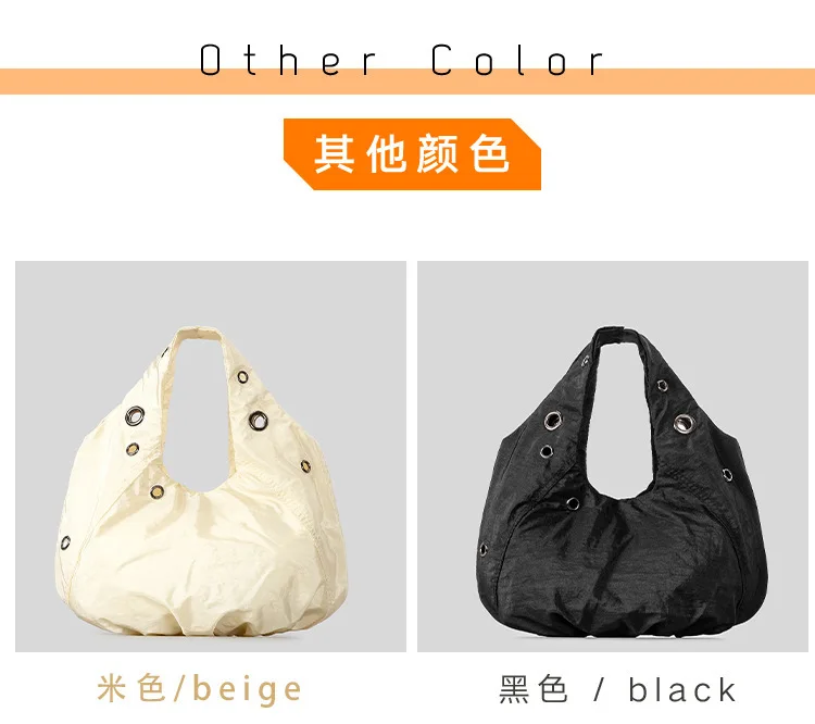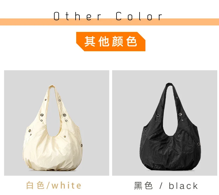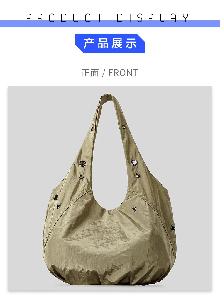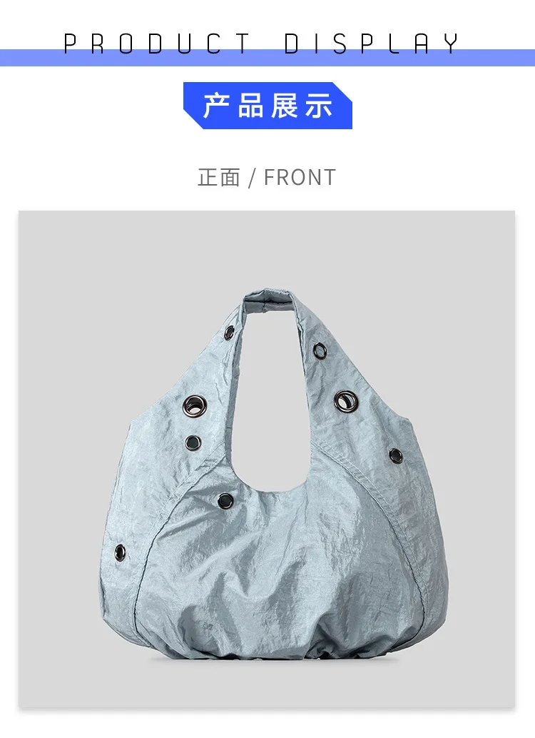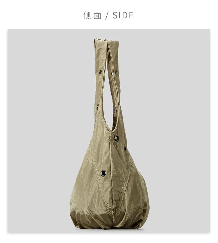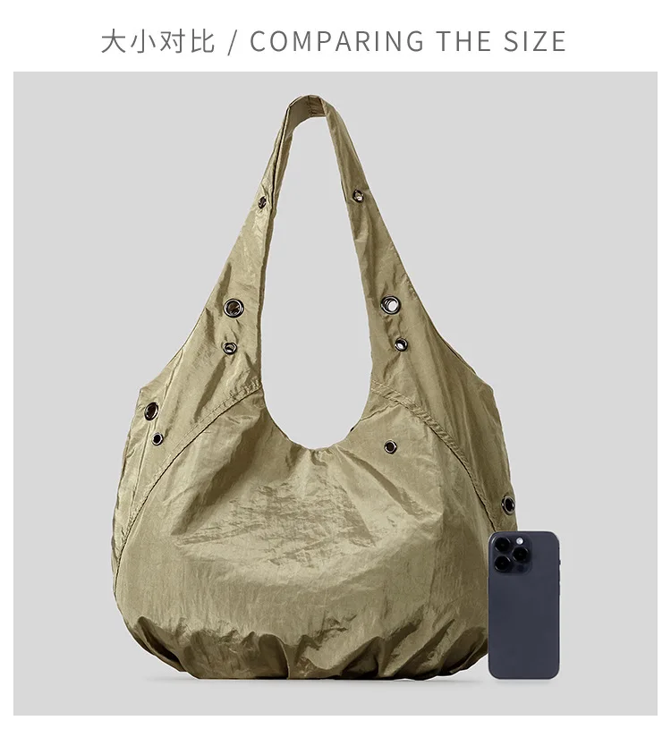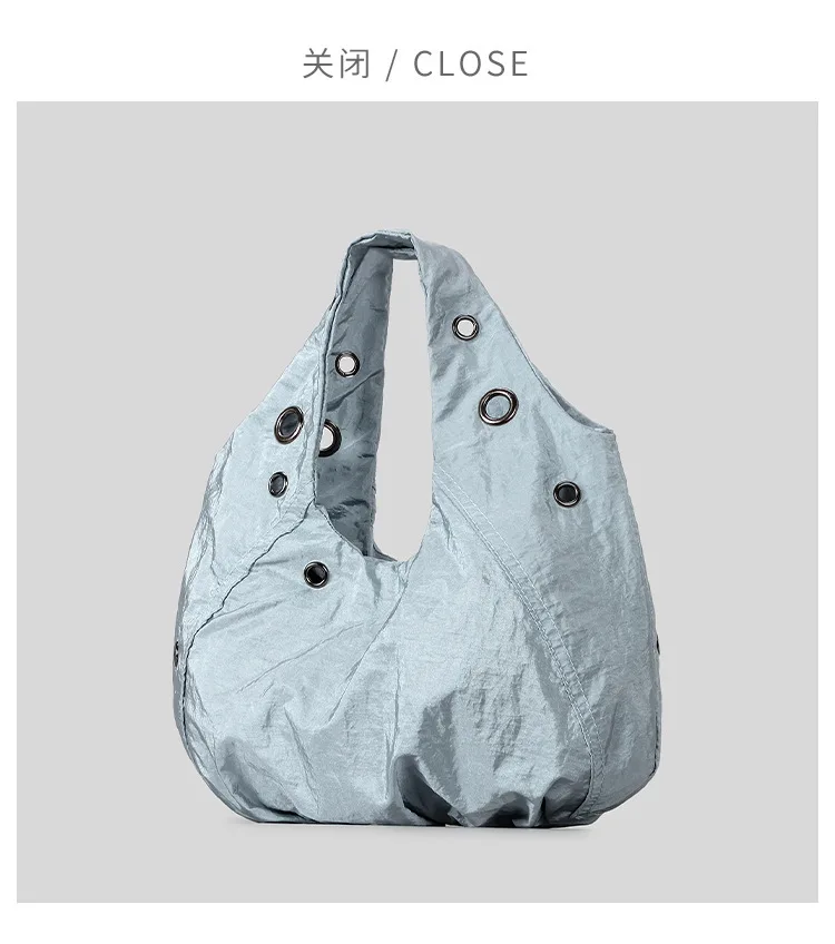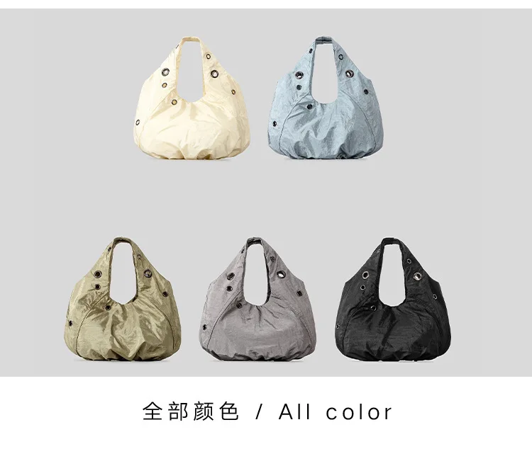 Borse a tracolla da donna in nylon con rivetti casual Borse hobo leggere increspate di design Borse shopper di grande capacità 2025