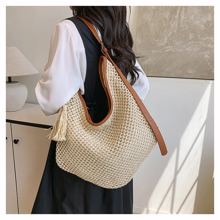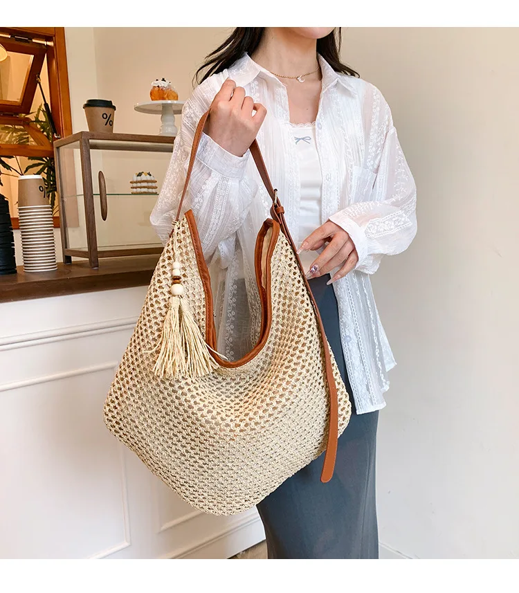Borsa a tracolla da spiaggia casual 2025 Nuovo arrivo estivo Popolare erba intrecciata Borsa da donna di design alla moda Borse da viaggio in paglia al mare 1Borsa a tracolla da spiaggia casual 2025 Nuovo arrivo estivo Popolare erba intrecciata Borsa da donna di design alla moda Borse da viaggio in paglia al mare