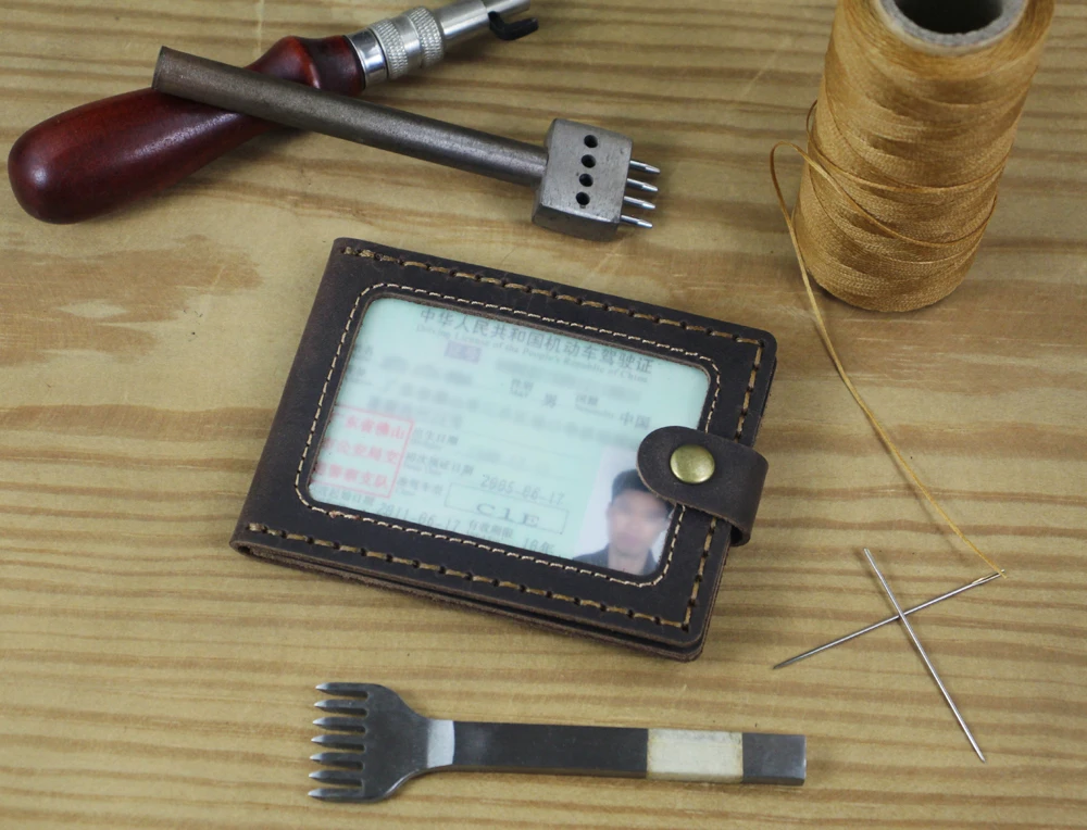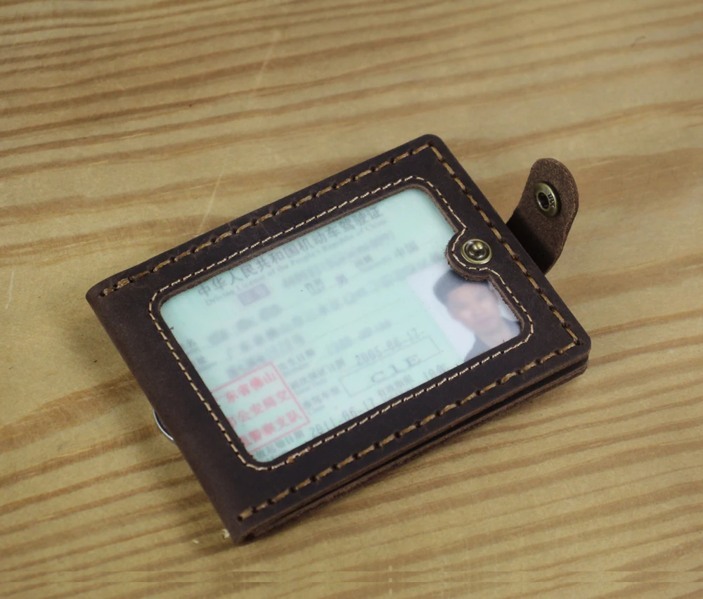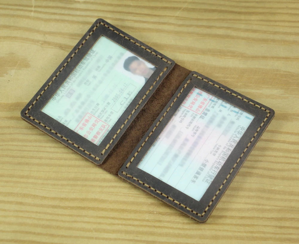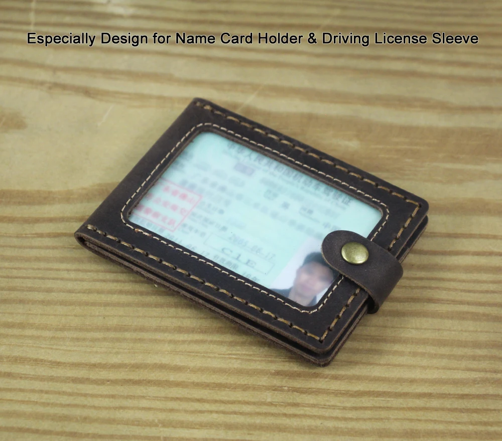 Porta carte di credito in vera pelle Crazy Horse vintage fatto a mano di alta classe Custodia per patente di guida con nome e carta d’identità