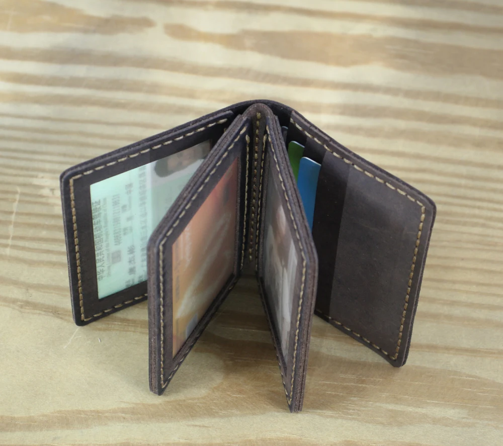 Porta carte di credito in vera pelle Crazy Horse vintage fatto a mano di lusso Porta carte di identità con custodia per patente di guida