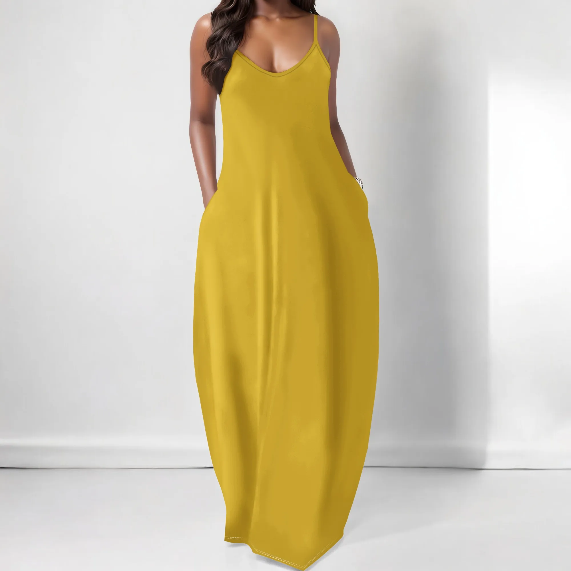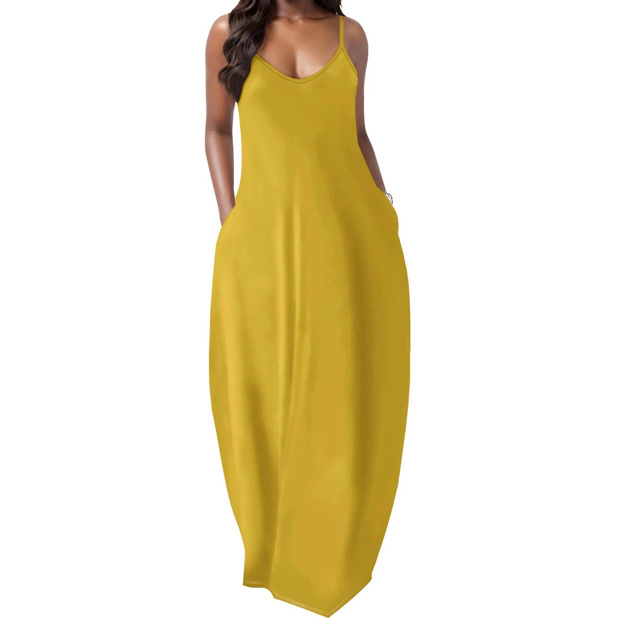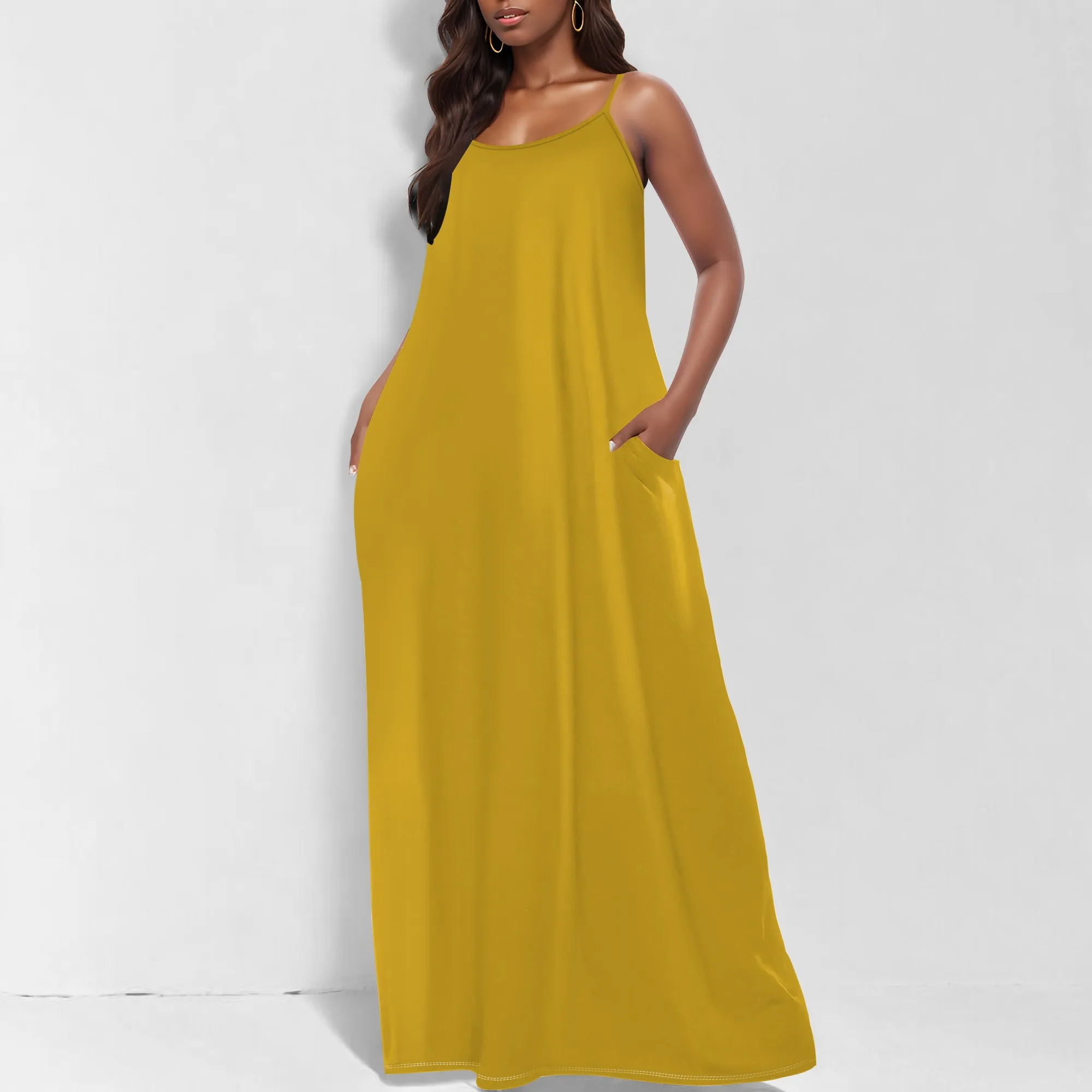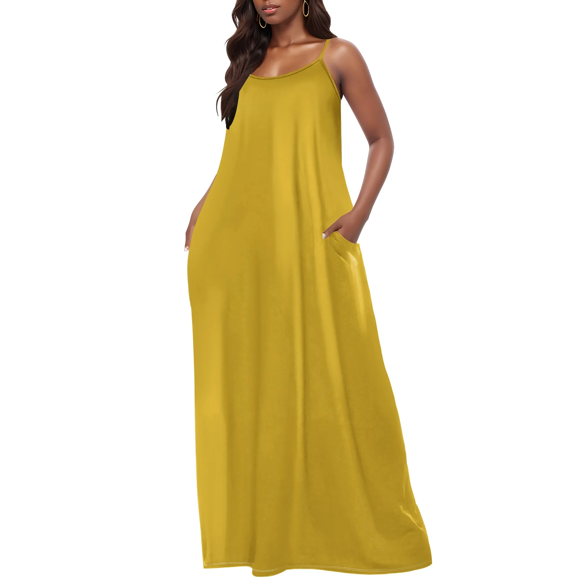 Abiti lunghi da donna Abito estivo con cinturino per spaghetti e tasche