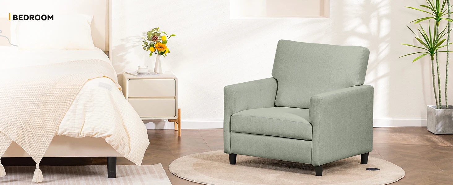 COMHOMA Relax poltrona TV poltrona muslimtv poltrona Lounge poltrona soggiorno divano singolo per camera da letto lettura poltrona laterale ad angolo con morbida schiuma di memoria Lounge Seat fodera in lino