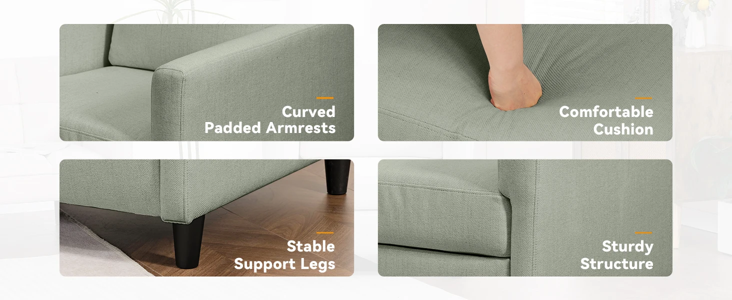 Costruzione stabile: l’interno della poltrona è supportato da materiale in legno massello e 4 gambe stabili nella parte inferiore. La struttura è stabile e non si deforma facilmente e può supportare un peso di 150 kg.
