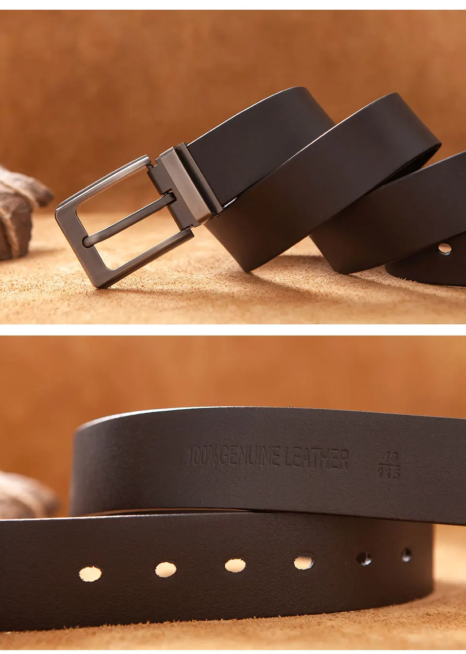 Titolo: Cinture in vera pelle di vacchetta per uomo Cintura da uomo con fibbia ad ardiglione Jeans Cintura da uomo nera marrone per pendolari Cintura da lavoro Ceinture Homme