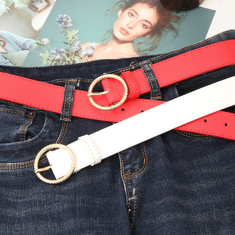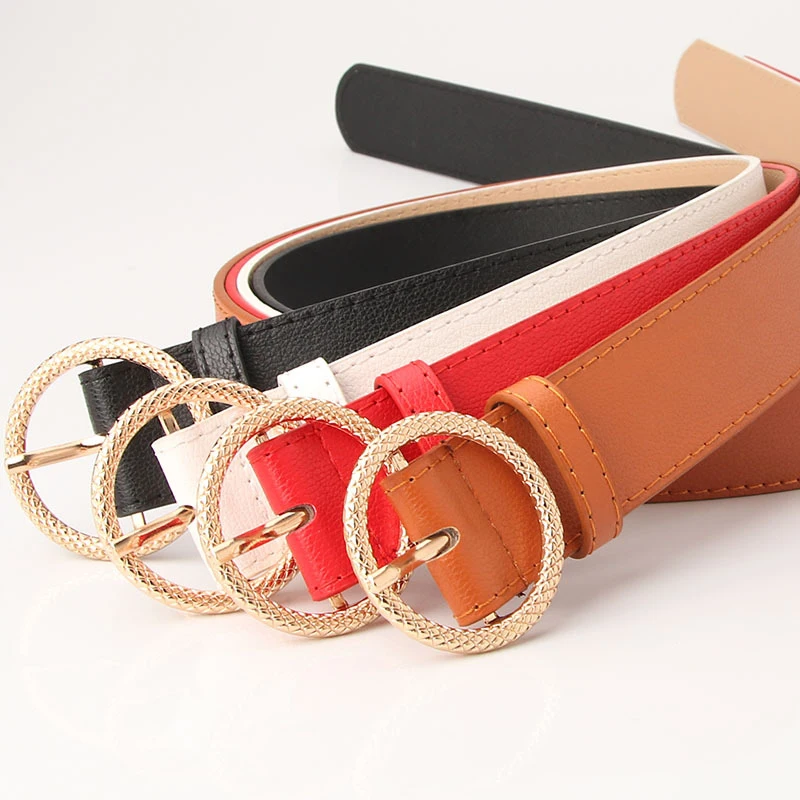 Moda nuova cintura femminile lega fibbia rotonda in rilievo fibbia ad ardiglione cintura da donna in similpelle tendenza cintura corsetto casual cintura in vita