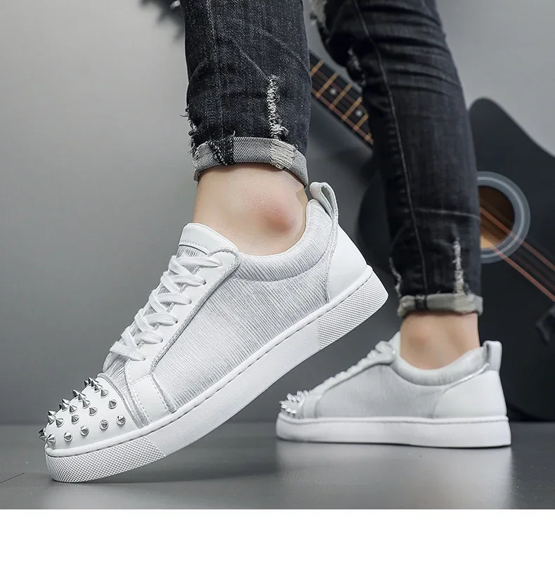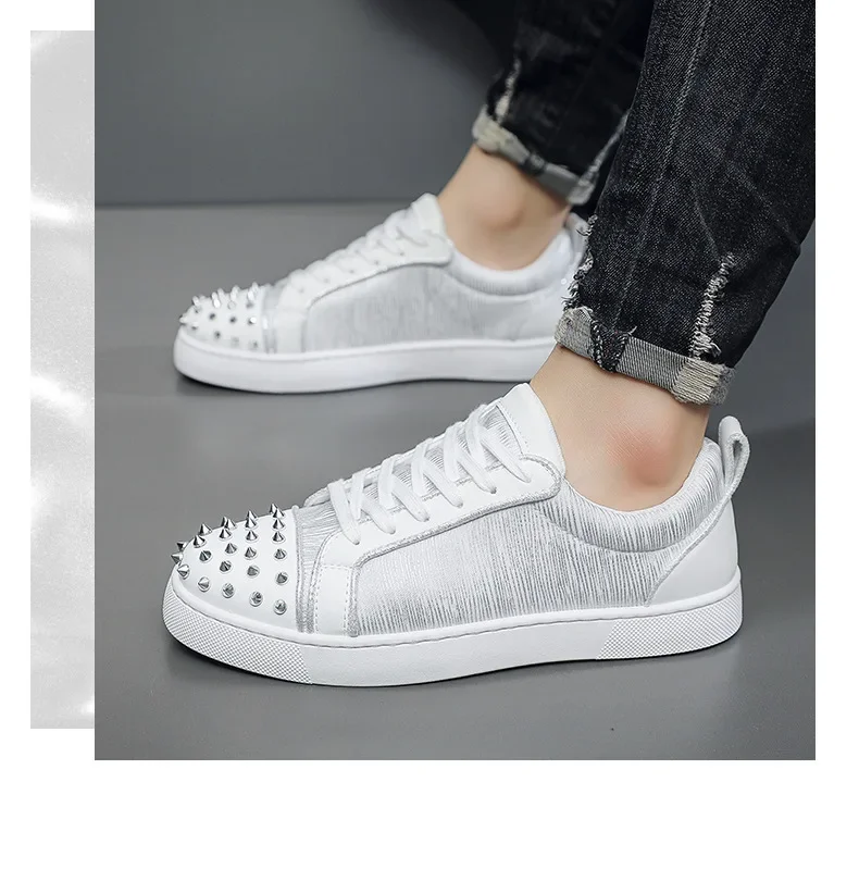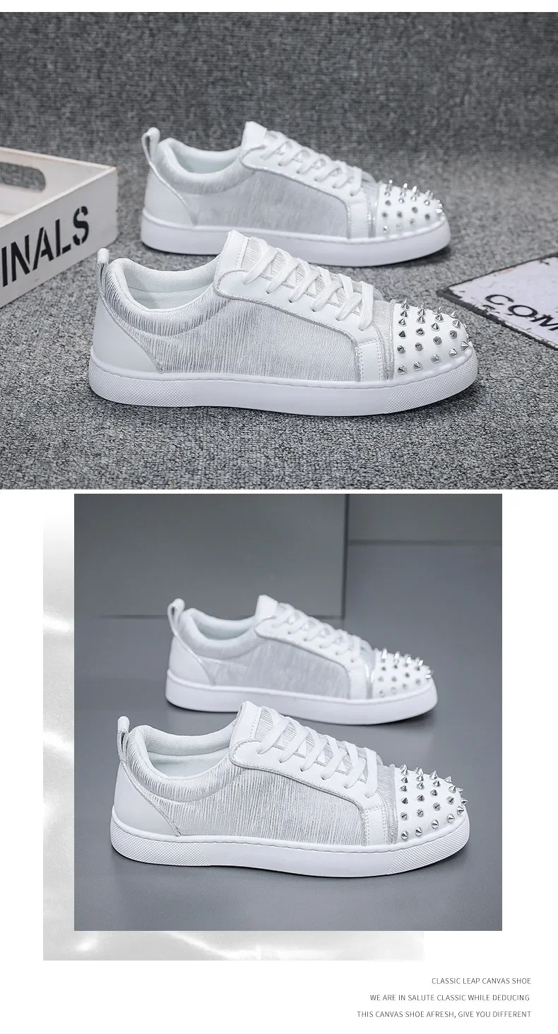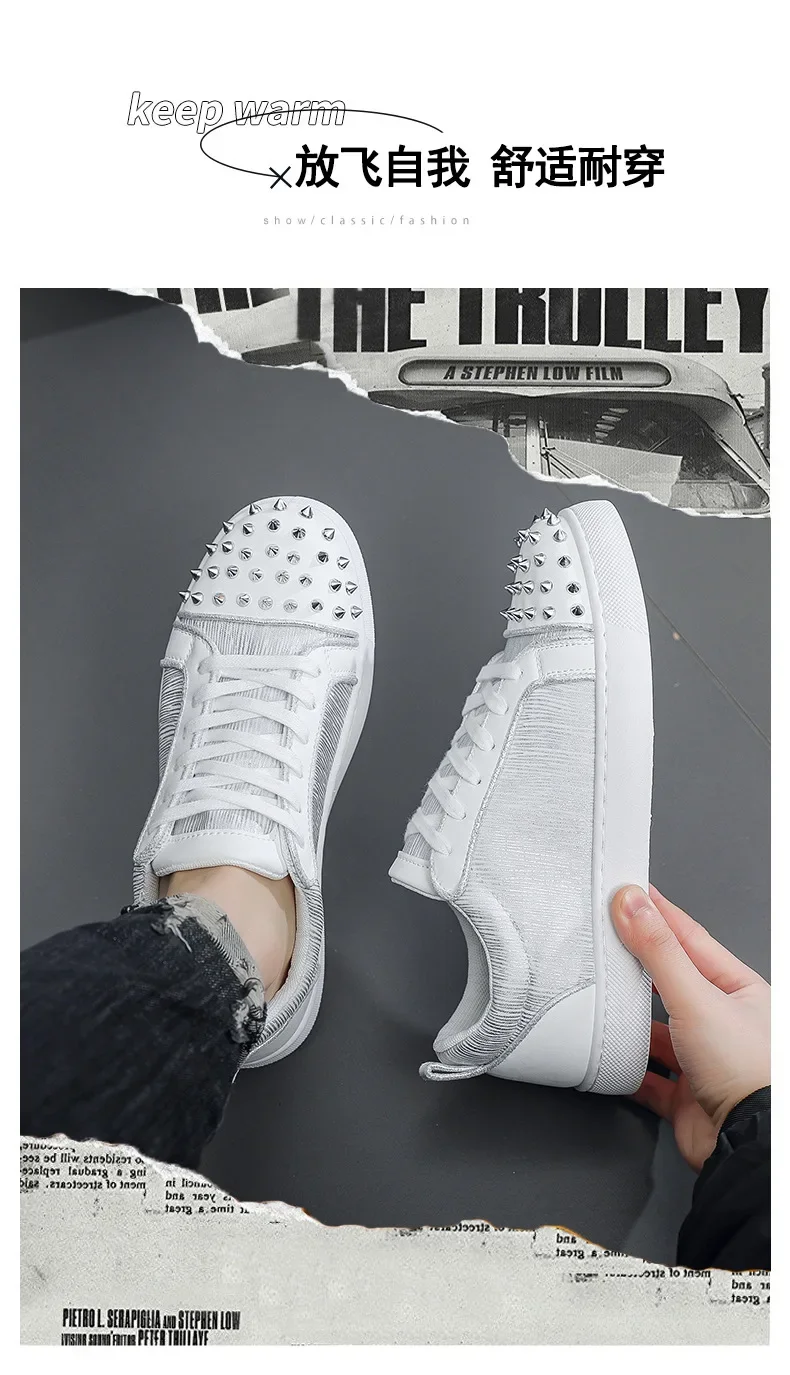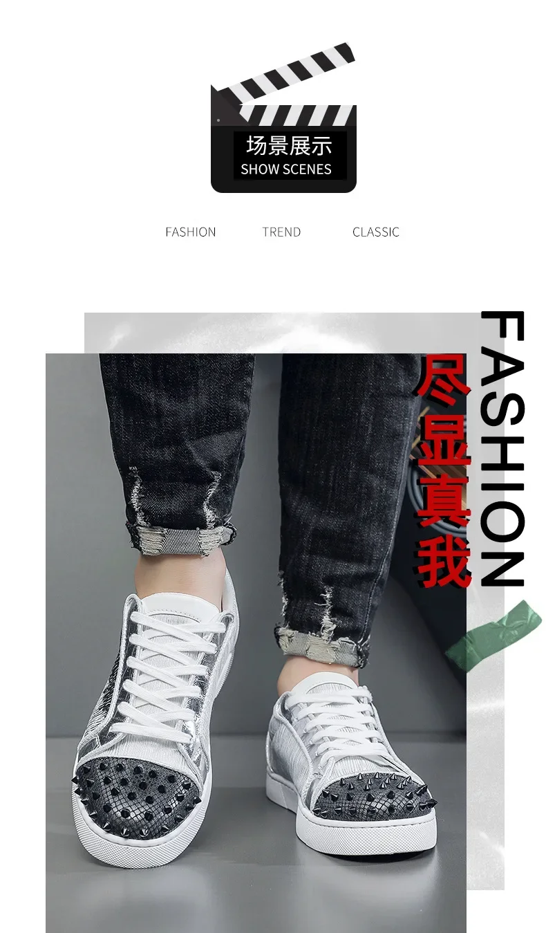 Scarpe da ginnastica Casual da uomo Designer Rivetto Bling Punk Scarpe da tavolo Moda Tessuto in pelle microfibra Scarpe con plateau piatto con altezza maggiorata