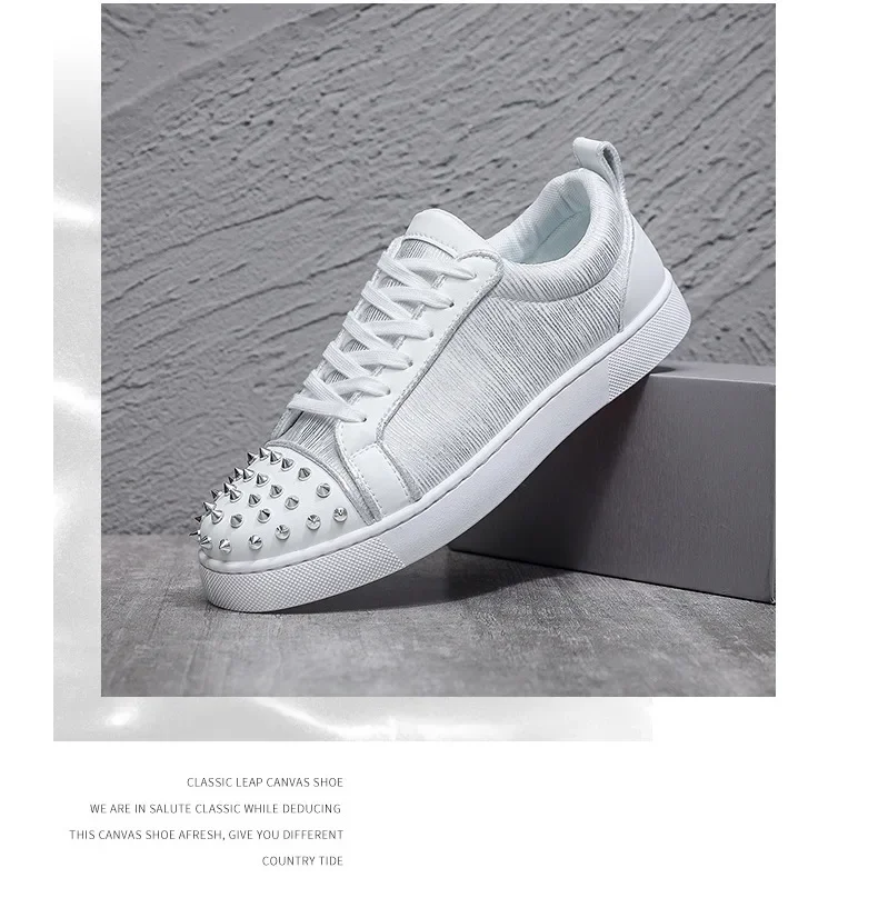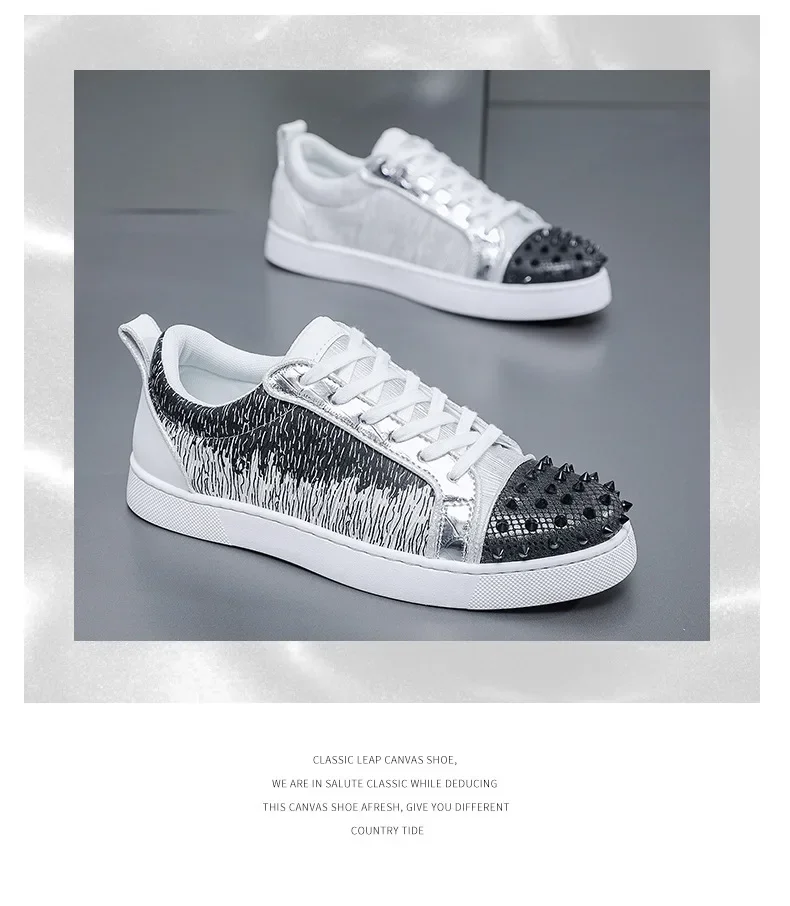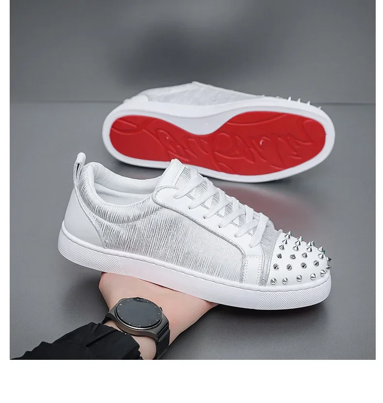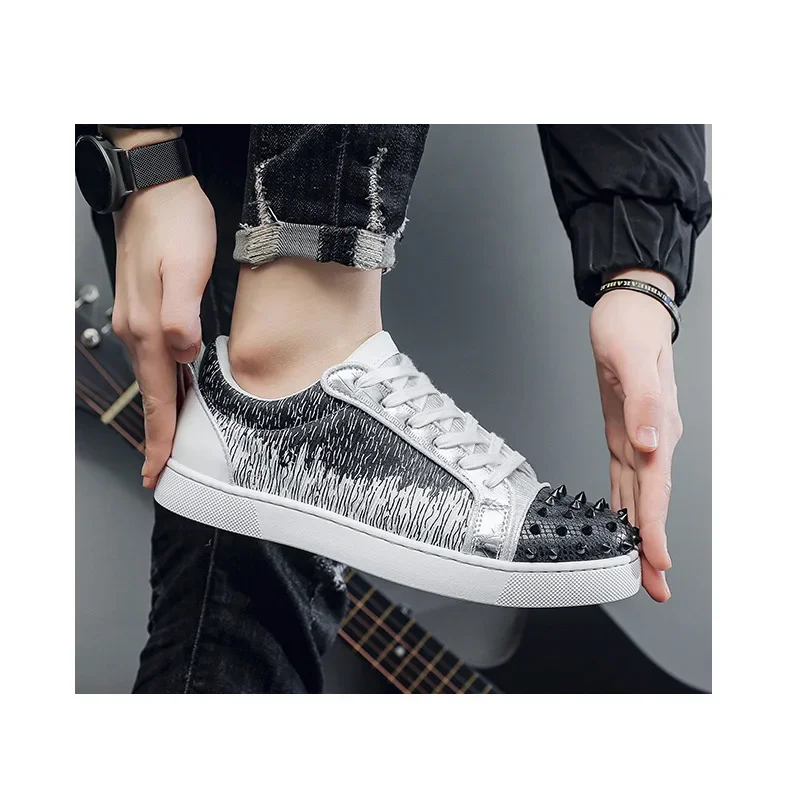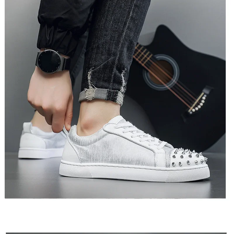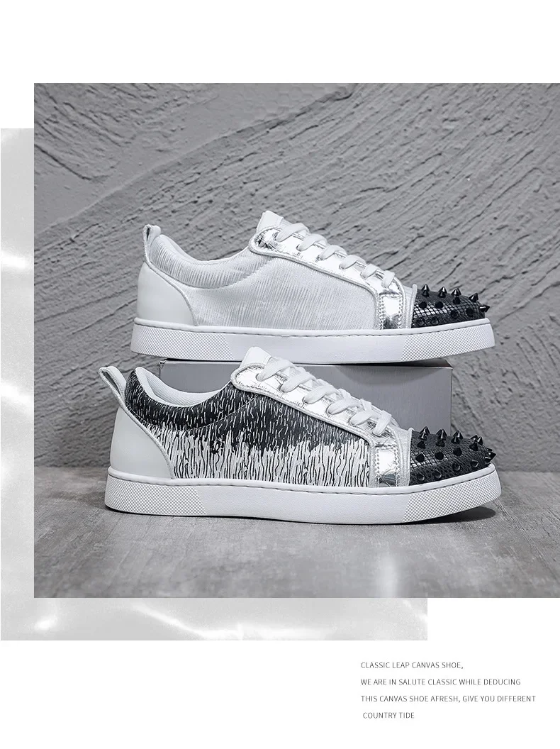 Scarpe da ginnastica Casual da uomo Designer Rivetto Bling Punk Scarpe da tavolo Moda Tessuto in pelle microfibra Scarpe con plateau piatto con altezza maggiorata