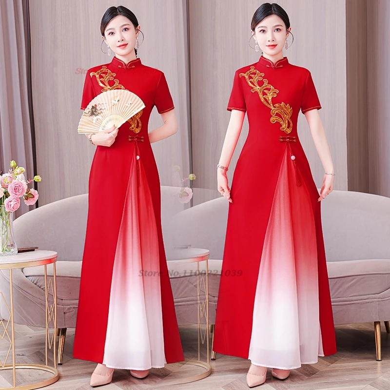 2025 ao dai vietnam tradizionale abito aodai fiore nazionale ricamo qipao abito tradizionale cinese abito da festa cheongsam