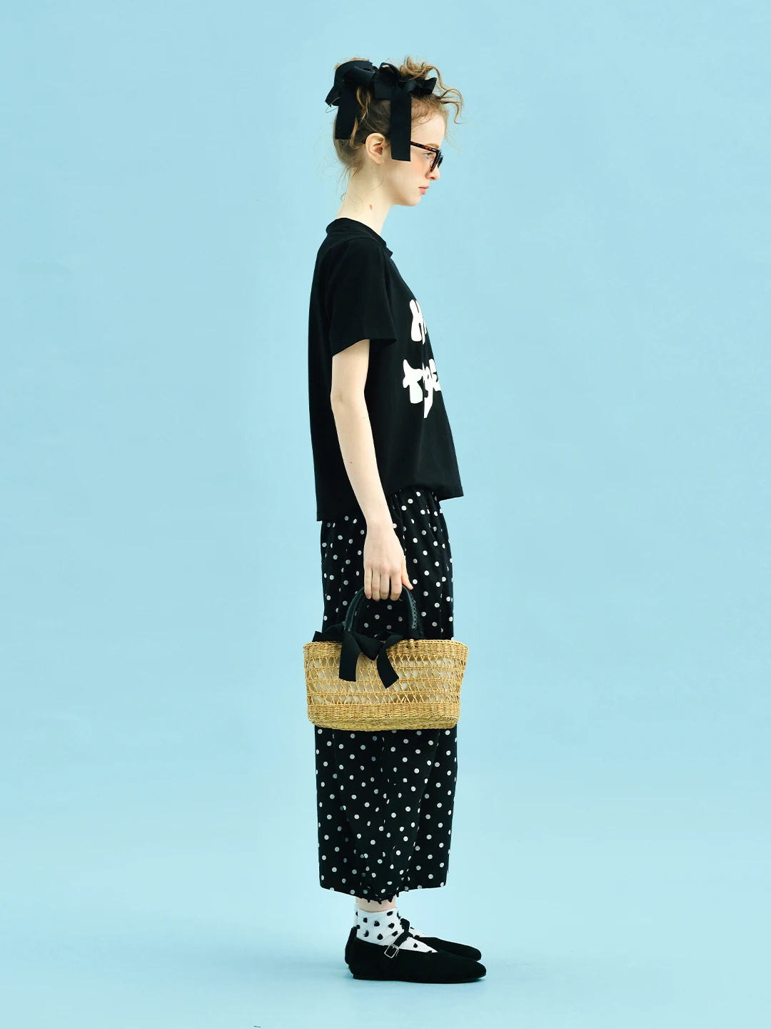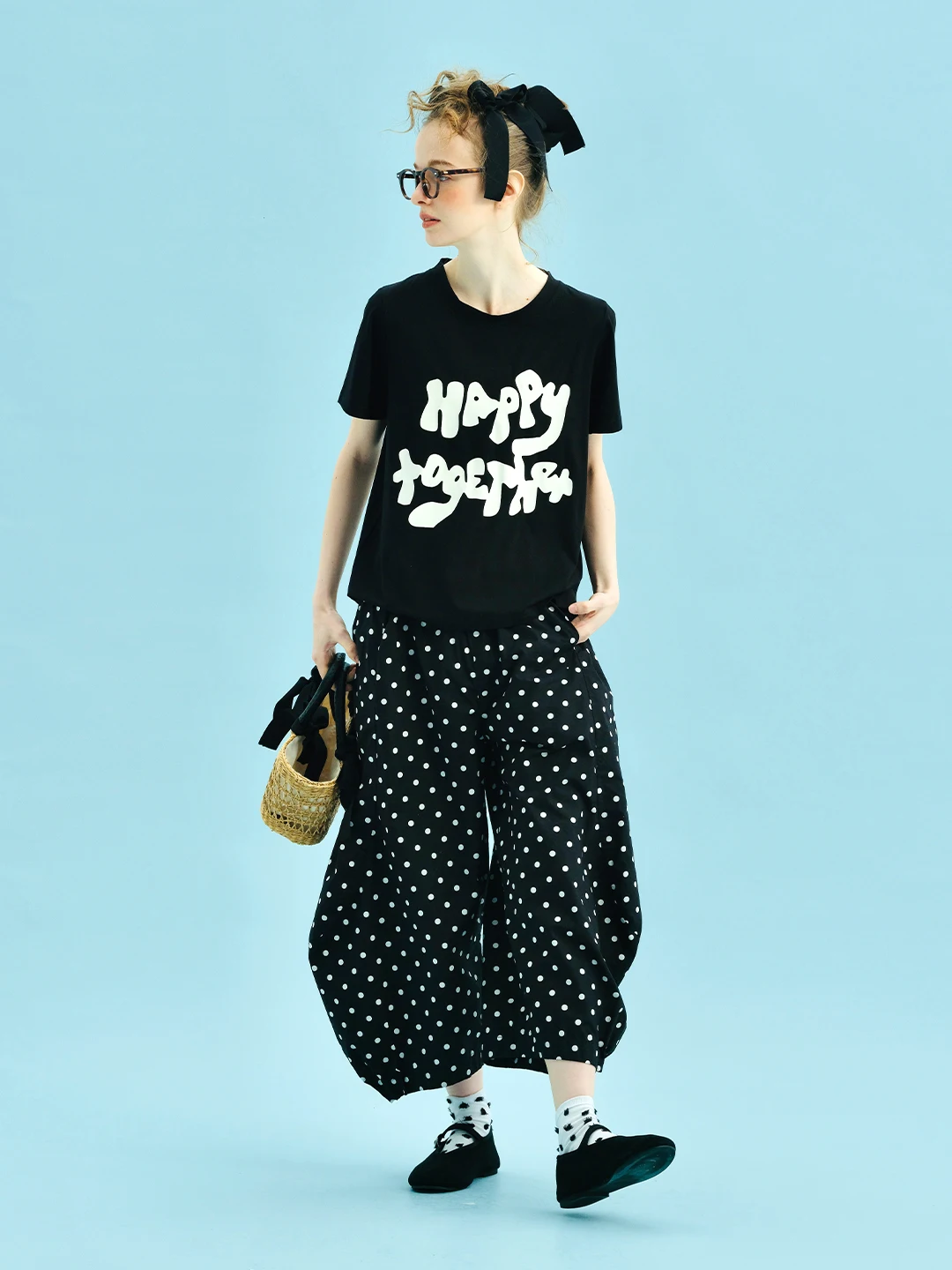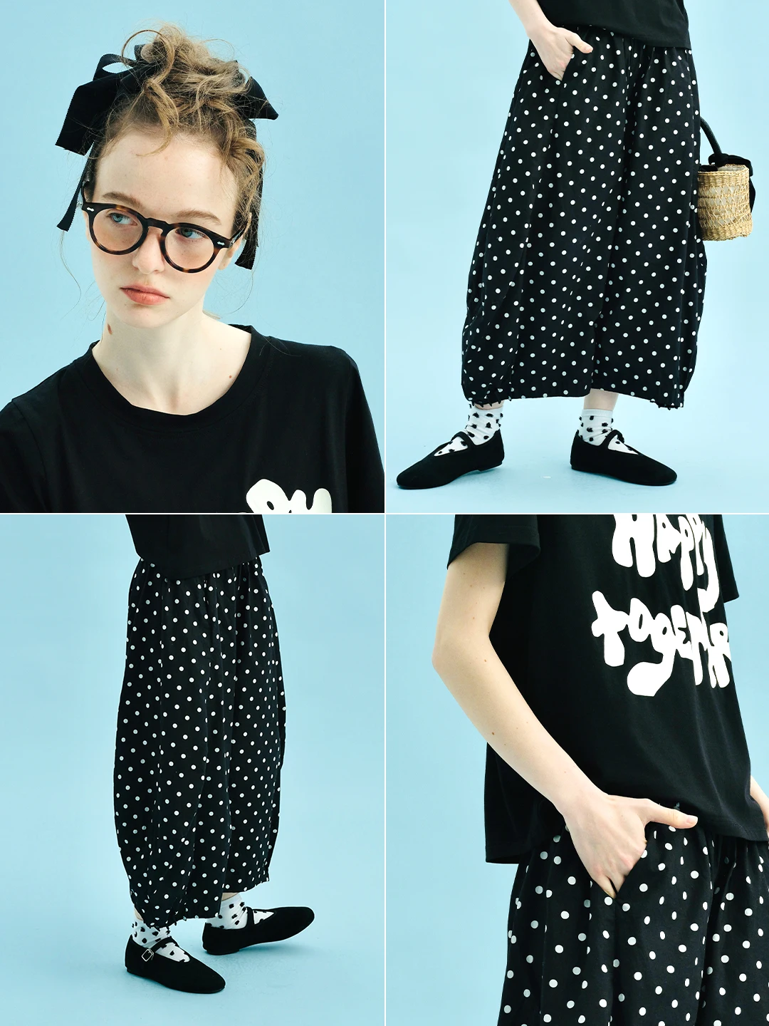 2025 imakokoni Summer New Artistico Pantaloni a gamba piegata in cotone sciolto da donna in bianco e nero 255065