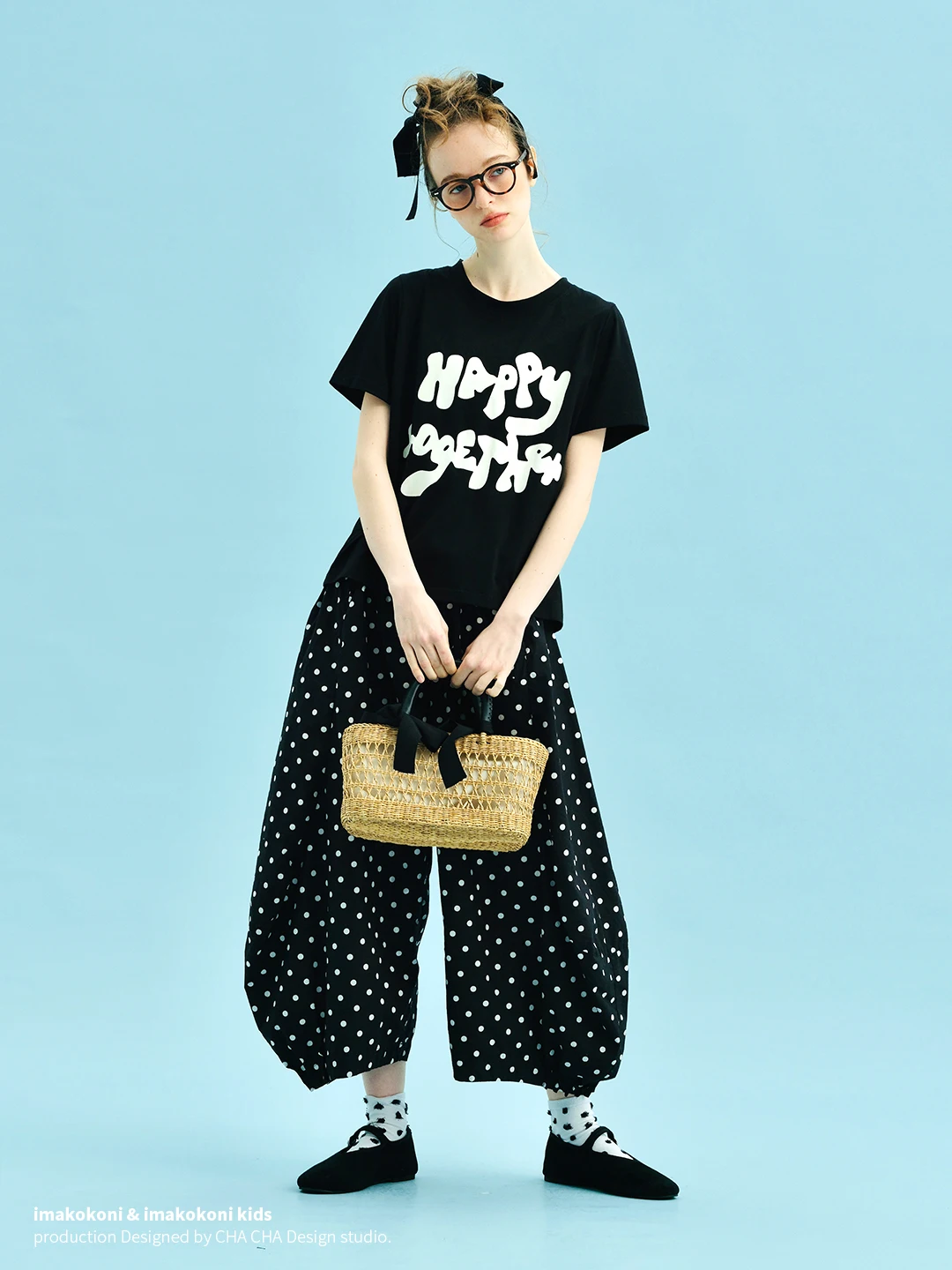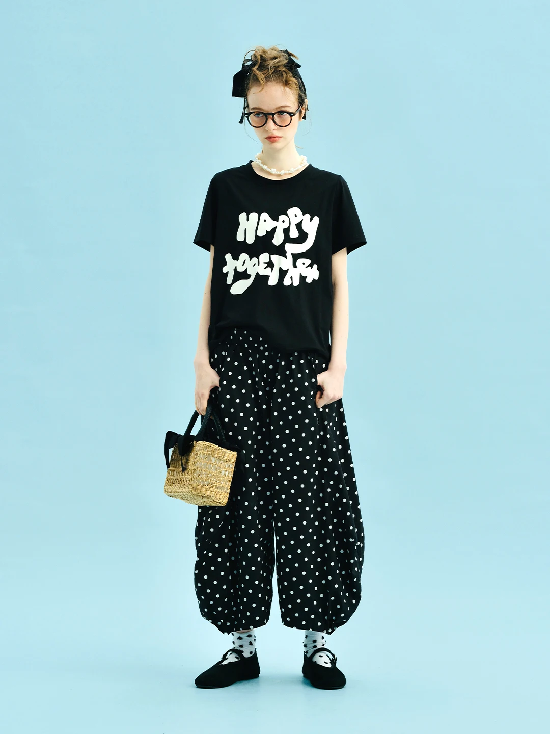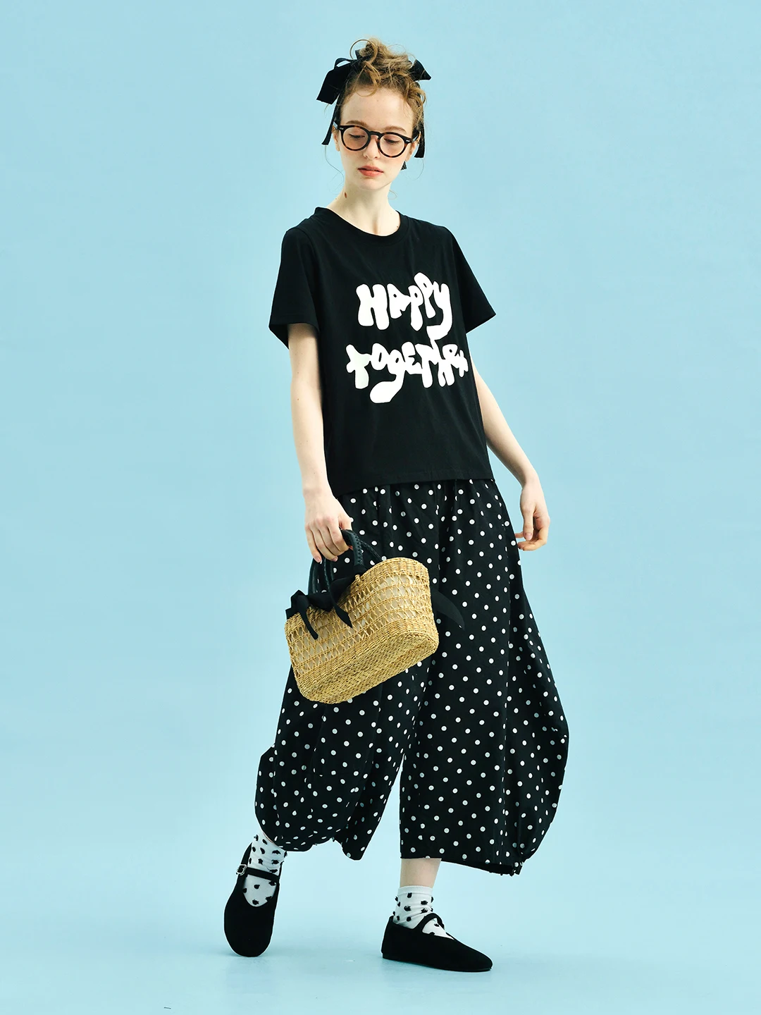 2025 imakokoni Summer New Artistico Pantaloni a gamba piegata in cotone sciolto da donna in bianco e nero 255065