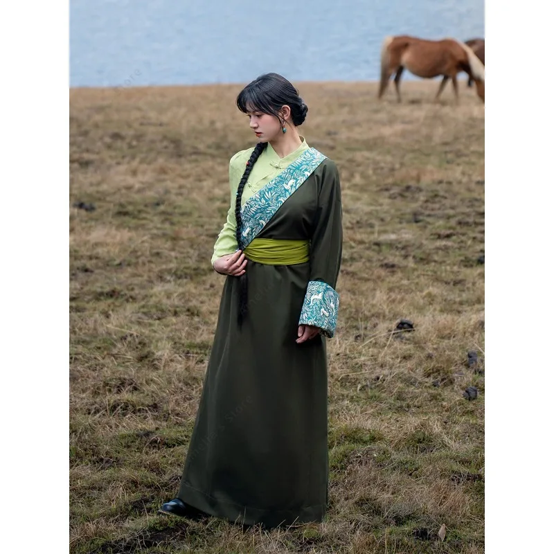 Abito tradizionale tibetano Kham Colletto incrociato Abbigliamento etnico Chuba Abito Lasha Tibet Abbigliamento etnico casual Abiti orientali da donna