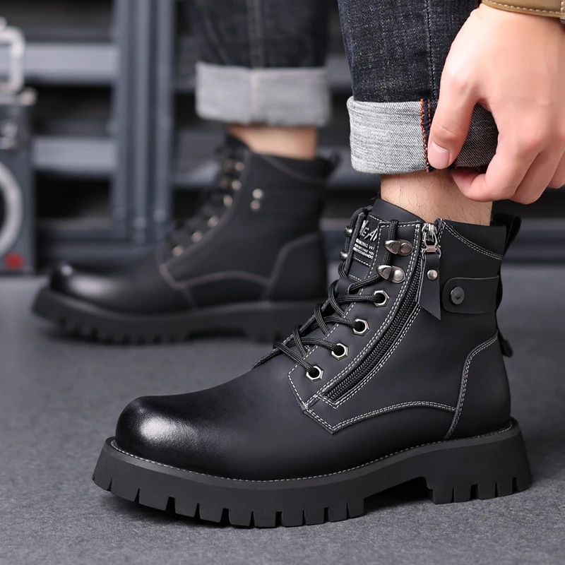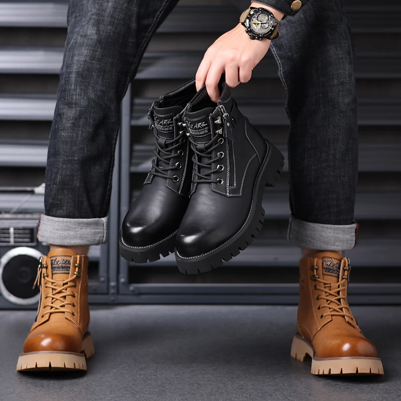 Stivali alti alti in pelle casual da uomo classici da esterno Stivaletti alla moda Autunno Scarpe invernali calde Vendita calda Botas da motocross con lacci 1Stivali alti alti in pelle casual da uomo classici da esterno Stivaletti alla moda Autunno Scarpe invernali calde Vendita calda Botas da motocross con lacci