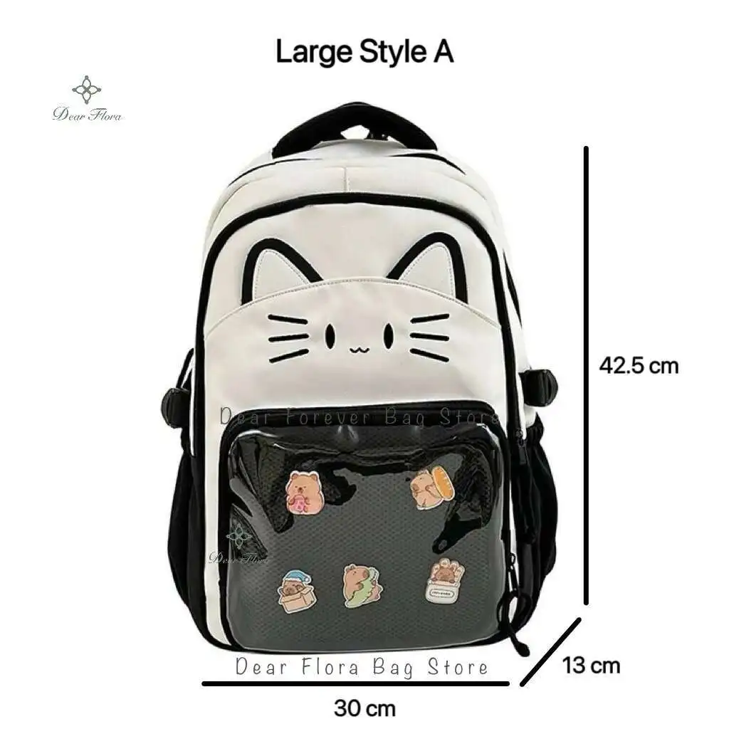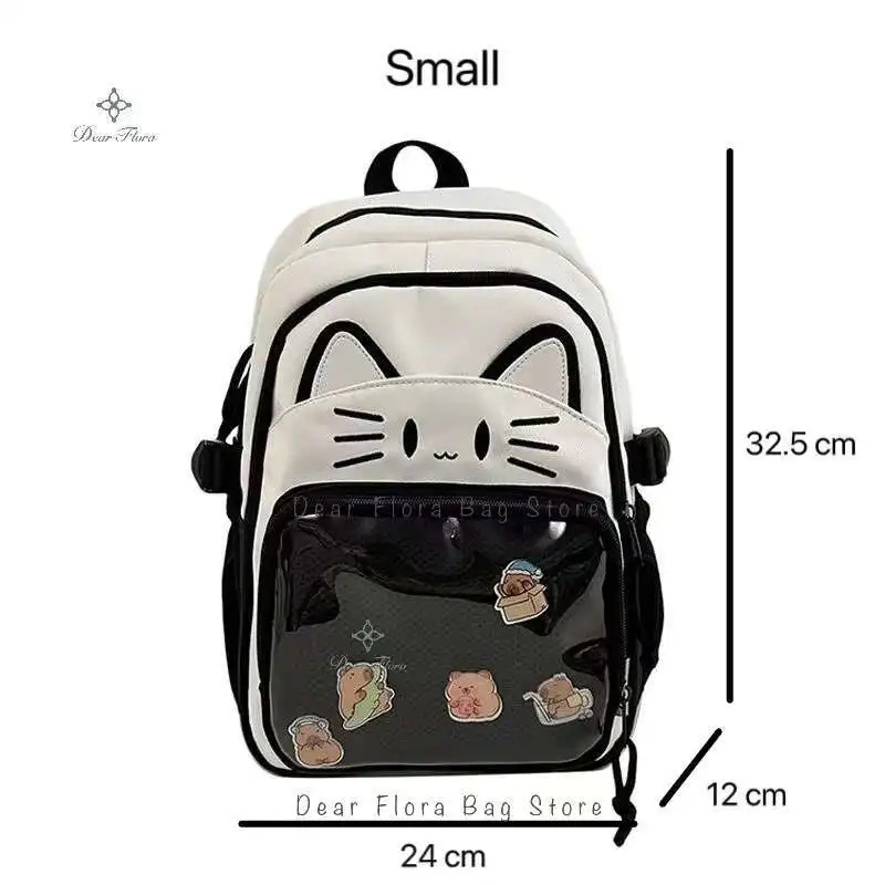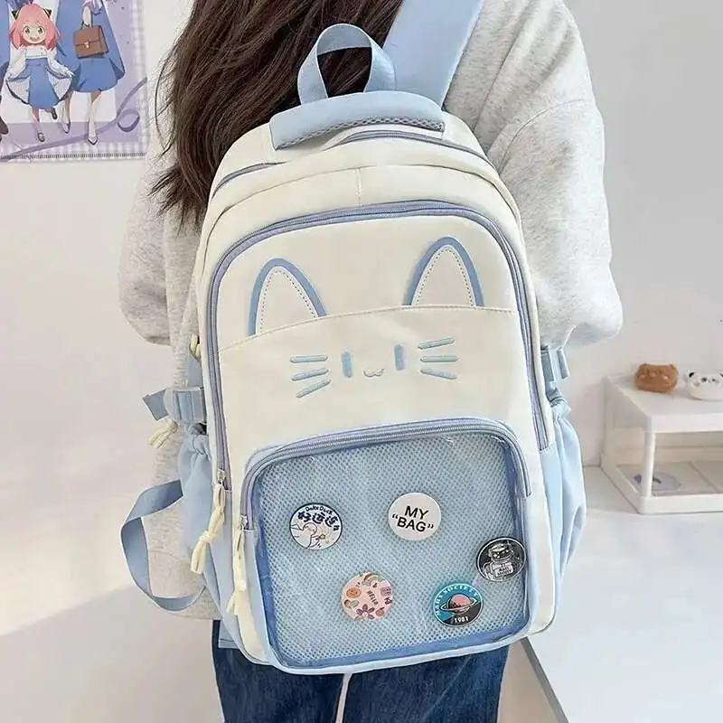Y2K Cute Cat Ita Zaini Zaino di grande capacità Ragazza casual Trasparente Display fai da te Zaino Cartoon Zaini da viaggio alla moda
