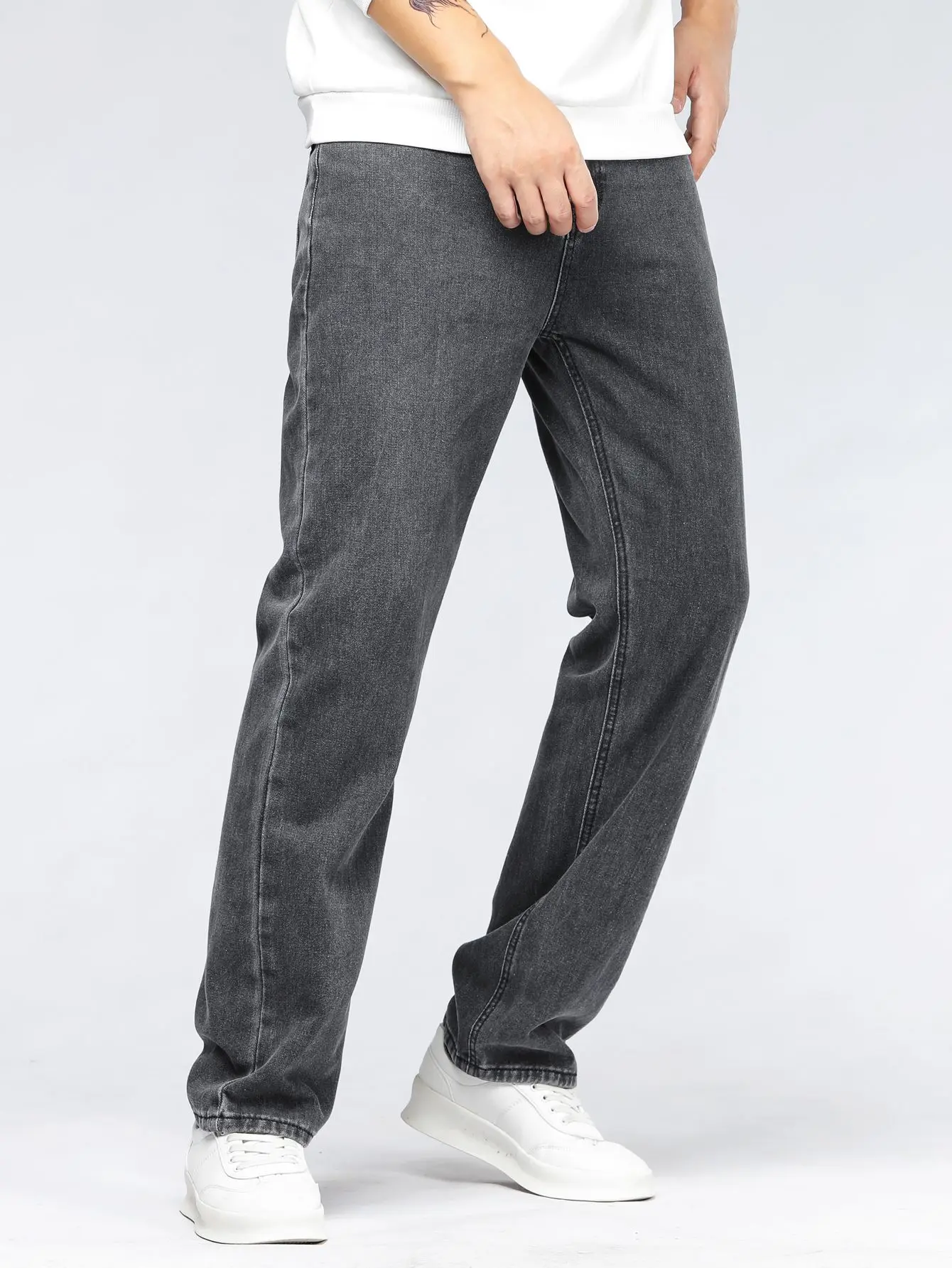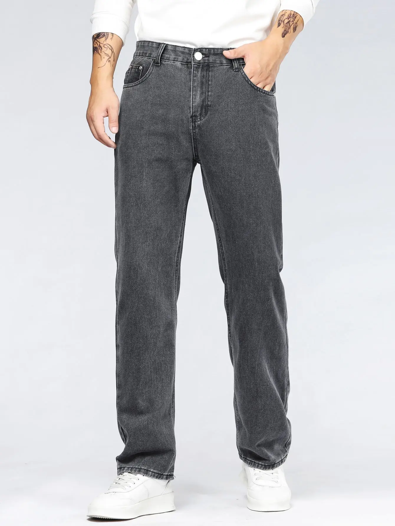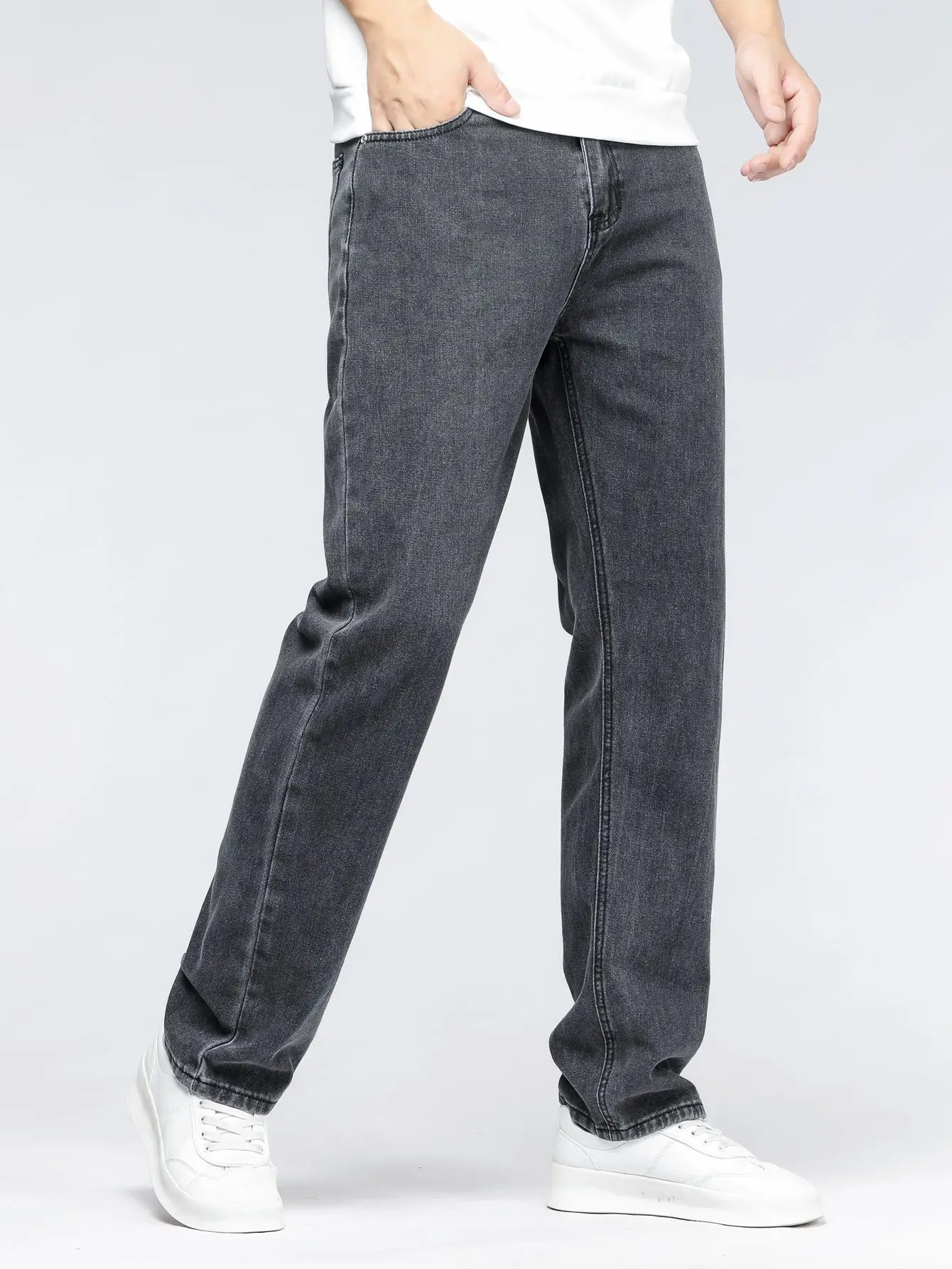 Jeans larghi alla moda coreana da uomo Pantaloni classici a gamba larga in denim a gamba dritta tinta unita tutto-fiammifero maschile azzurro nero grigio