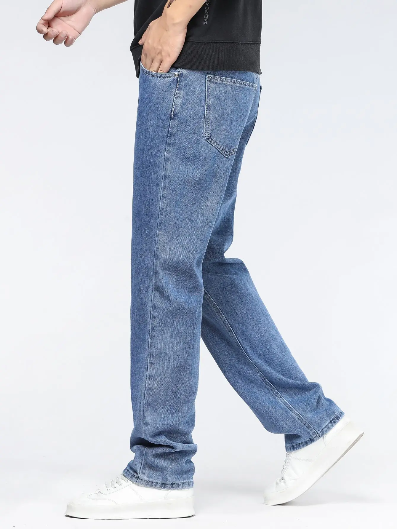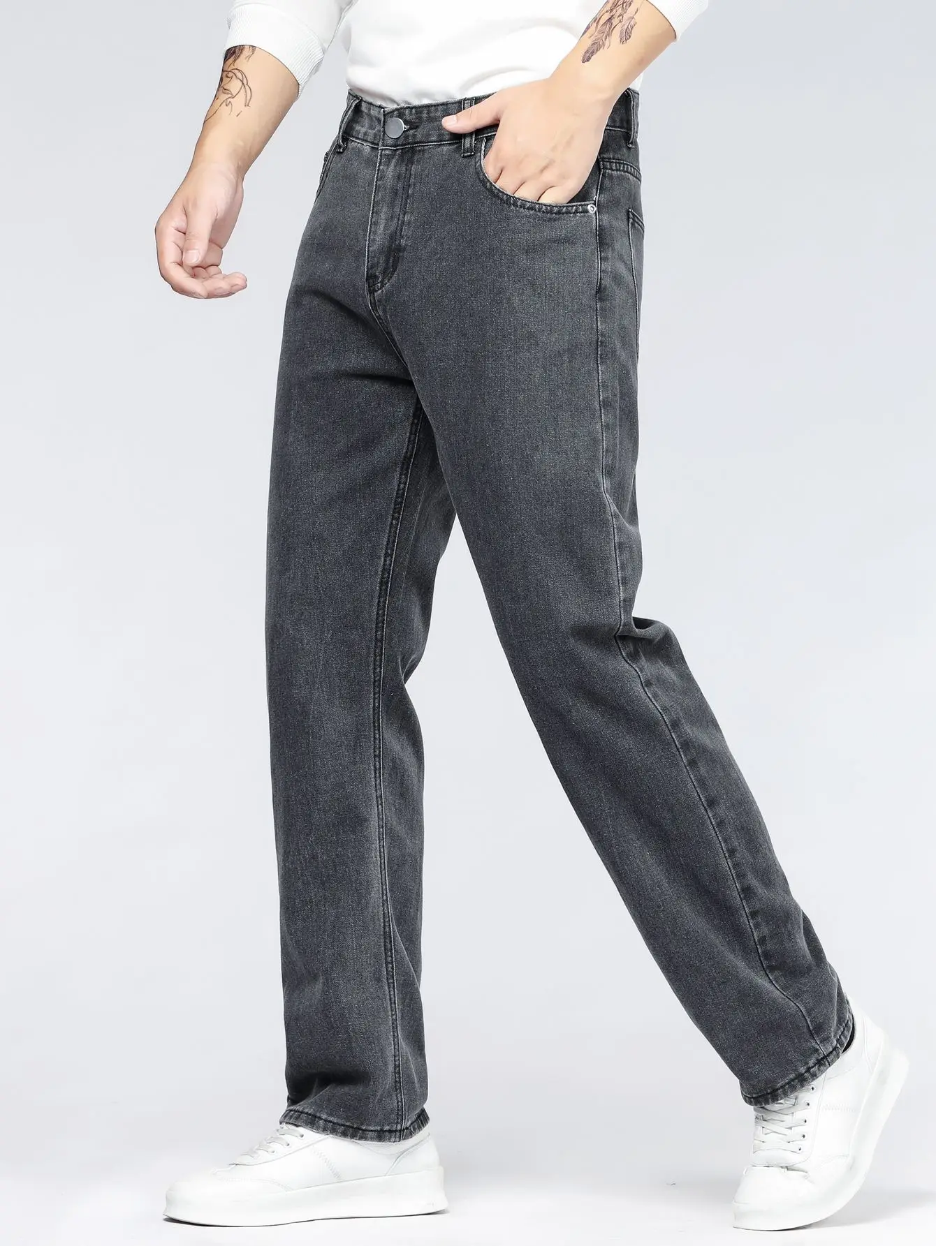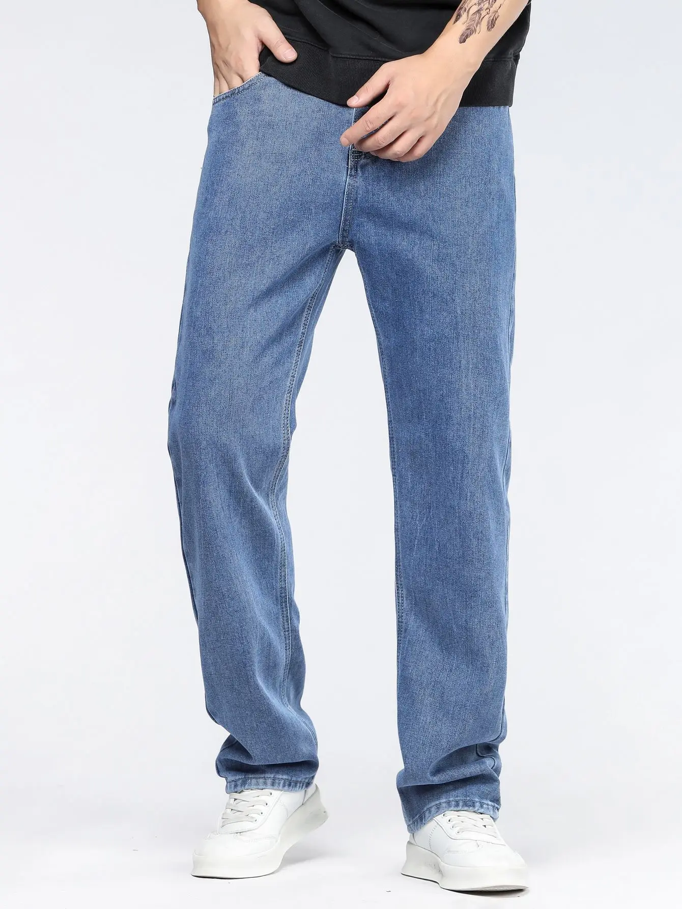 Jeans larghi alla moda coreana da uomo Pantaloni classici a gamba larga in denim a gamba dritta tinta unita tutto-fiammifero maschile azzurro nero grigio