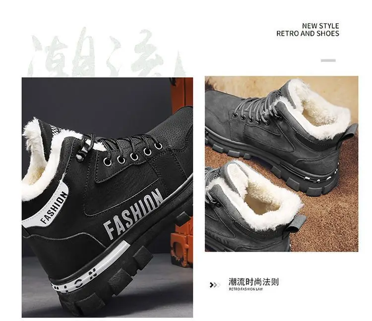 Stivali da neve da uomo Stivali da neve invernali antiscivolo in peluche per interni caldi a prova di freddo Stivali da lavoro sportivi da esterno con plateau alto e lacci