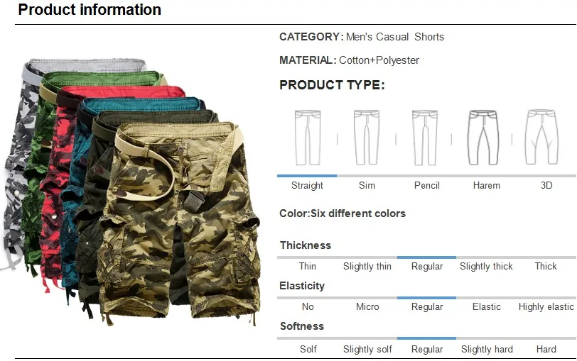 Pantaloncini casual da uomo mimetici da uomo pantaloncini cargo capispalla estate vendita calda cotone di qualità abbigliamento di marca pantaloni sportivi maschili militari
