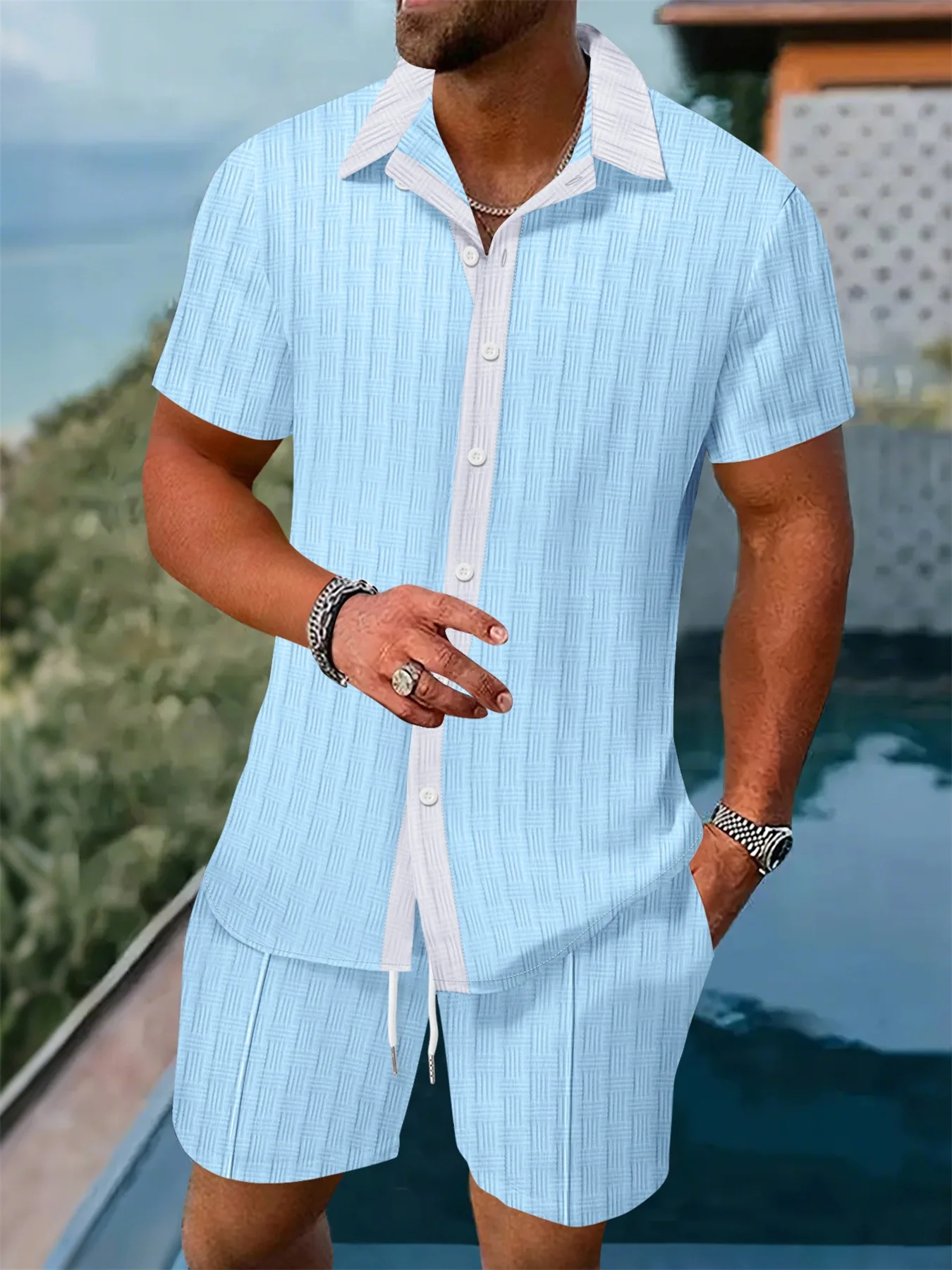 Camicia alla moda con schizzi di colore muscolare sportivo casual da uomo di tendenza estiva e set di pantaloncini jacquard con coulisse in tinta unita 1Camicia alla moda con schizzi di colore muscolare sportivo casual da uomo di tendenza estiva e set di pantaloncini jacquard con coulisse in tinta unita