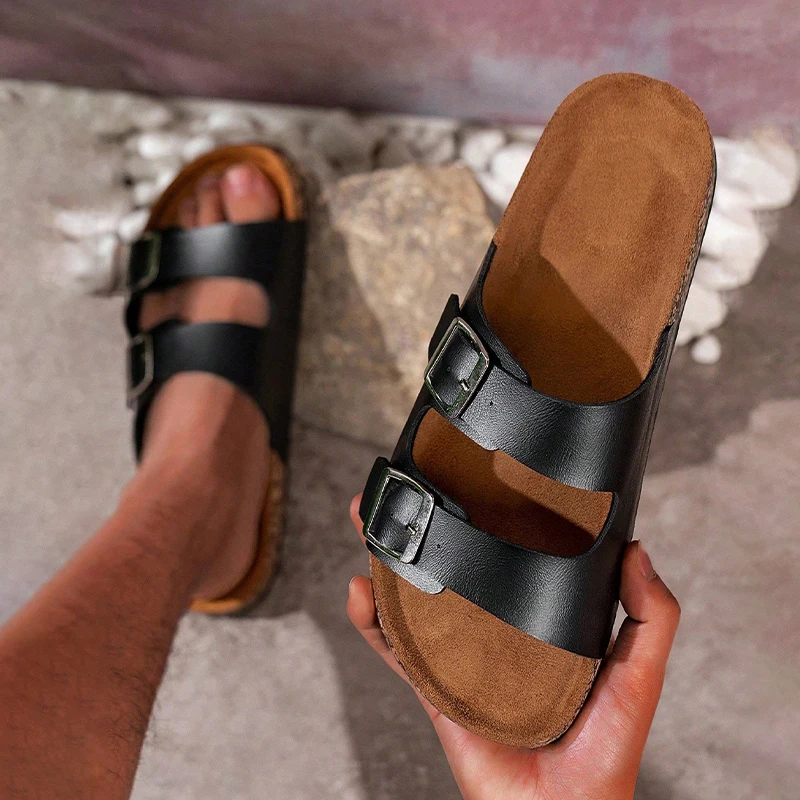 Pantofole da uomo classiche per le vacanze estive unisex con fibbie suole in sughero Pantofole da coppia per uomo Scarpe da spiaggia leggere da esterno da donna