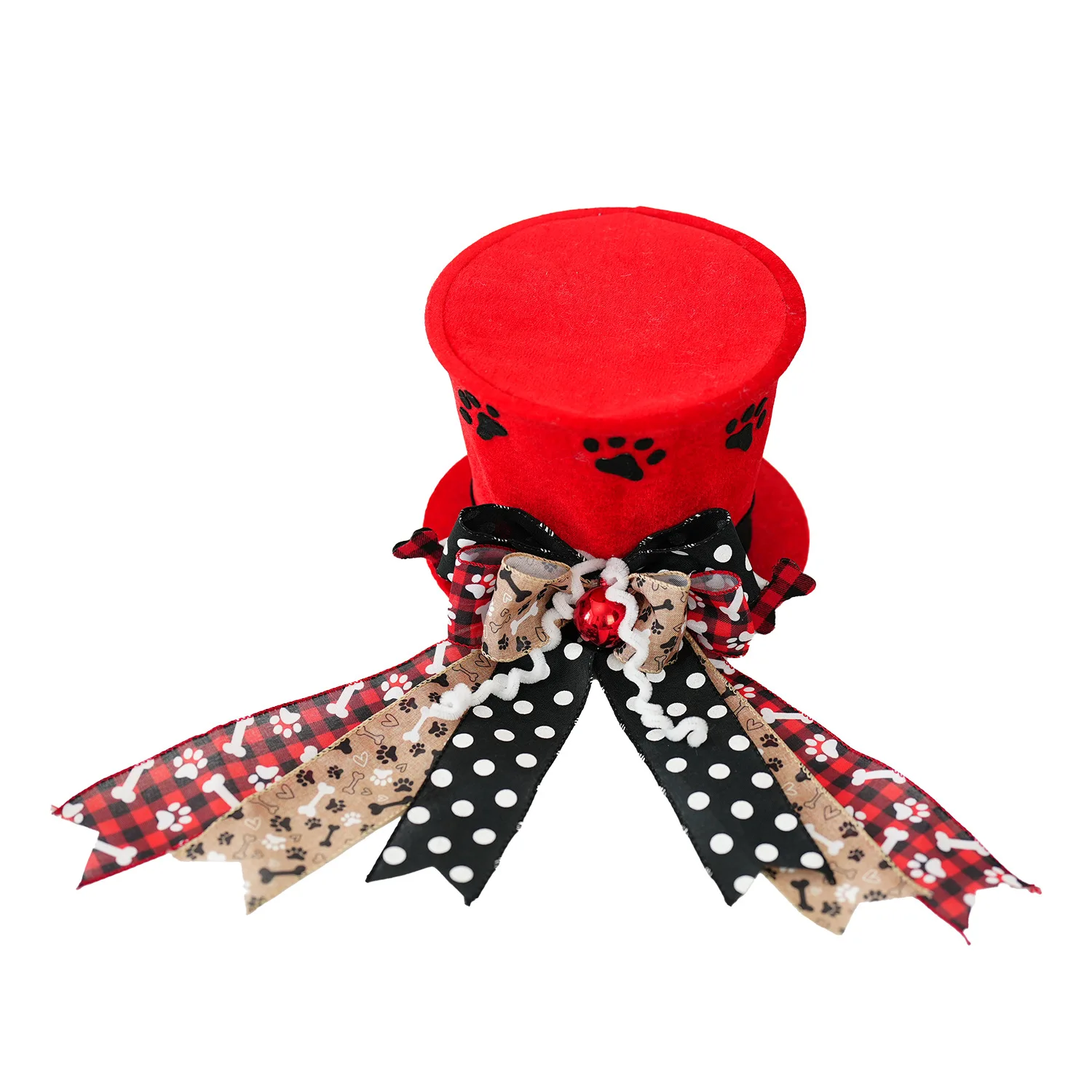 Il cappello a cilindro dell’albero di Natale della decorazione dell’albero di Natale è pieghevole con un nastro a fiocco, adatto per la decorazione delle feste invernali