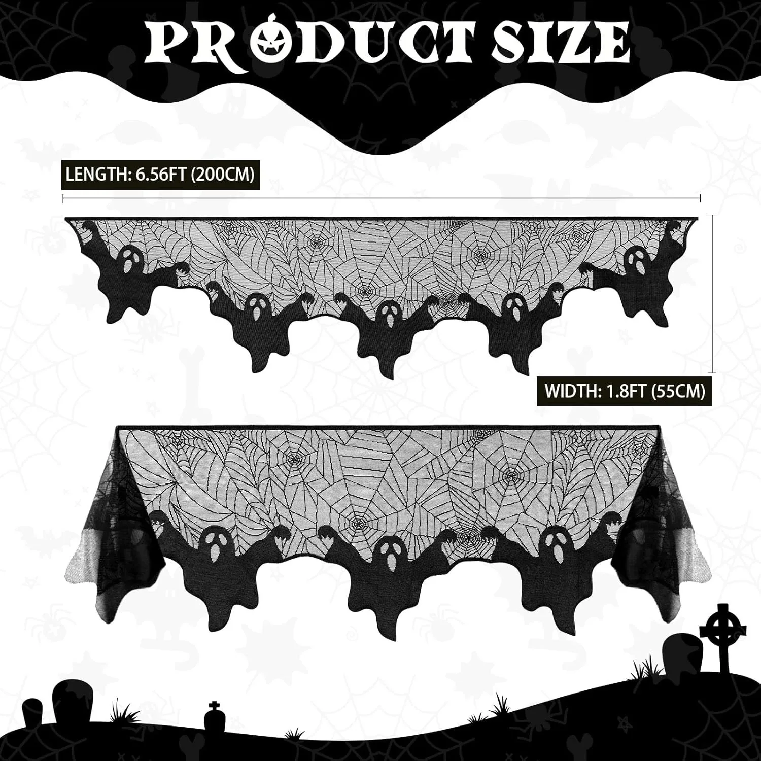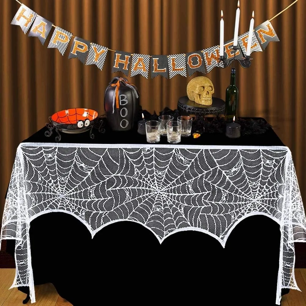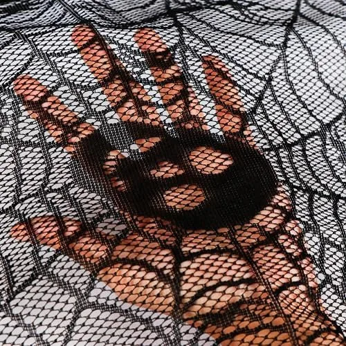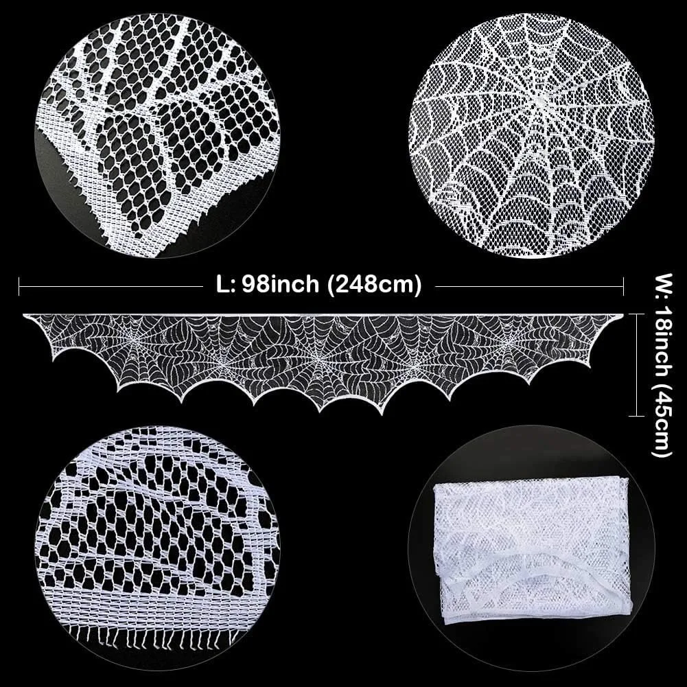 La sciarpa con mantello per camino in pizzo ampiamente utilizzata per visualizzare il tavolo, sopra la porta interna, il camino, la finestra, la porta, la cameretta, il buffet o come sfondo. Divertente collezione ispirata a Halloween per una festa o un arredamento