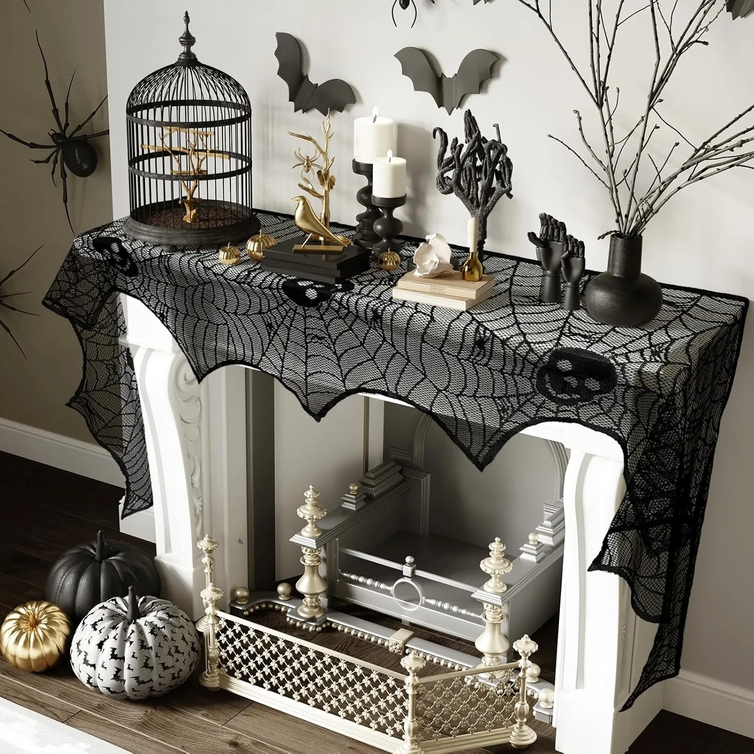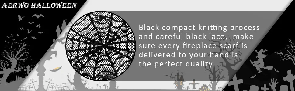 L’artigianato lavorato a maglia in pizzo con il design a ragnatela utilizzato nella sciarpa con mantello da camino in pizzo nero, aumenta l’atmosfera misteriosa nel tuo Halloween.Un modo elegante e facile per trasformare il tuo caminetto.