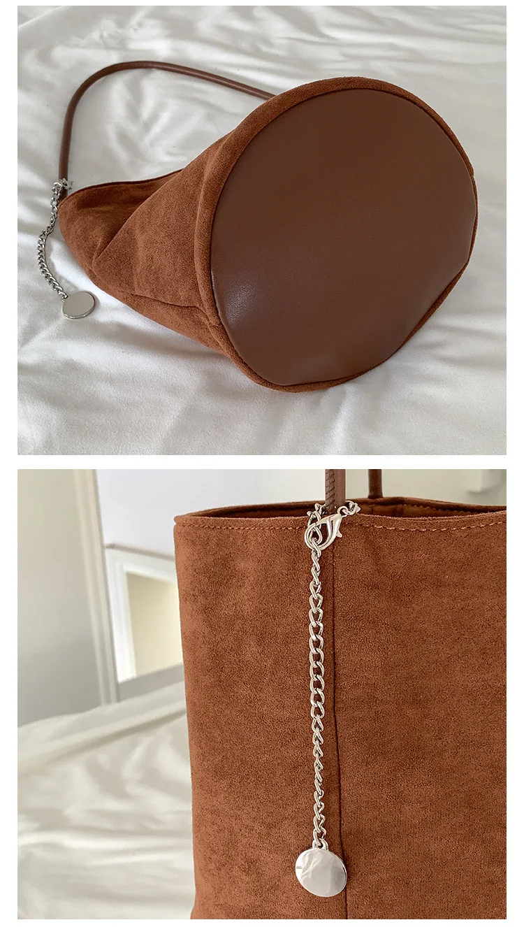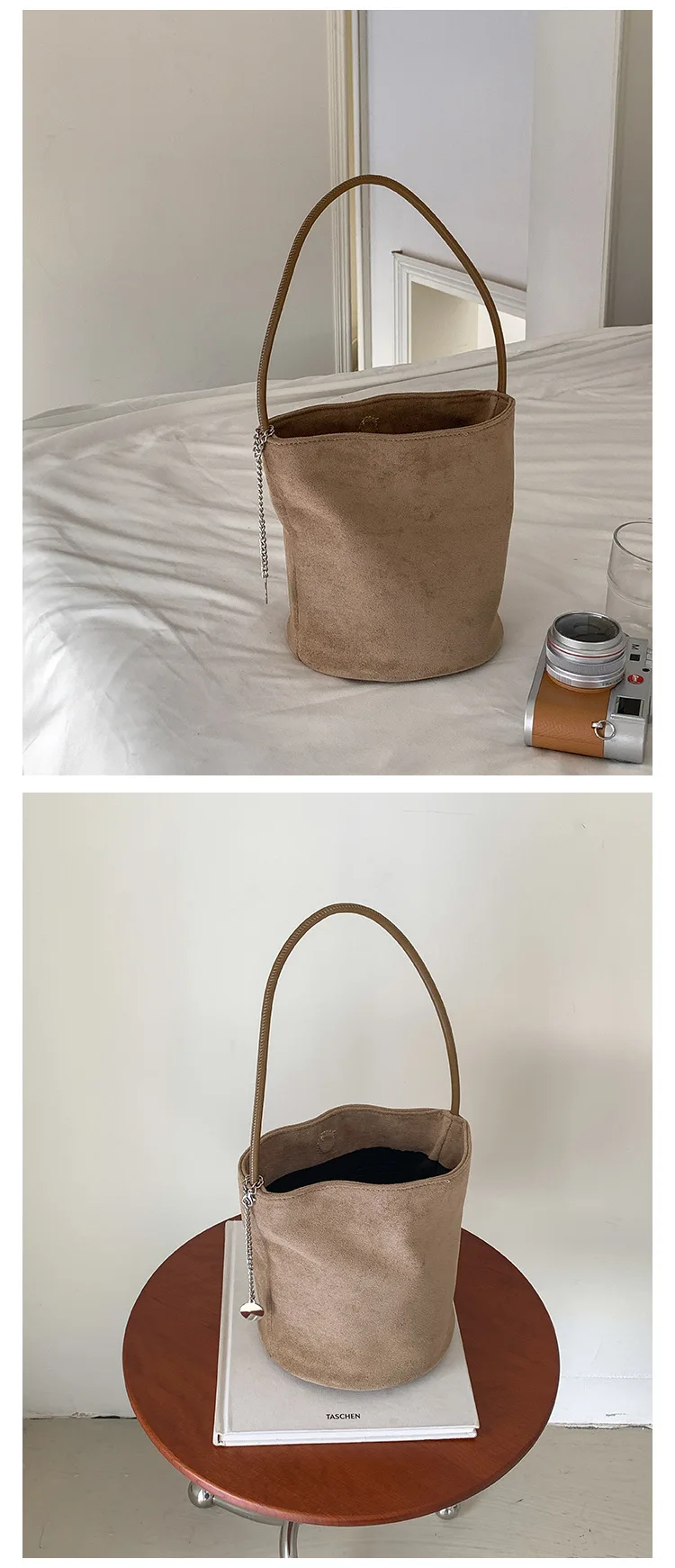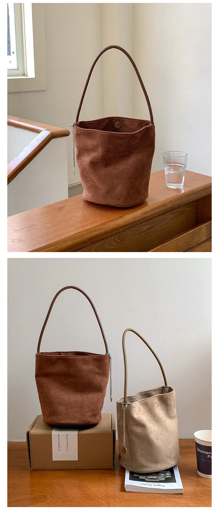 Borse a tracolla a secchiello da donna vintage con nappa piccola borsa da donna in pelle PU opaca invernale nuove borse da donna in finta pelle scamosciata