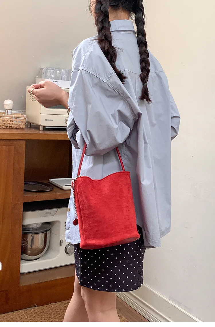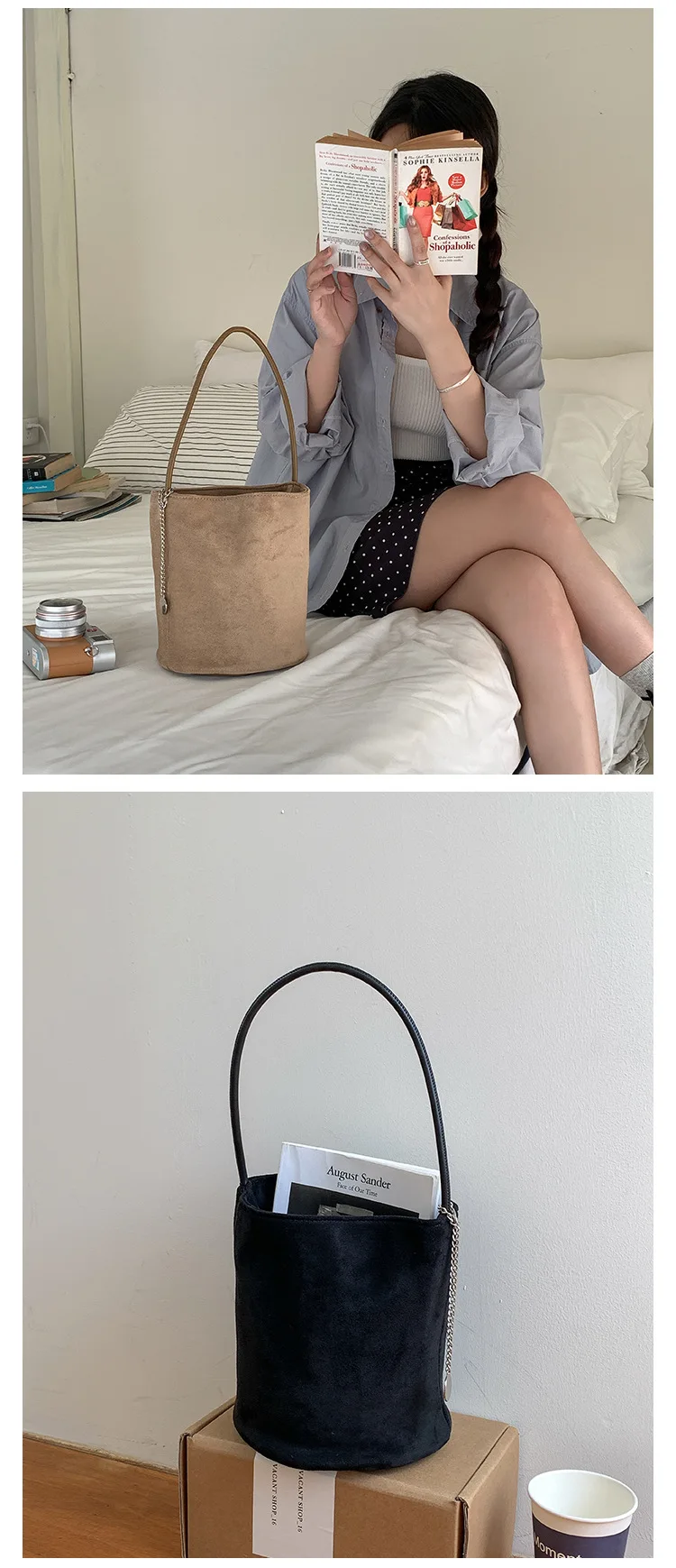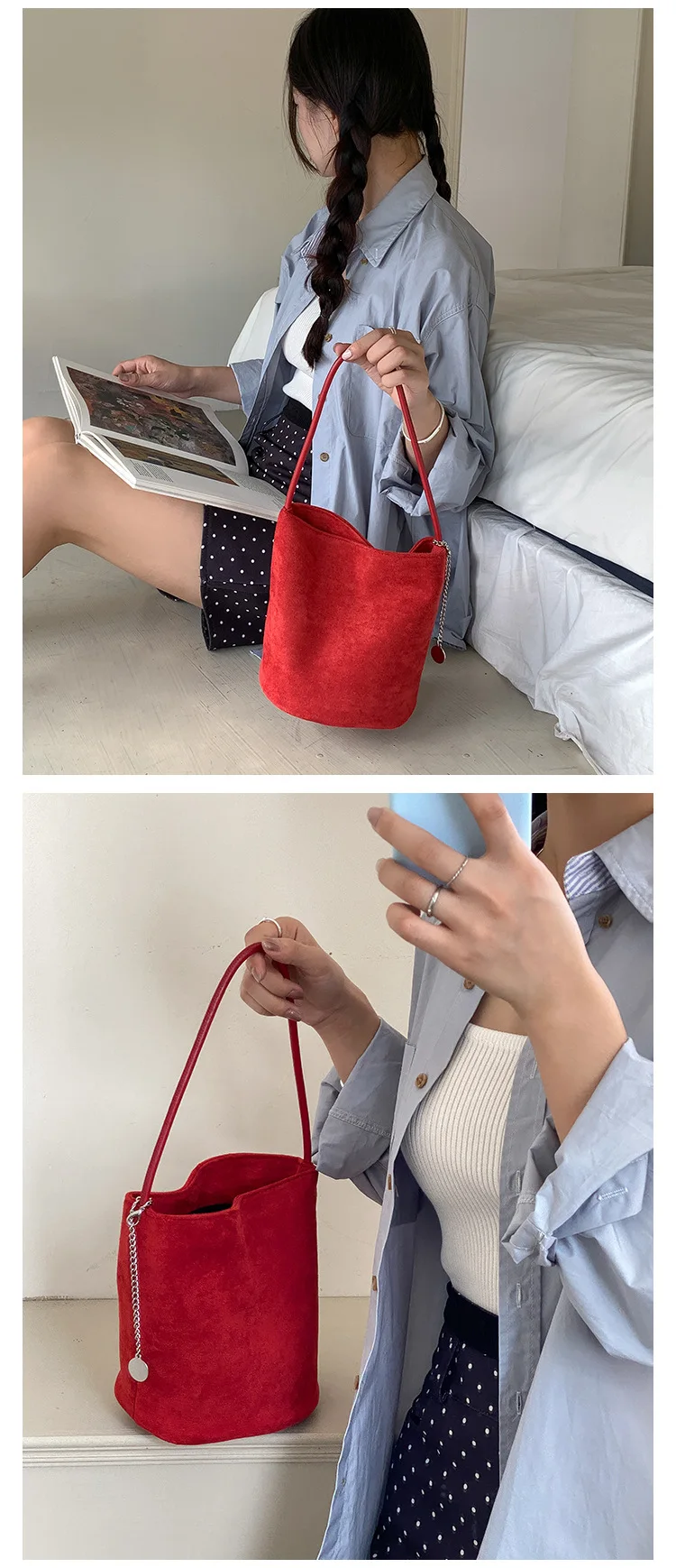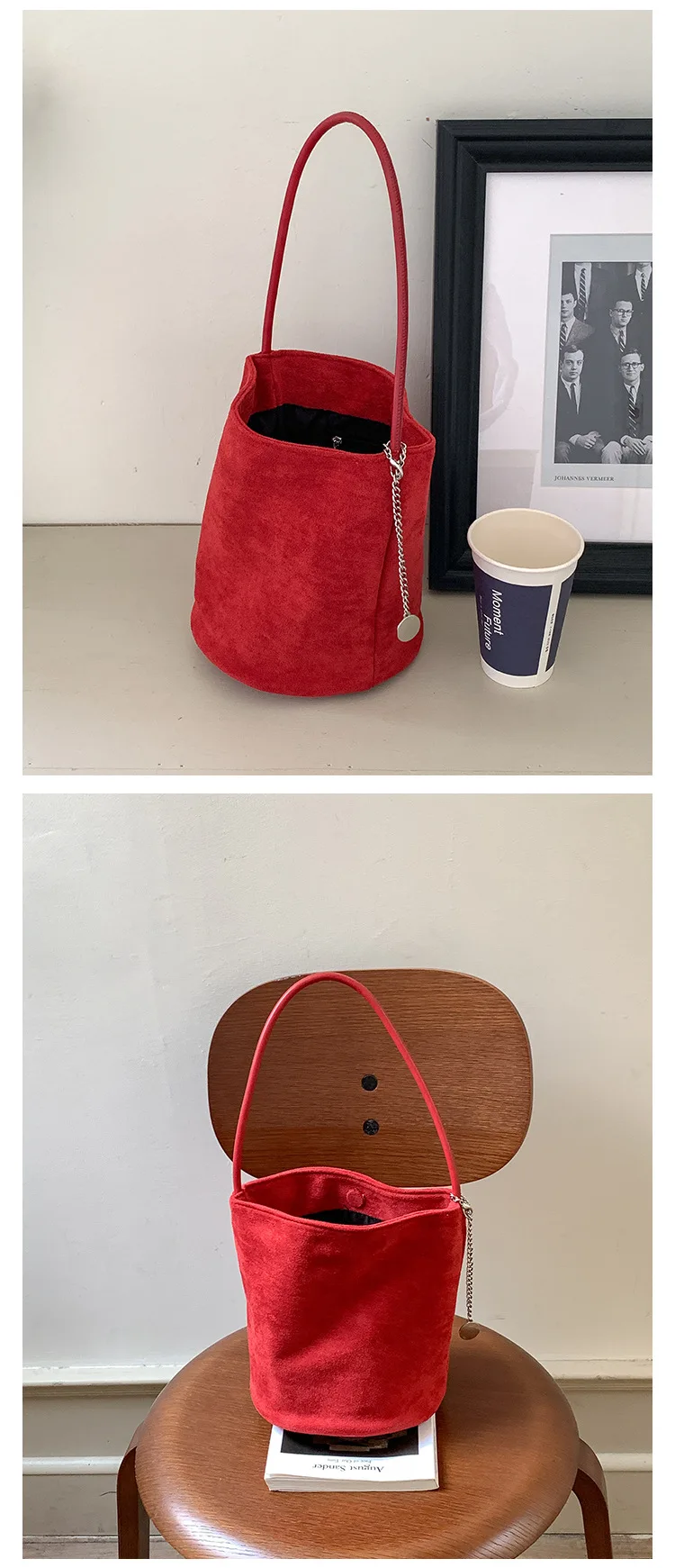 Borse a tracolla a secchiello da donna vintage con nappa piccola borsa da donna in pelle PU opaca invernale nuove borse da donna in finta pelle scamosciata