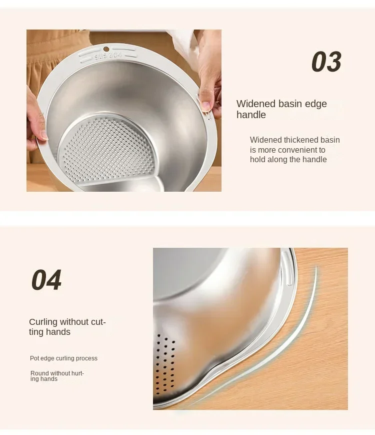 304 In Acciaio Inox Rondella di Riso Colino Ciotola Ciotola di Lavaggio del Riso Setaccio di Riso Colino Frutta E Verdura Colino Utensili Da Cucina L