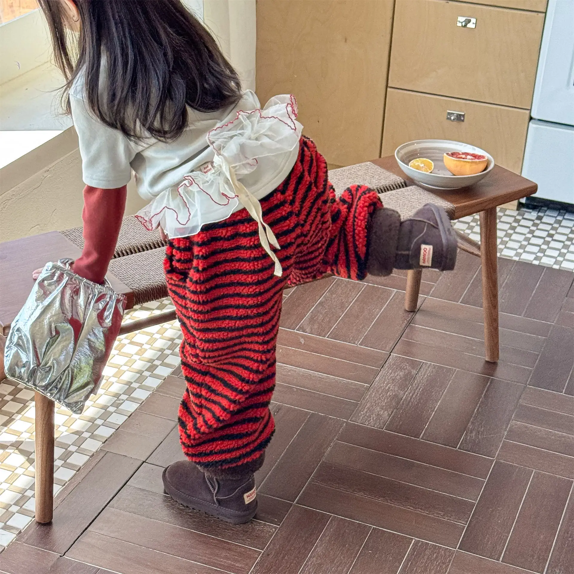 – **Tessuto ultra caldo e delicato sulla pelle**: imbottito con lana d’agnello e cotone imbottito, i pantaloni offrono una forte ritenzione del calore per mantenere i bambini comodi nel freddo inverno.La texture morbida è delicata sulla pelle sensibile dei bambini, evitando attriti o irritazioni. – **Design classico e facile da indossare**: presenta motivi a righe senza tempo che non passano mai di moda, abbinandosi a vari maglioni o felpe con cappuccio.La cintura elastica garantisce una vestibilità flessibile, rendendo veloce vestirsi/scendere, ottimo per i bambini attivi di età compresa tra 1 e 6 anni. – **Vestibilità ampia e adatta all’attiva**: il design rilassato delle gambe consente la libera circolazione, sia che i bambini corrono, giochino all’aperto o svolgano attività quotidiane.Nessuna tenuta, mantenendo il comfort come massima priorità. – **Durevole e di facile manutenzione**: lavabile in lavatrice senza sbiadire, formarsi pelucchi o perdere forma. Il tessuto robusto resiste all’usura frequente (ideale per l’uso quotidiano dei bambini), risparmiando tempo ai genitori nella manutenzione.