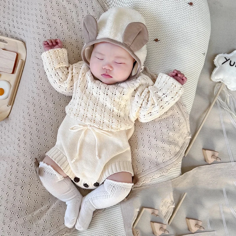 Neonato Neonate Abiti lavorati a maglia Cuore Manica lunga Tuta Outfit Autunno Inverno Lana Maglione lavorato a maglia Pagliaccetto Abbigliamento