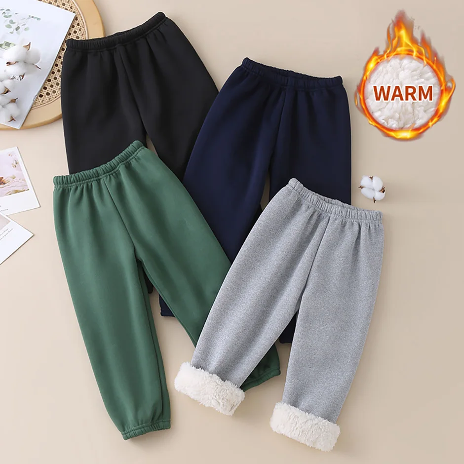 Set da 3/1 pezzi di pantaloni Haren caldi casual in tinta unita autunno/inverno per bambini per ragazzi e ragazze con pantaloni sportivi in peluche