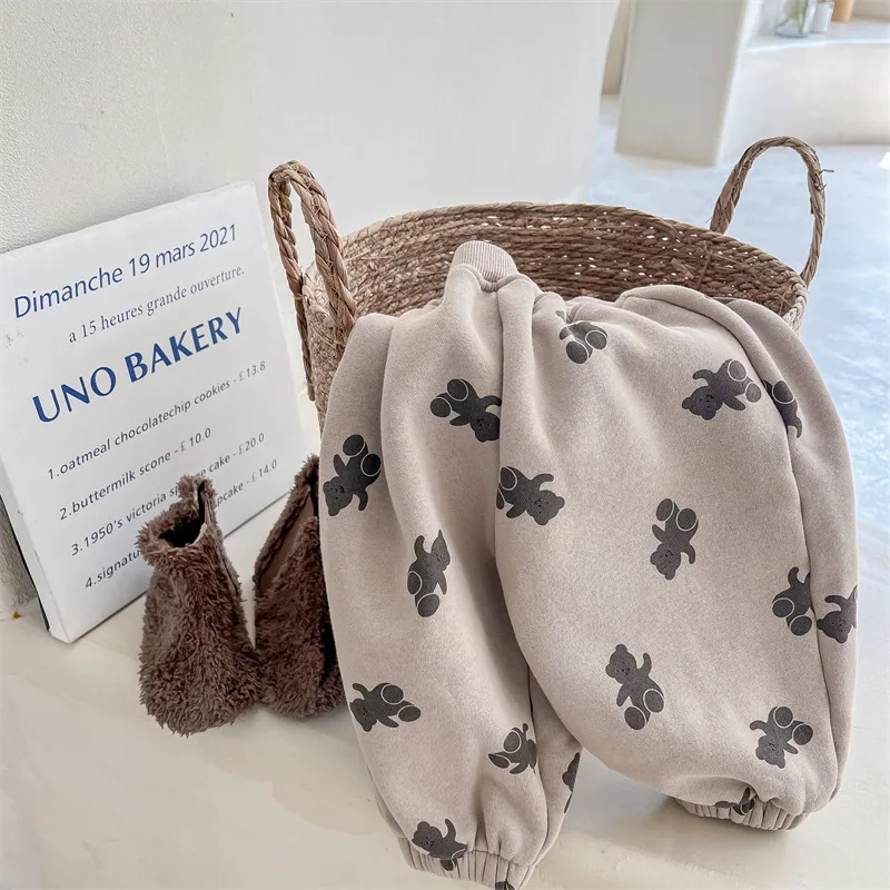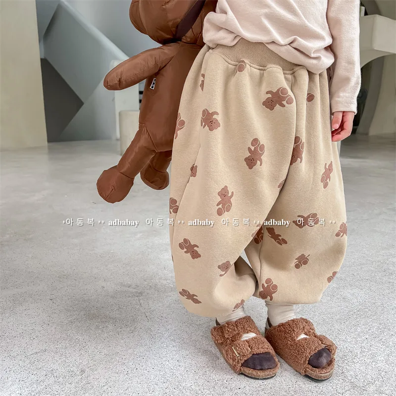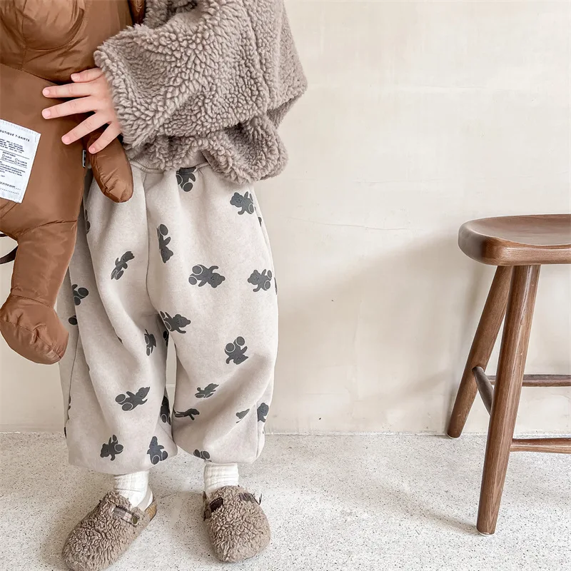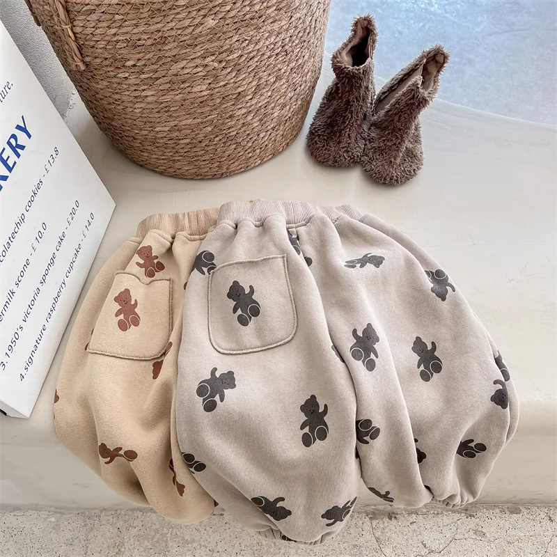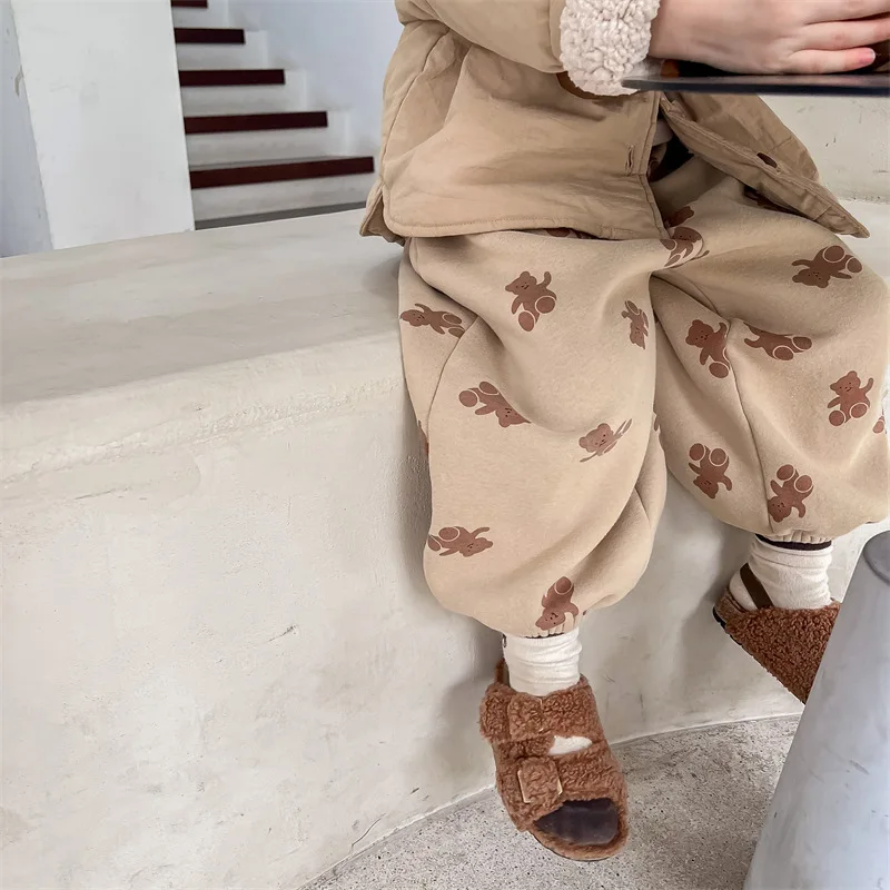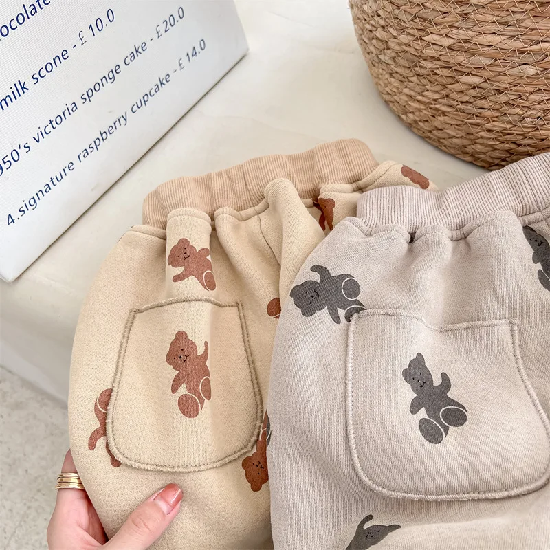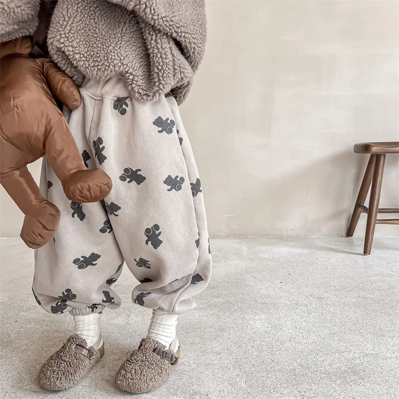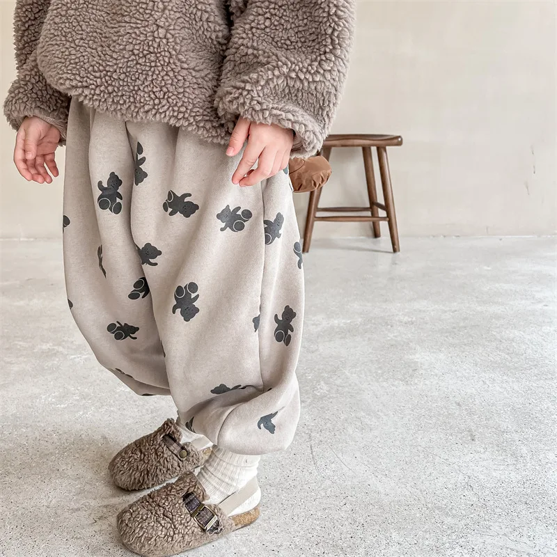 2025 nuovi pantaloni per bambini autunno inverno ragazzi ragazze pile ispessito pantaloni da jogging stile coreano cartone animato orso pantaloni sportivi casual A2657