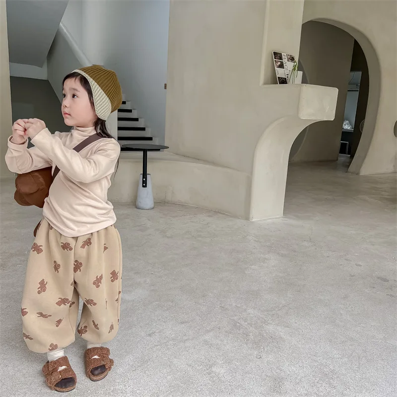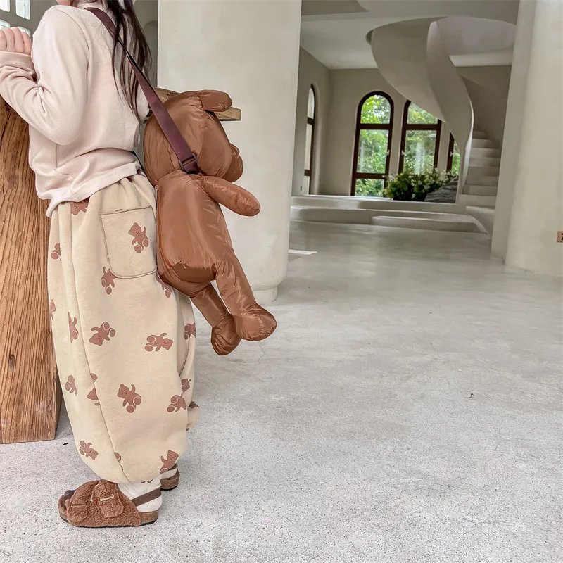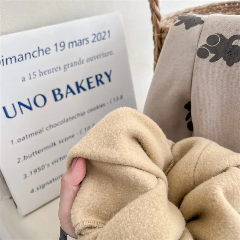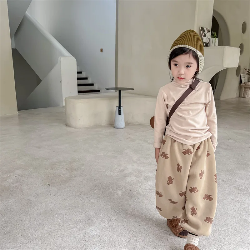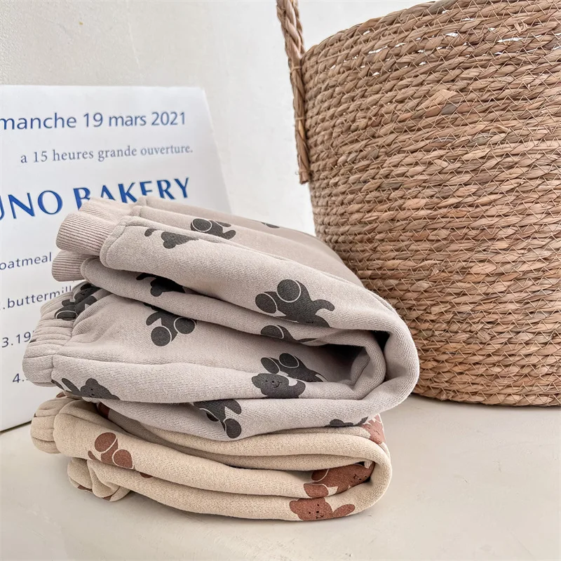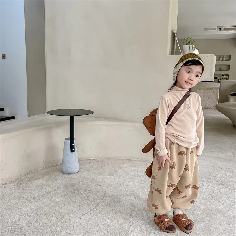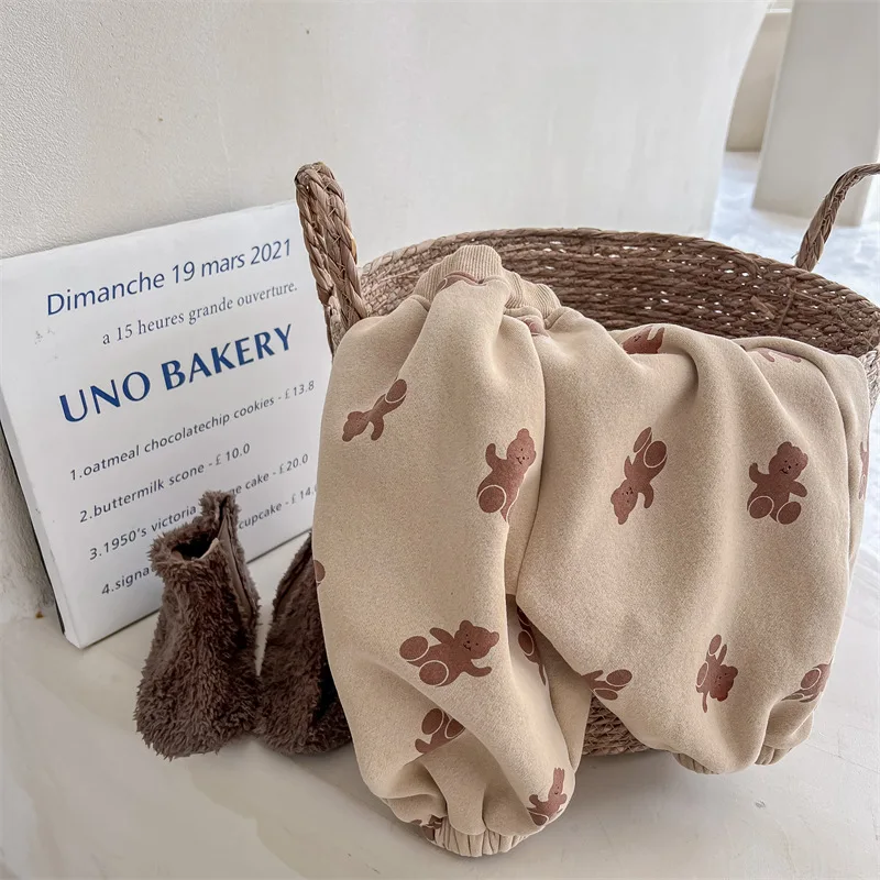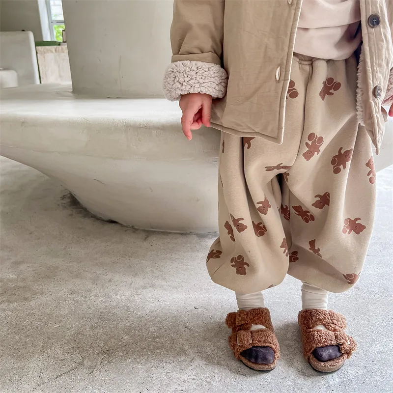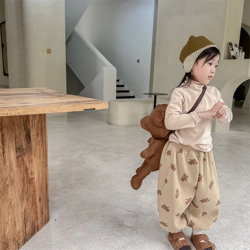 2025 nuovi pantaloni per bambini autunno inverno ragazzi ragazze pile ispessito pantaloni da jogging stile coreano cartone animato orso pantaloni sportivi casual A2657