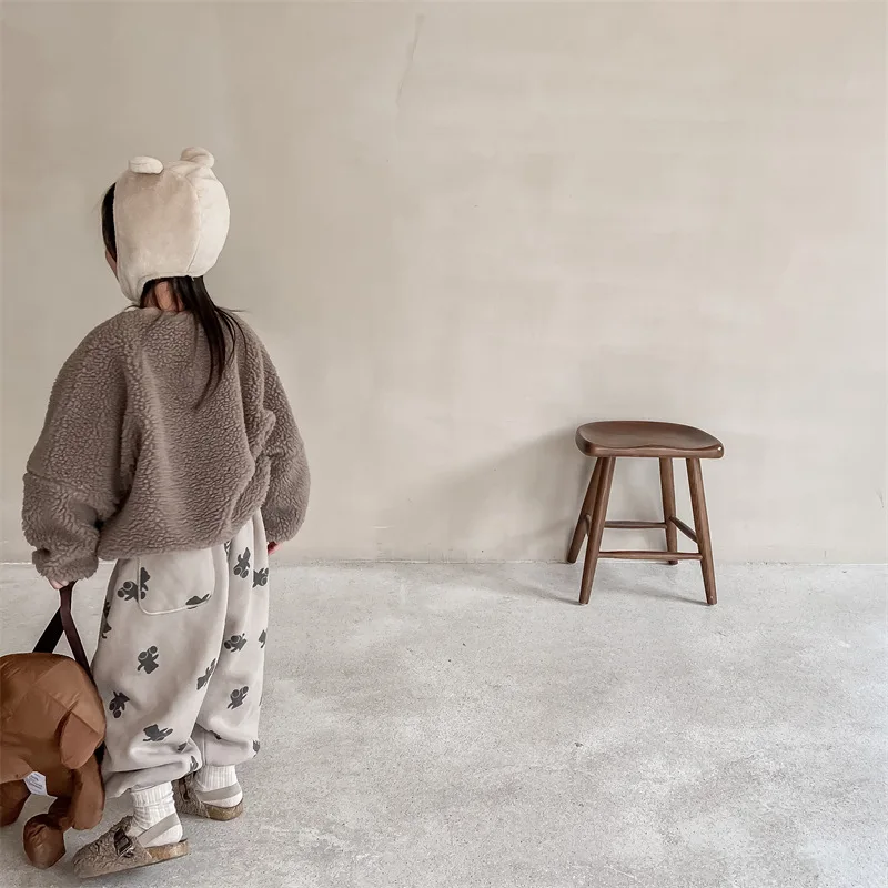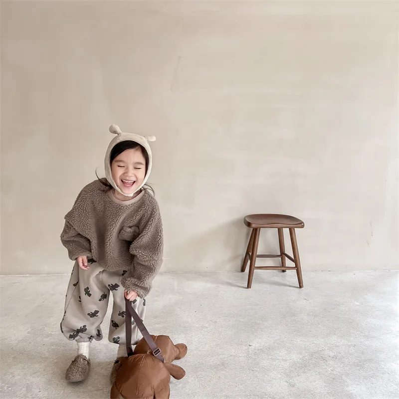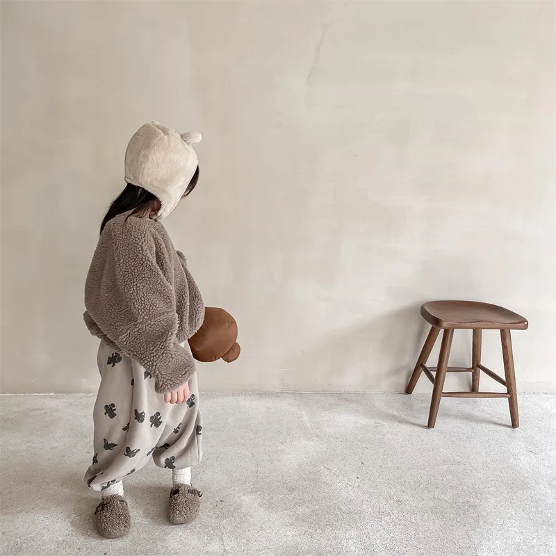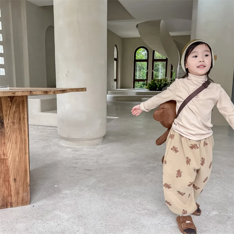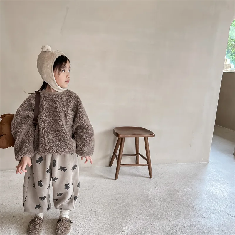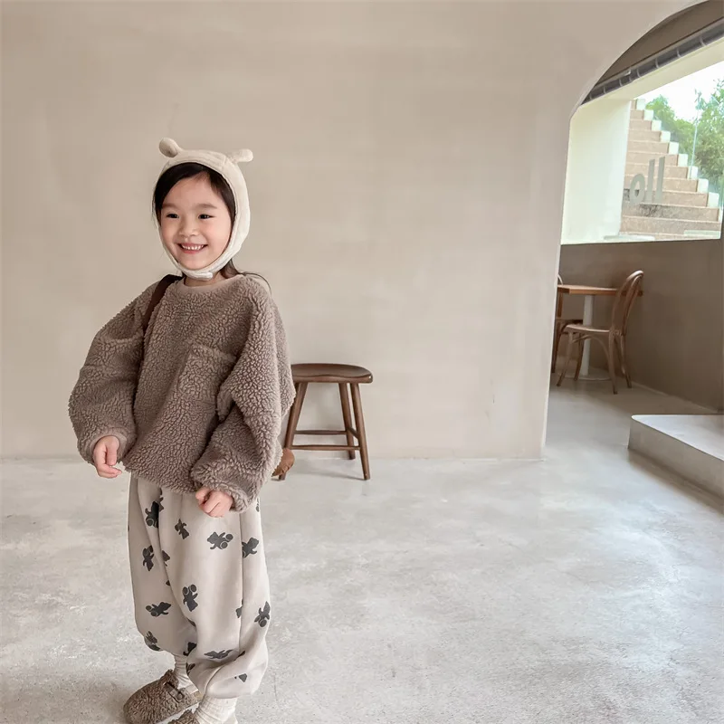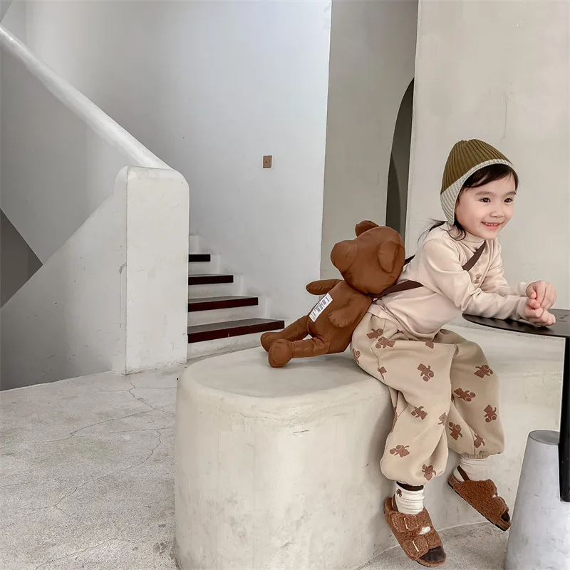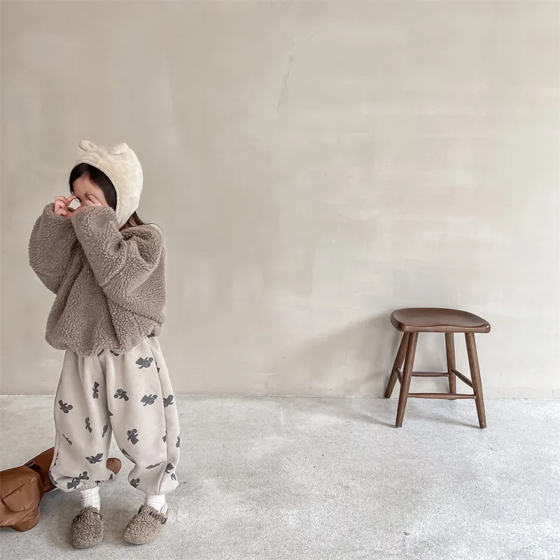 2025 nuovi pantaloni per bambini autunno inverno ragazzi ragazze pile ispessito pantaloni da jogging stile coreano cartone animato orso pantaloni sportivi casual A2657
