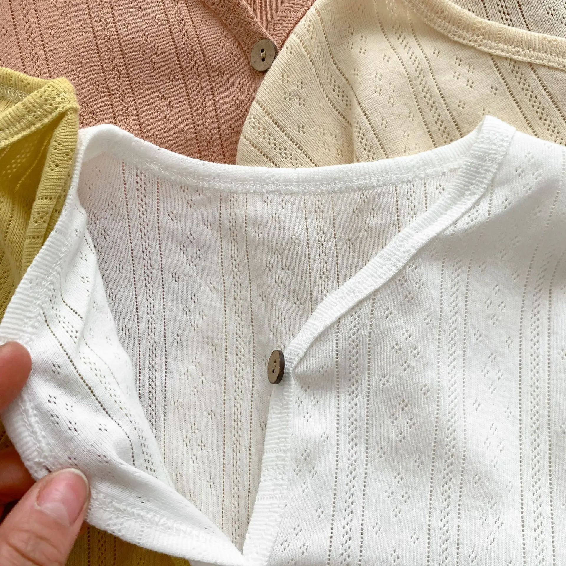 2.Design scavato: il cardigan presenta un giocoso design scavato, che aggiunge un tocco di fantasia all’outfit del tuo bambino.
