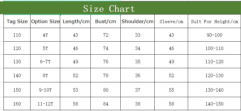 Si prega gentilmente di fare riferimento all’altezza effettiva dei vostri bambini e alla tabella delle taglie prima di acquistare/fare offerte.Grazie.
