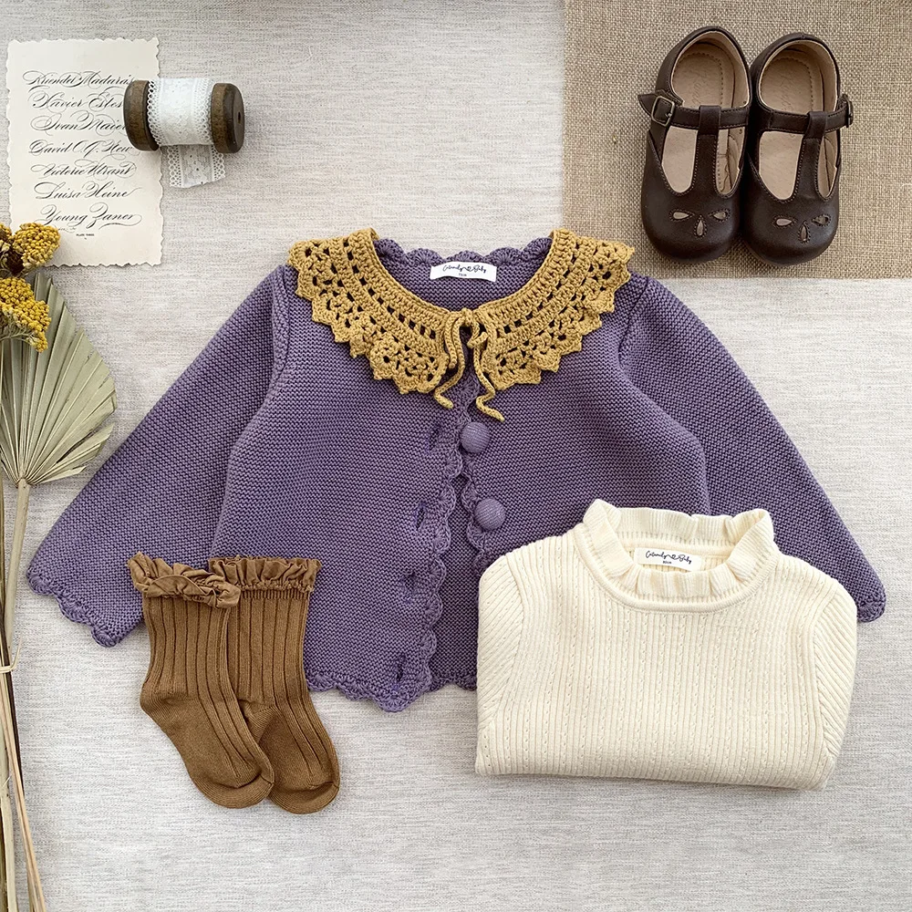 Maglione Cardigan all’uncinetto principessa per bambini in stile coreano