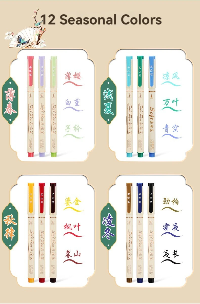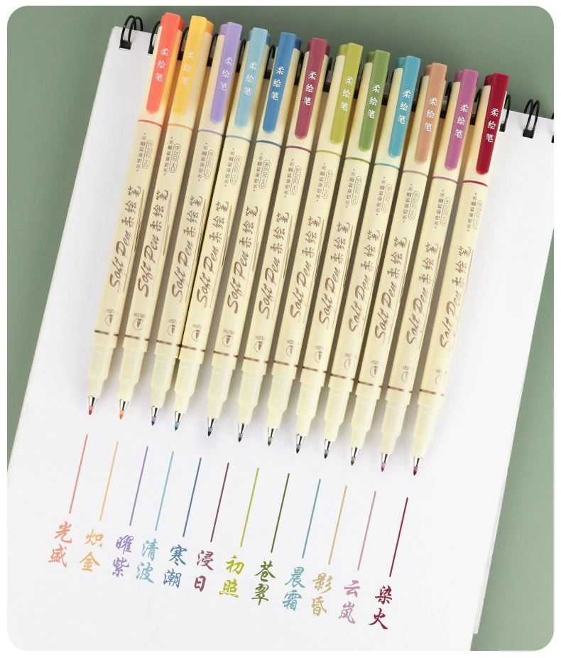 Set di pennarelli da disegno con scritte retrò a 24 colori, set di pennarelli multicolori con punta morbida, calligrafia, pittura, materiale scolastico carino estetico