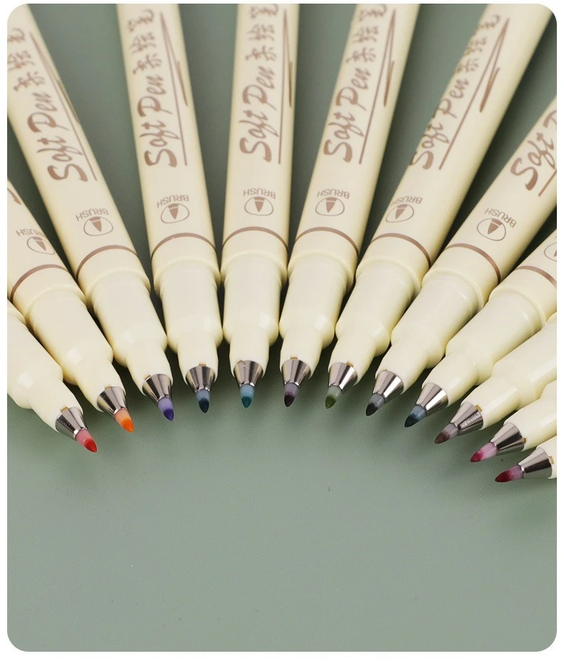 Arte del fumetto Penna di contorno Pigmento Liner Micron Pen Marker set Gancio Linea Penna ad ago per schizzo Pennello morbido Articoli di cancelleria