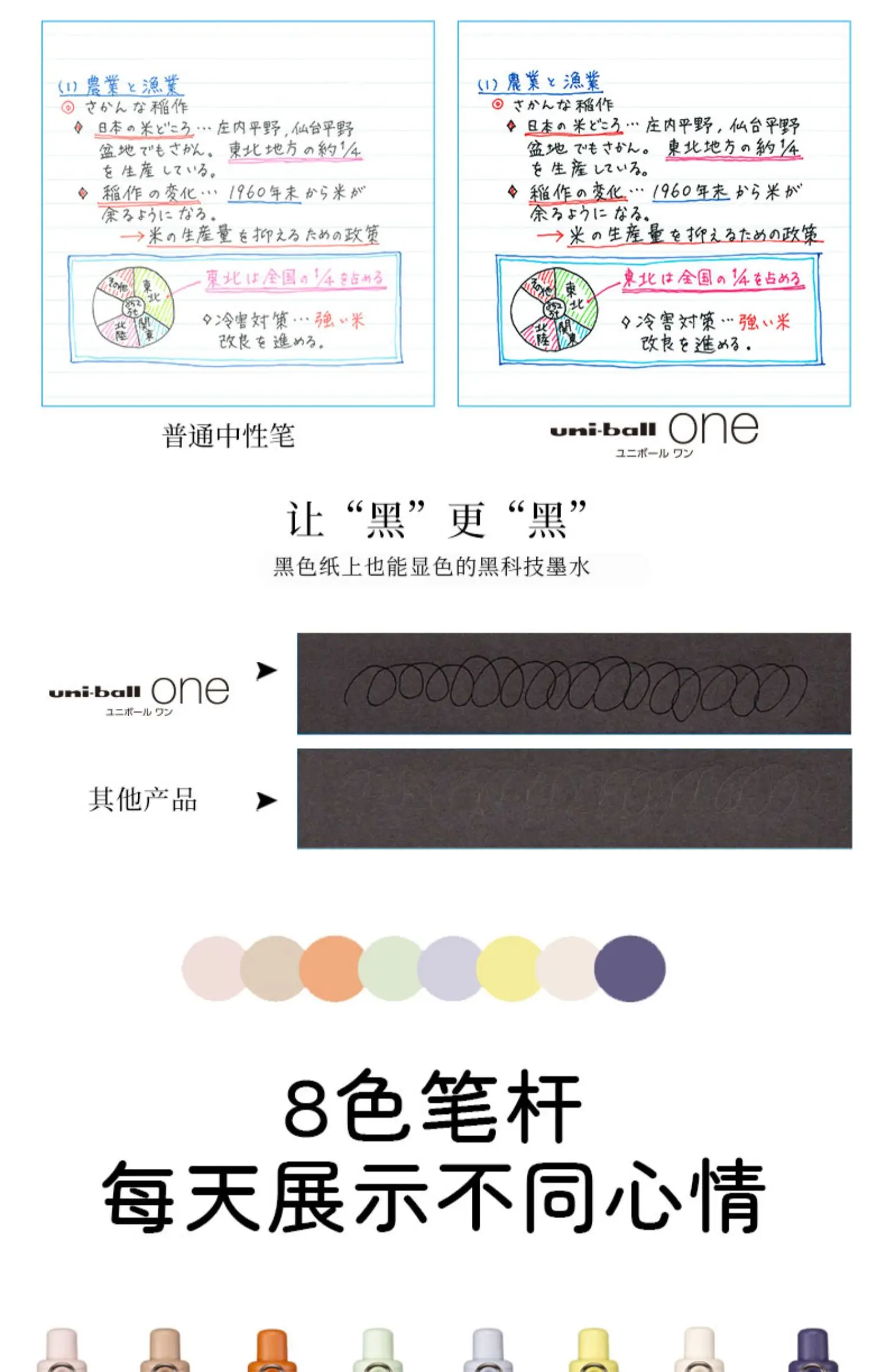 1.Uni-ball Signo Mini Pen, comoda da trasportare, mini, piccola e delicata 2.Design a basso centro di gravità, scrittura più stabile; le parti metalliche del pennino non solo hanno un aspetto alla moda, ma fungono anche da "struttura stabilizzante" per un’esperienza a basso centro di gravità, ottenendo una scrittura stabile e fluida a bassa gravità 3.Canna rotonda paffuta, clip paffuta e pulsante rotondo 4.Design a clip aperta, ingegnoso, bello e facile da usare; intaglio della coda, semplice e delicato, che presenta un bell’aspetto; punta in metallo, abbellimento accattivante, scrittura a bassa gravità 5.La tecnologia nera di Uni-ball per inchiostro spesso, il nero è più spesso e i colori sono più vividi 6.La scrittura è più chiara, la memoria è più profonda; capovolgi sempre i tuoi appunti ripetutamente durante lo studio e il testo chiaro rende la tua memoria più profonda 7. 8 colori, mostrando stati d’animo diversi ogni