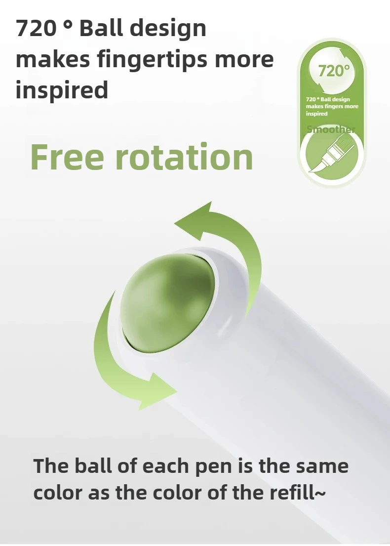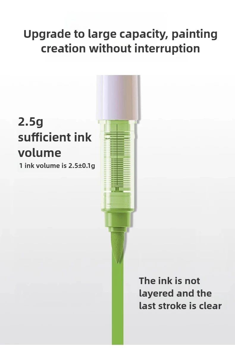 L’innovativo sistema di alimentazione liquida garantisce un’esperienza liscia come la seta, mentre i pennini ultra morbidi offrono un controllo preciso, consentendo transizioni senza interruzioni dai tratti delicati ai turbinii di colore audaci.Il design della sfera rotante sul cappuccio aggiunge un tocco giocoso, ispirando la creatività ad ogni rotazione.