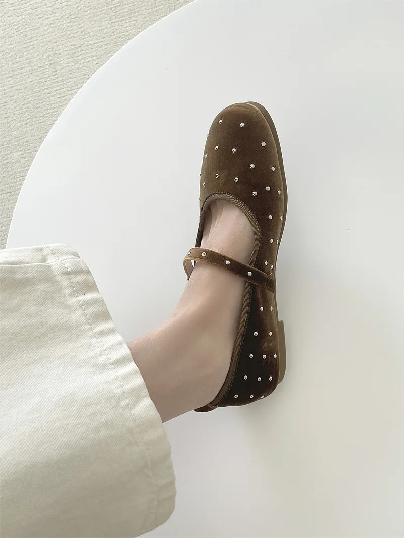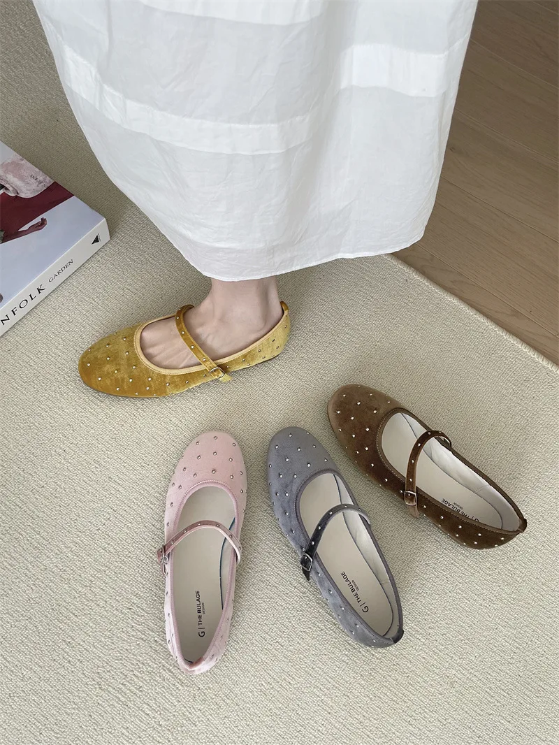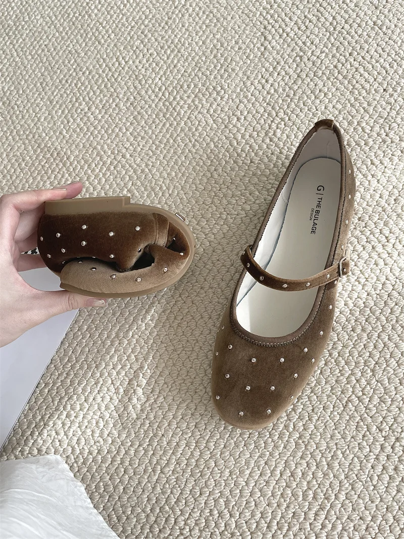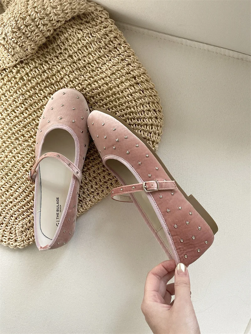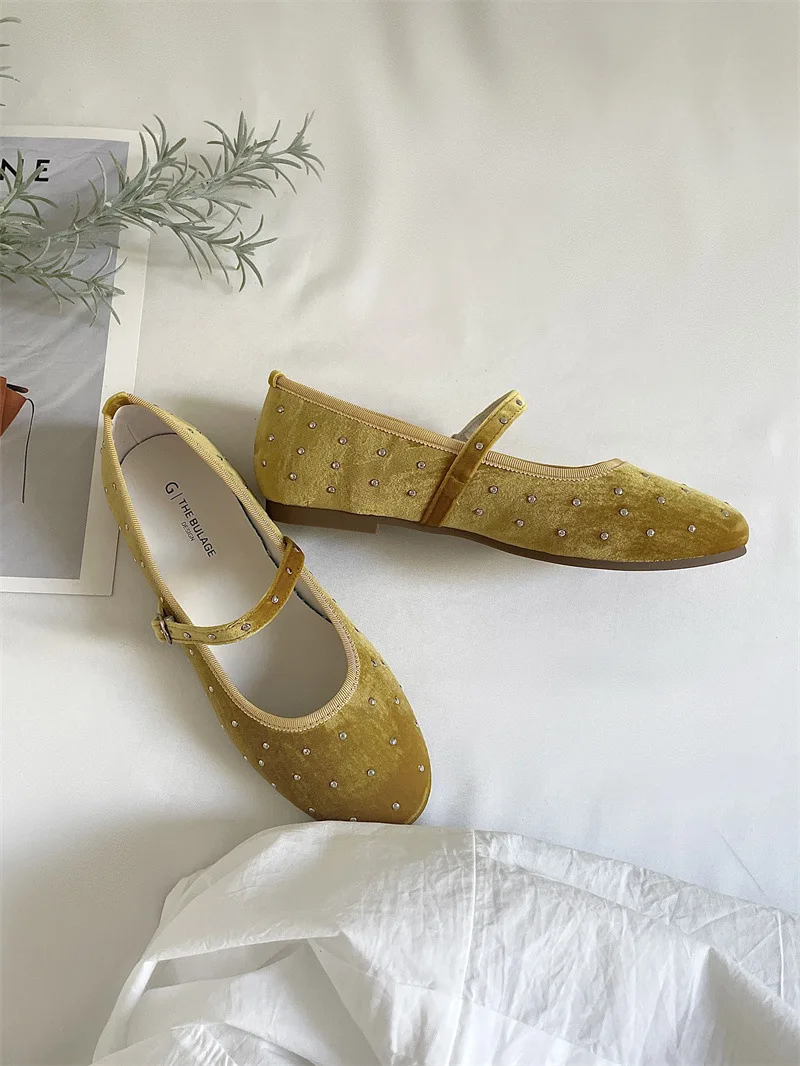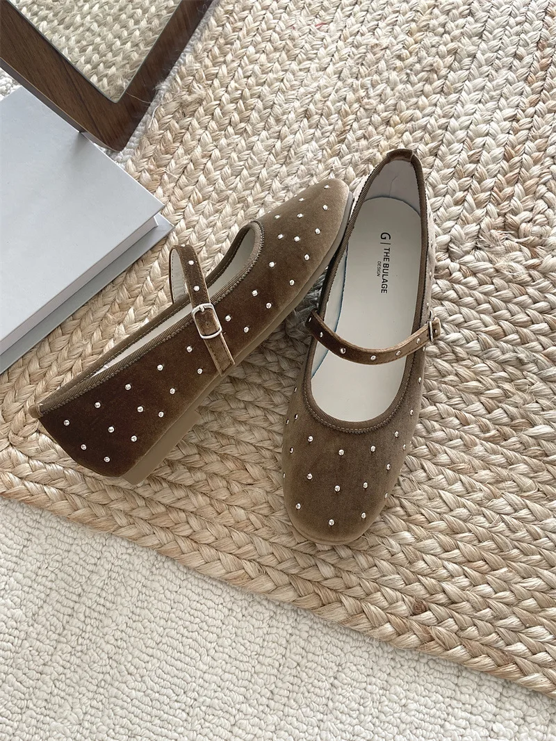 Rivetto Decor Velluto Mary Janes Scarpe da donna Punta tonda Eleganti ballerine Scarpe da donna Cinturino con fibbia Primavera Autunno Mocassini Nuovo