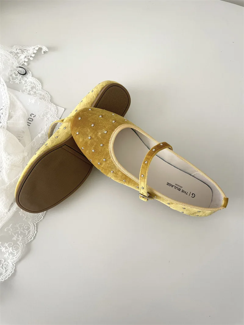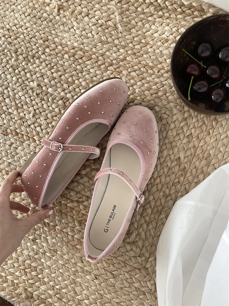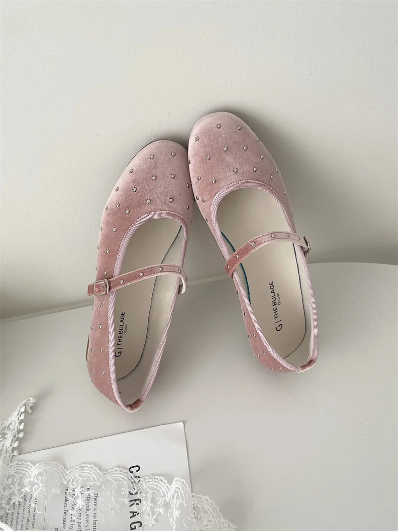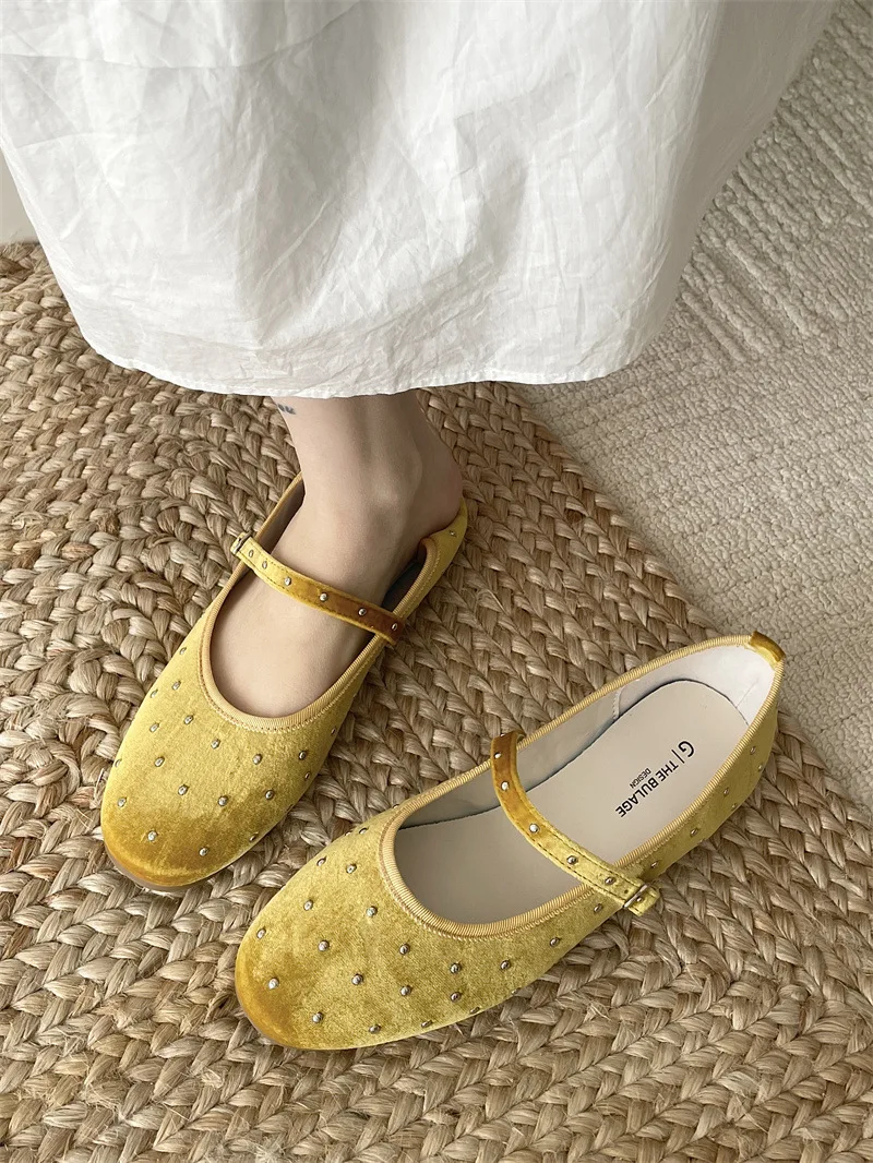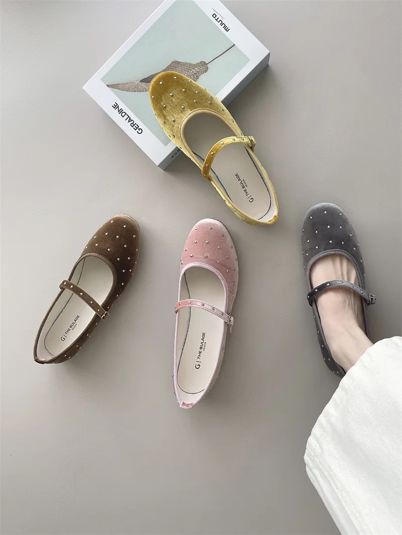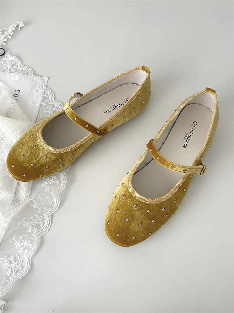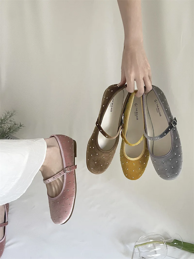 Rivetto Decor Velluto Mary Janes Scarpe da donna Punta tonda Eleganti ballerine Scarpe da donna Cinturino con fibbia Primavera Autunno Mocassini Nuovo