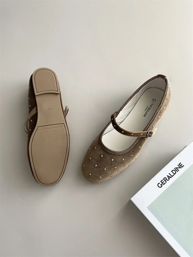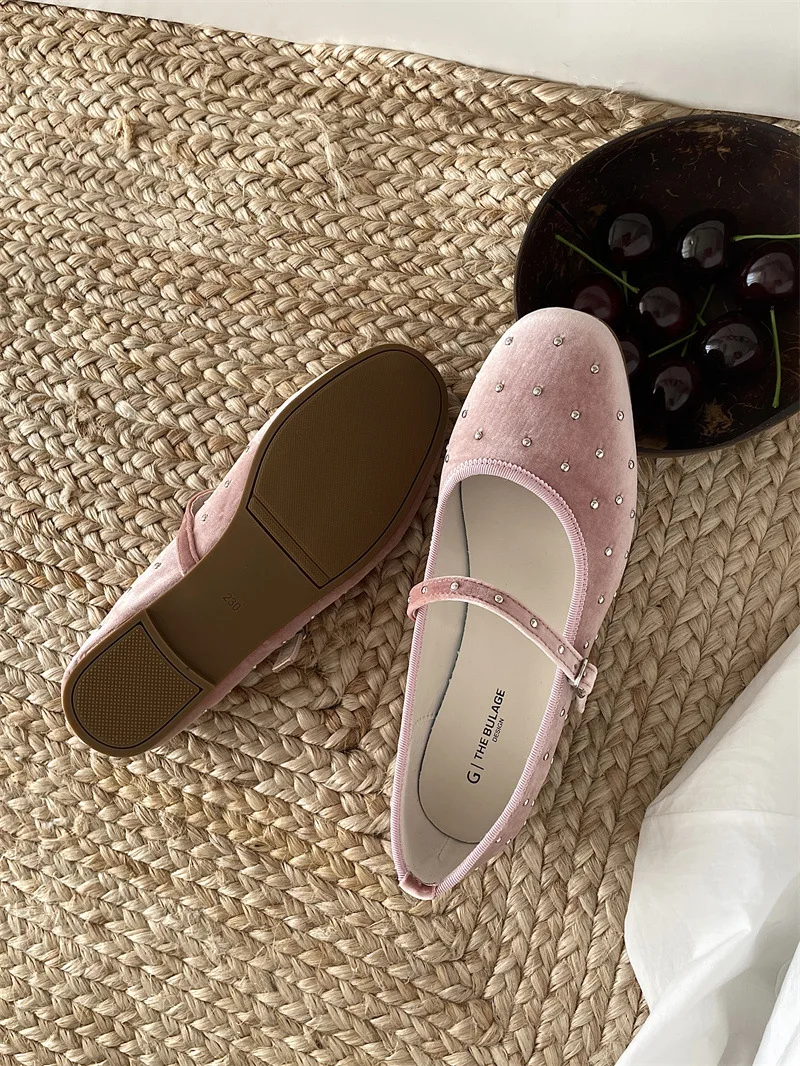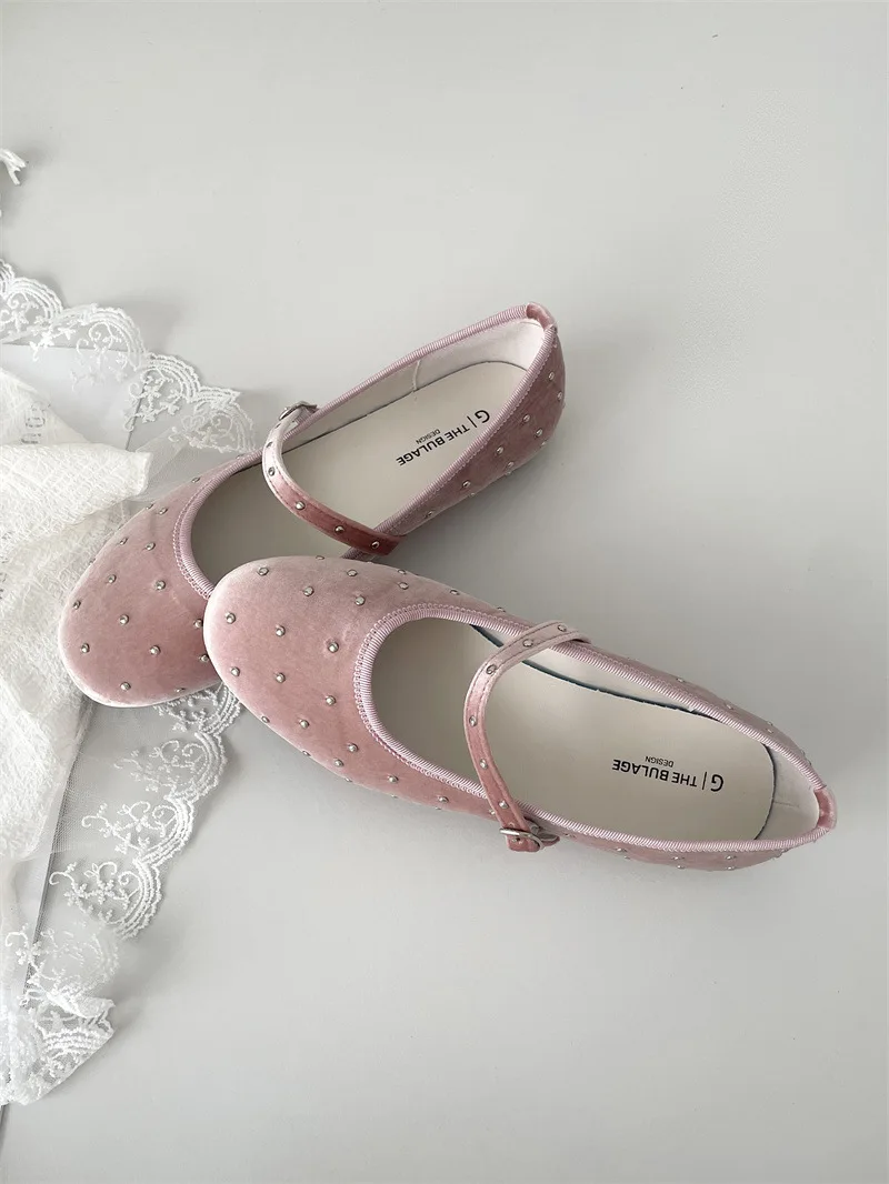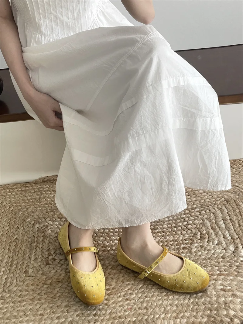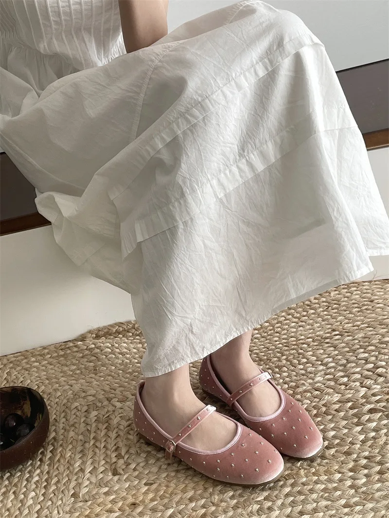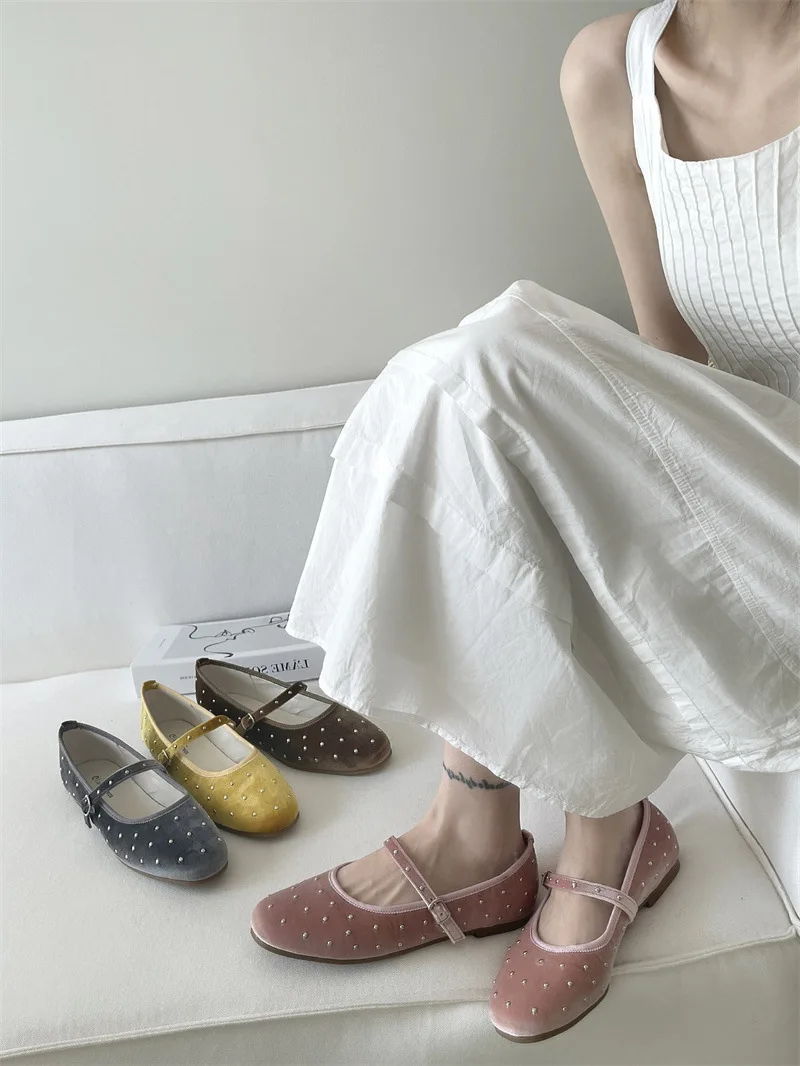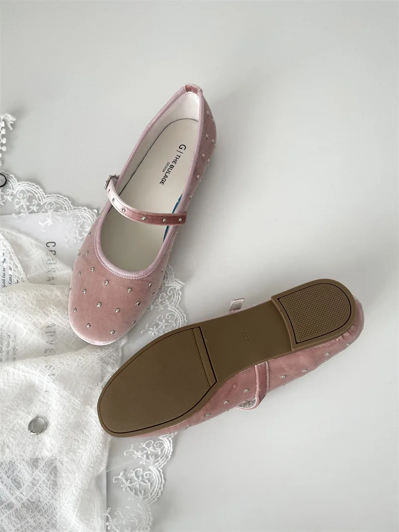 Rivetto Decor Velluto Mary Janes Scarpe da donna Punta tonda Eleganti ballerine Scarpe da donna Cinturino con fibbia Primavera Autunno Mocassini Nuovo