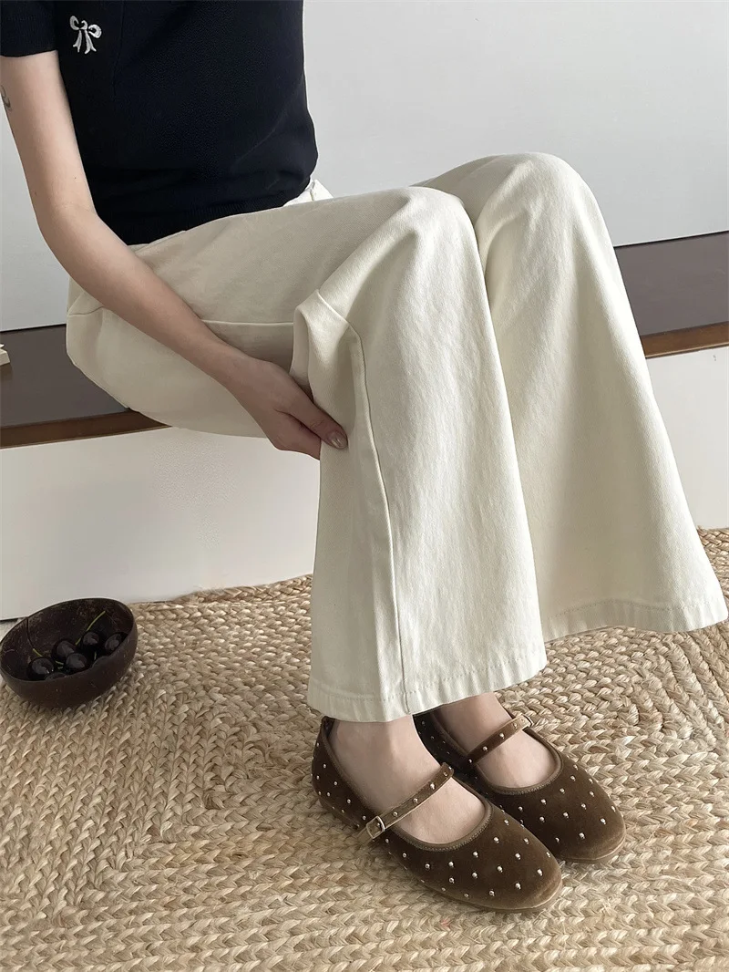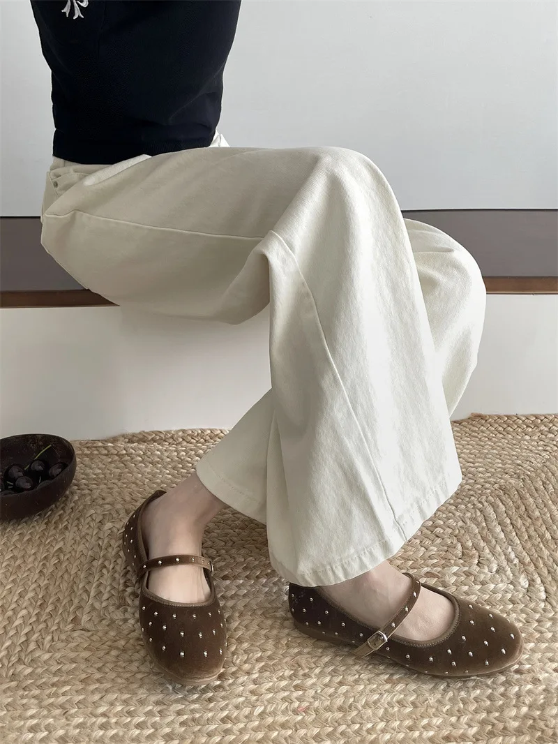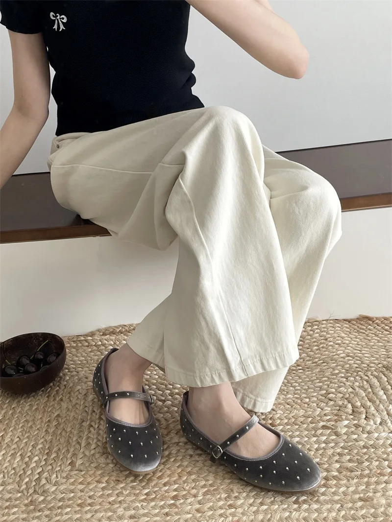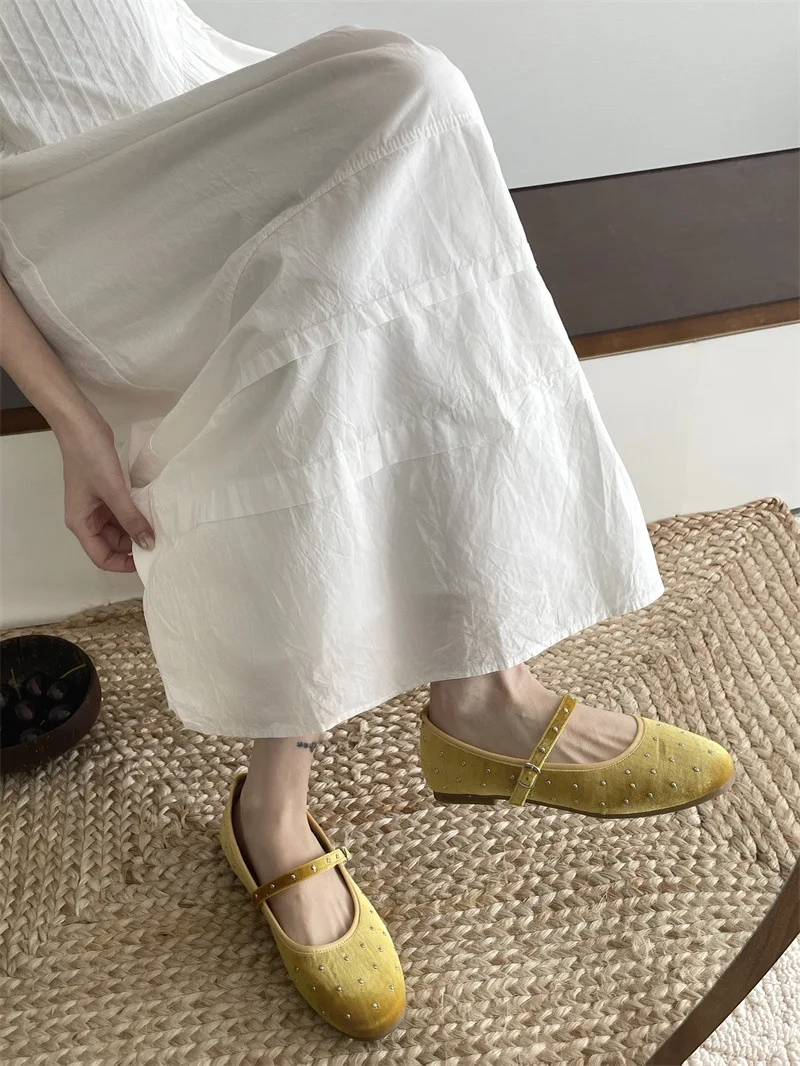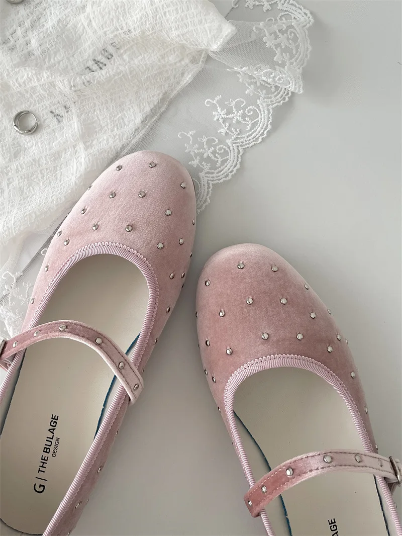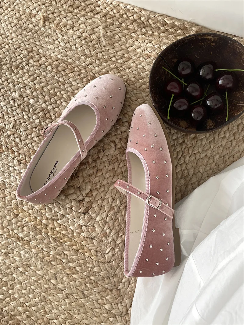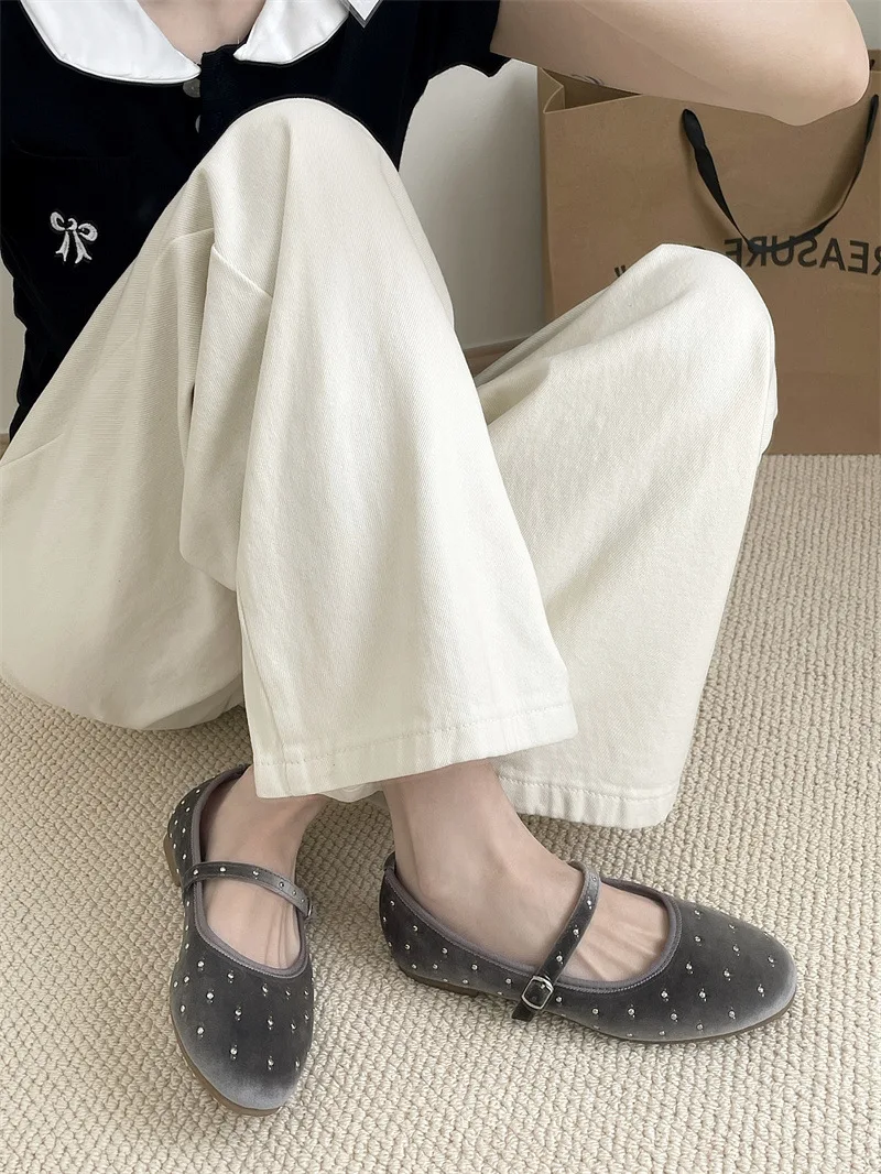 Rivetto Decor Velluto Mary Janes Scarpe da donna Punta tonda Eleganti ballerine Scarpe da donna Cinturino con fibbia Primavera Autunno Mocassini Nuovo