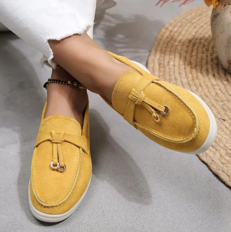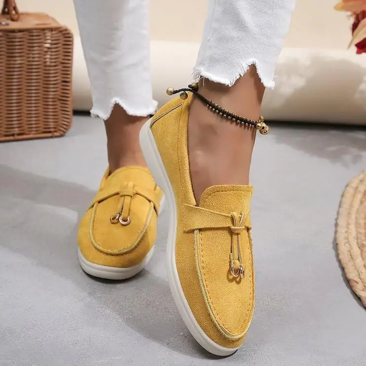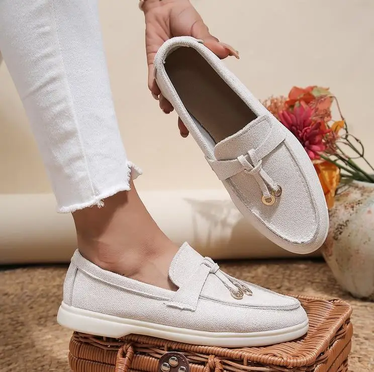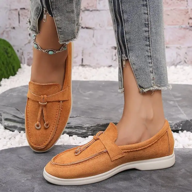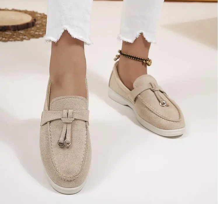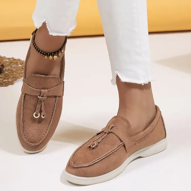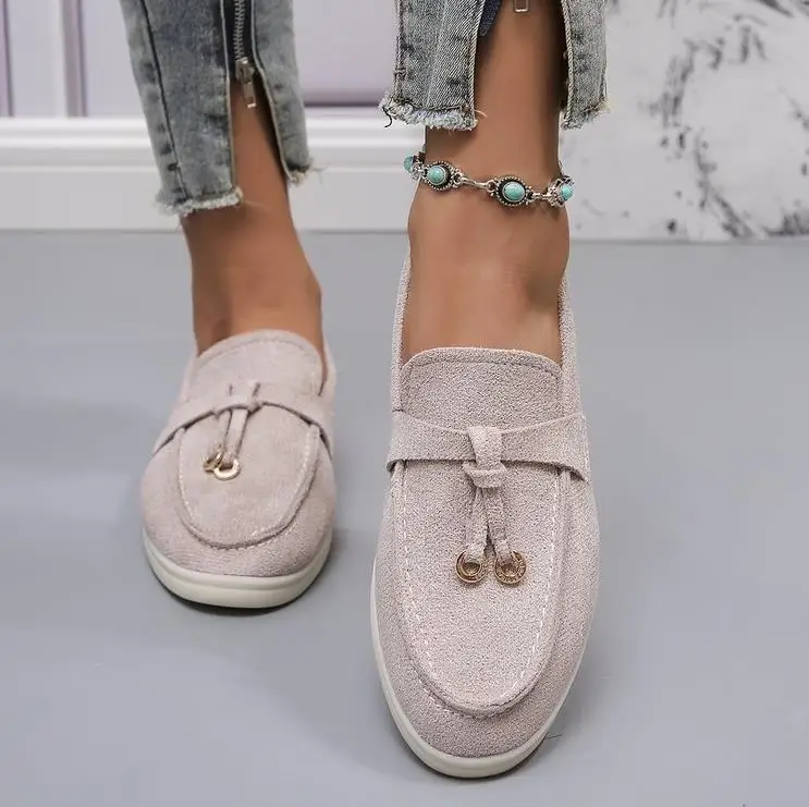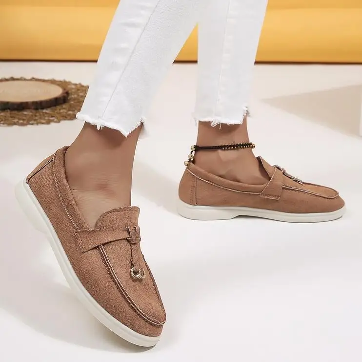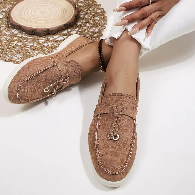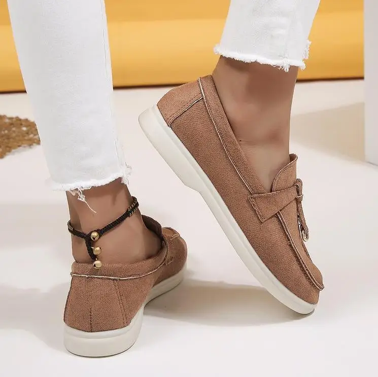 Scarpe casual piatte alla moda da donna Mocassini eleganti in pelle scamosciata sintetica Design Scarpe slip-on traspiranti Scarpe da donna casual da lavoro autunnali