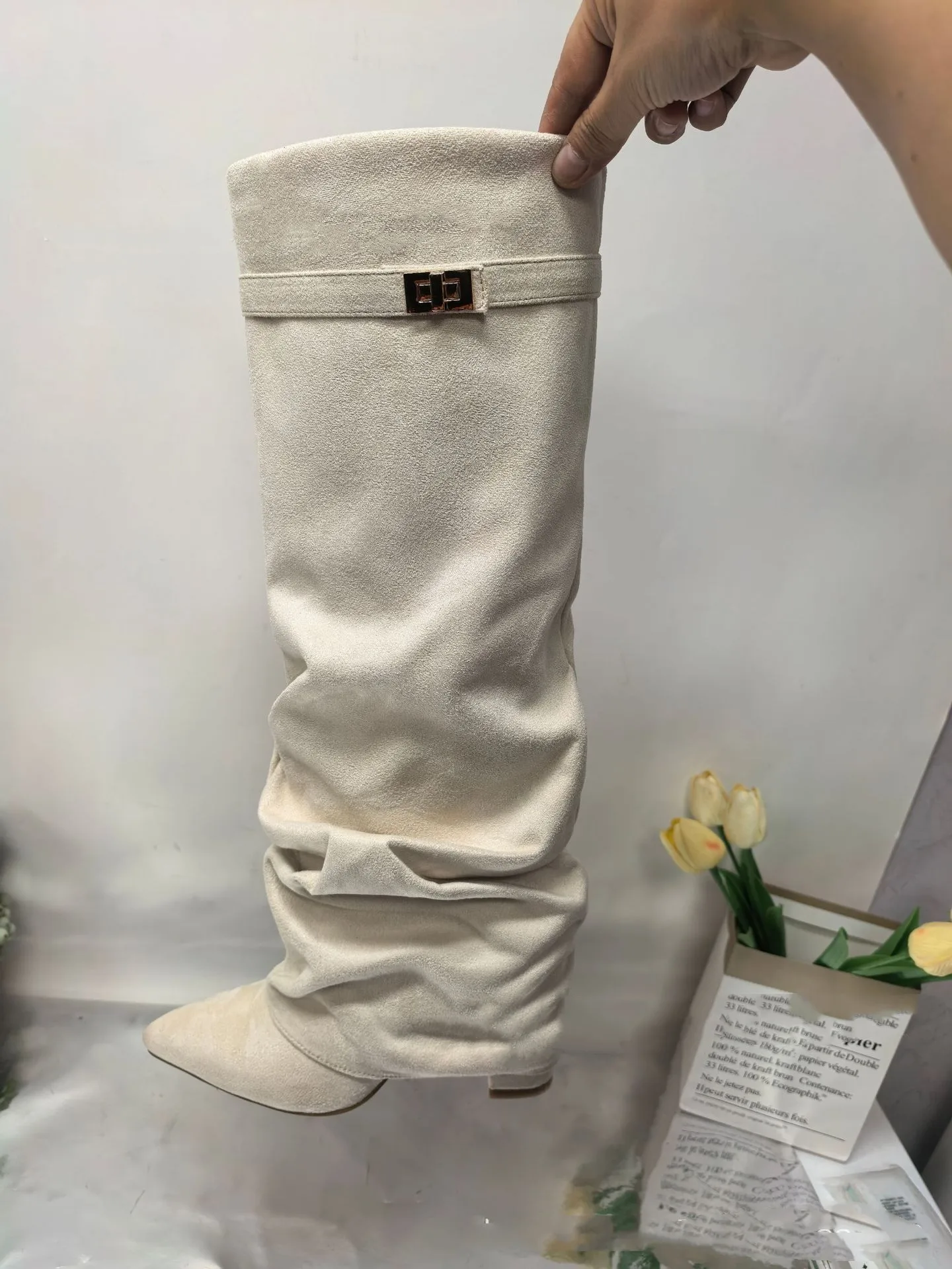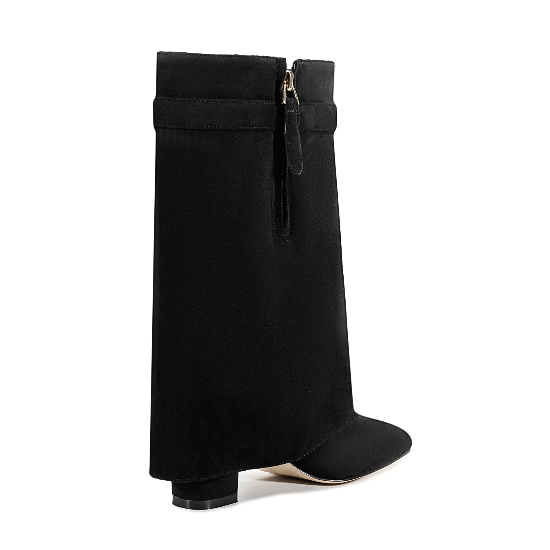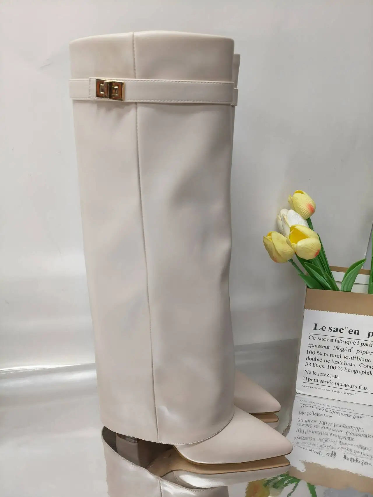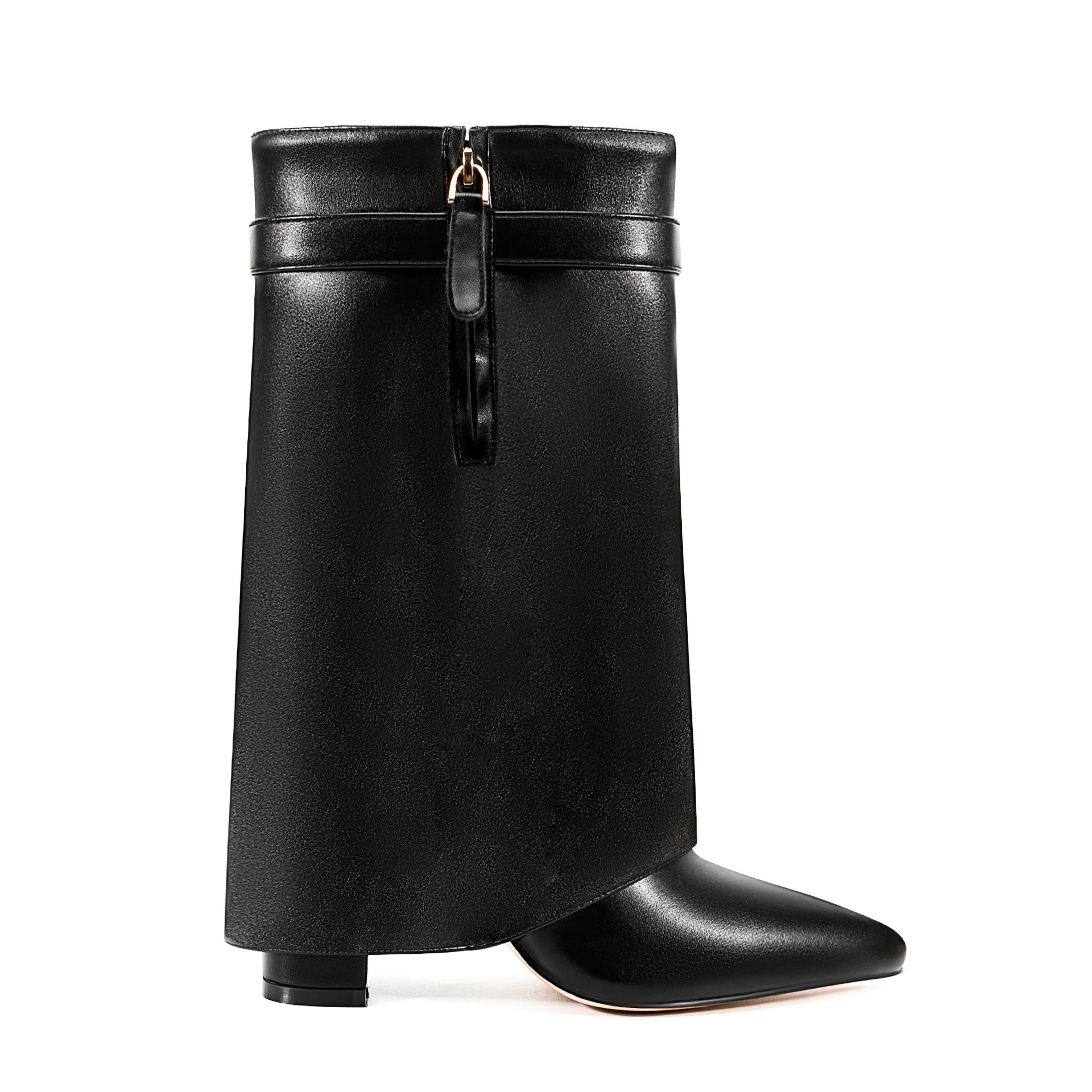 Autunno e inverno Nuovi stivali da donna alti al ginocchio con fibbia in metallo a punta, stivali spessi con pantaloni a tacco alto, stivali a gamba media alla moda