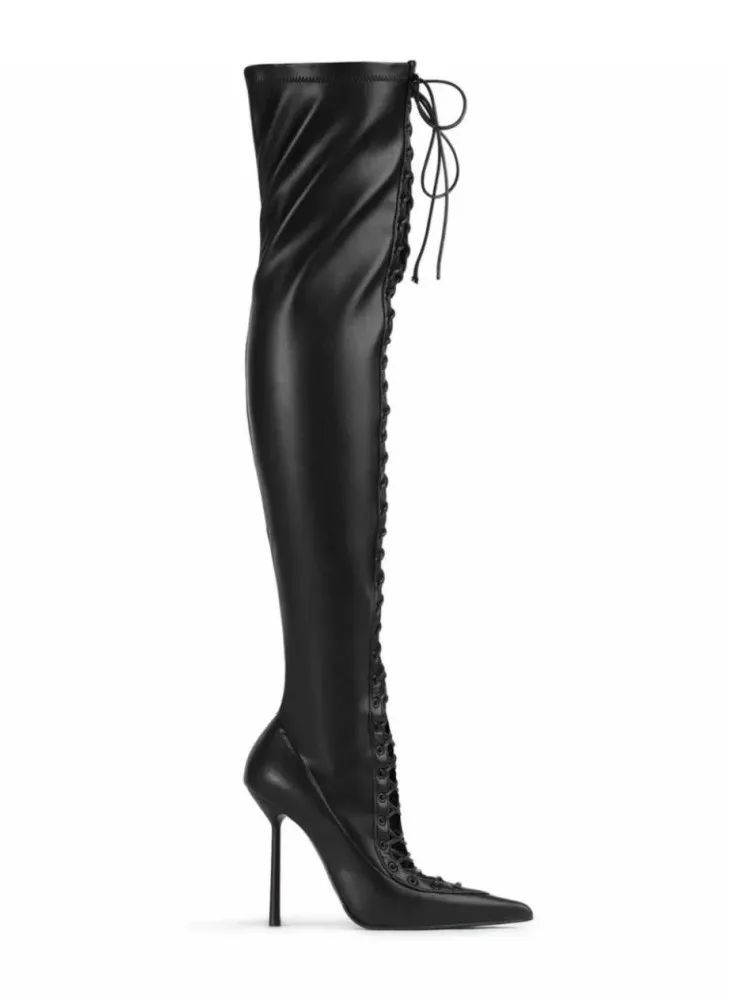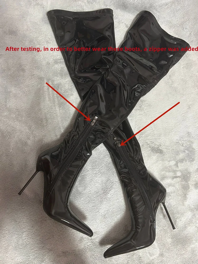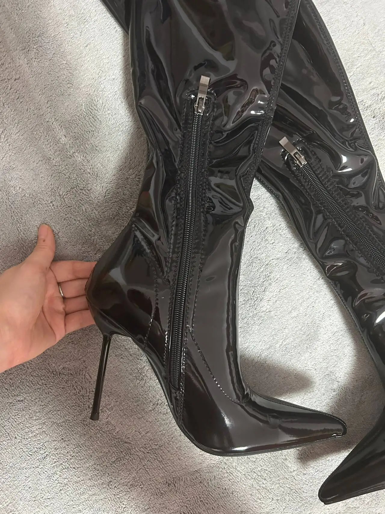 Autunno e inverno nuovi tacchi alti slim fit da donna, stivali alti al ginocchio, stivali a gamba sottile elastici a punta da donna, stivali lunghi